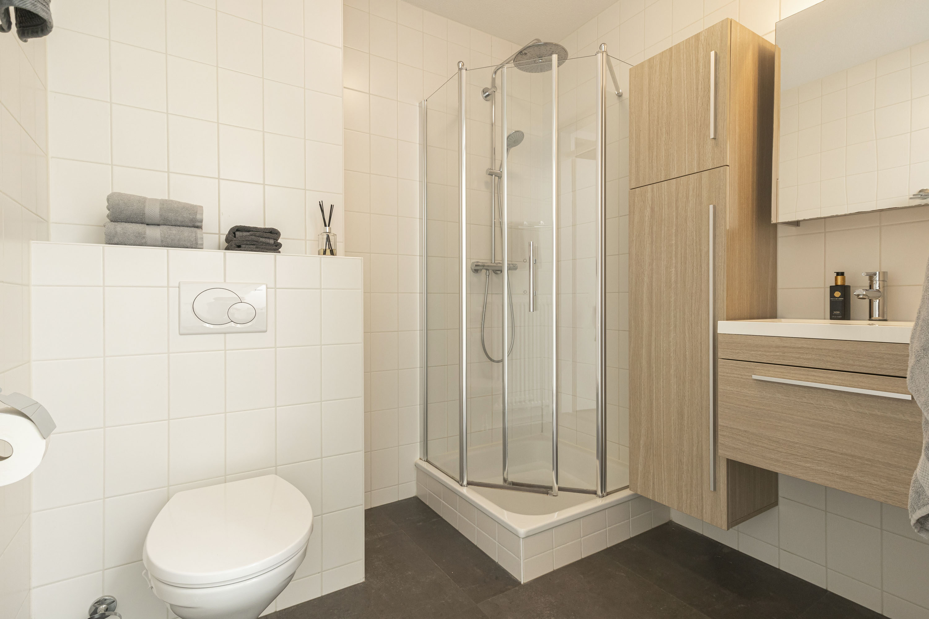 Op de verdieping vind je twee slaapkamers van goed formaat. Perfect voor hoofdslaapkamer, tweede slaapkamer, werkplek of hobbyruimte. De badkamer is modern en verzorgd, met een douchecabine, wastafelmeubel en een tweede toilet. Alles praktisch én stijlvol uitgevoerd.