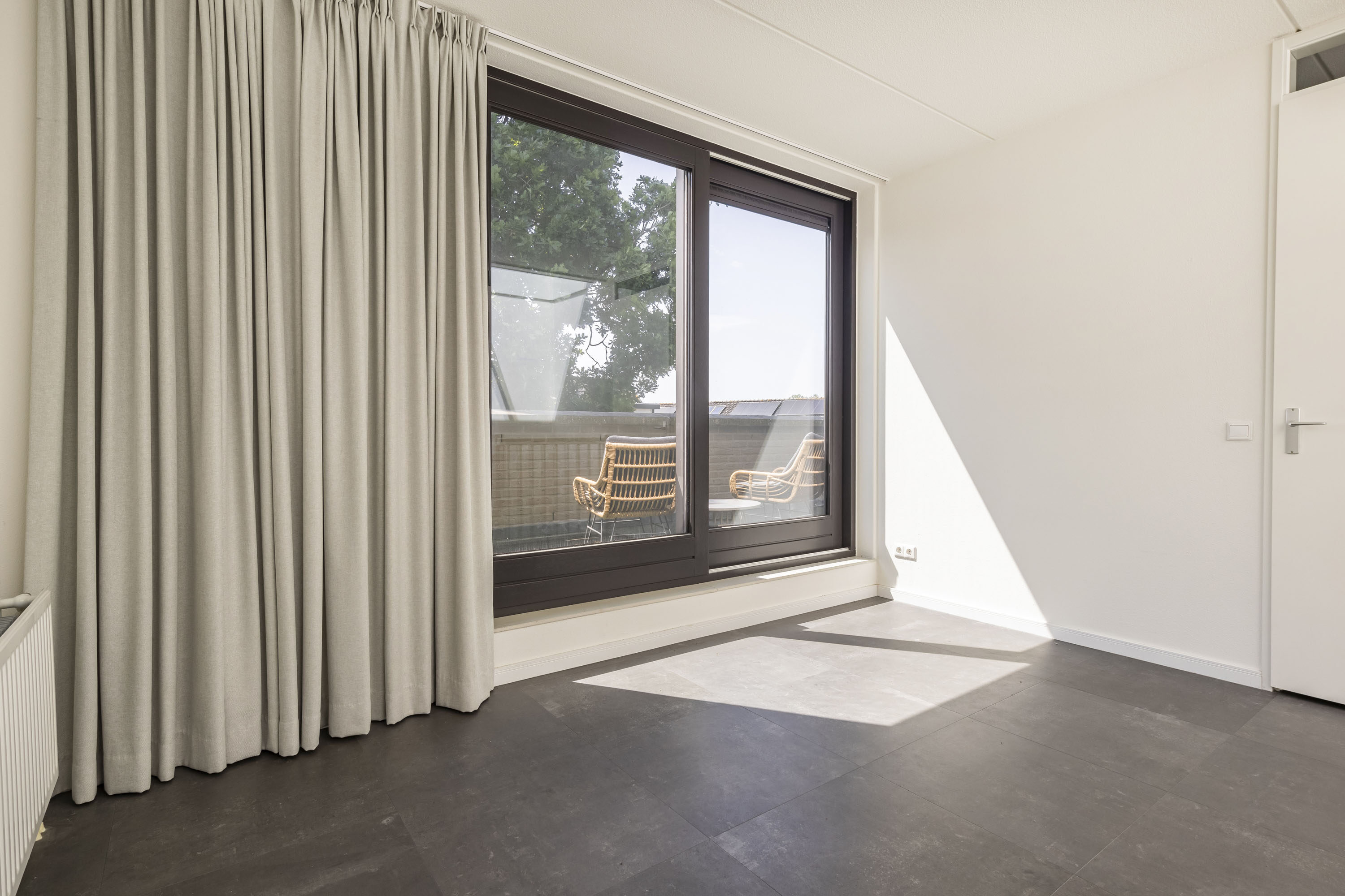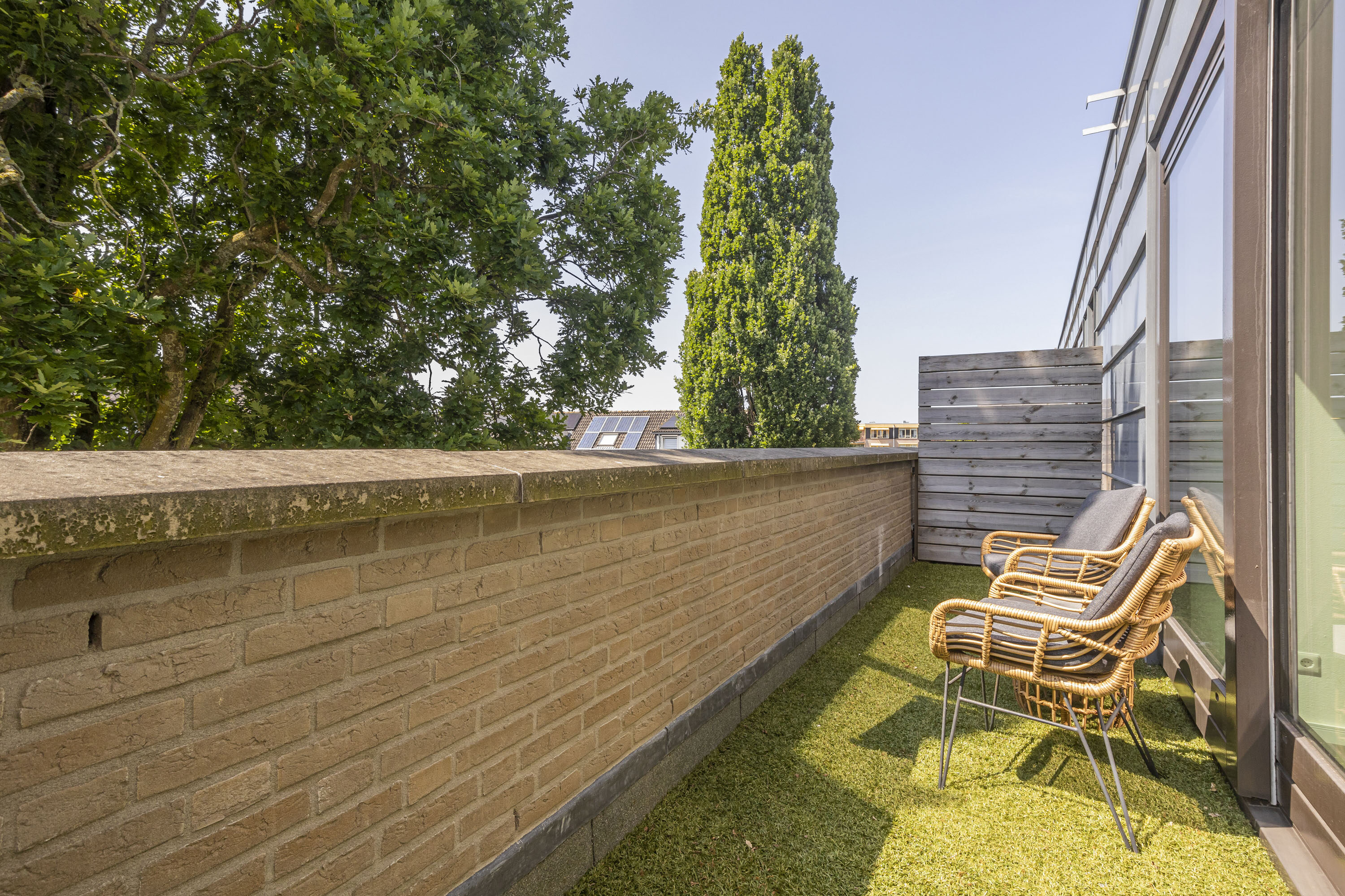 Grenzend aan deze fijne ruimte is het ruime dakterras over de volle breedte van de woning te bereiken. Bereikbaar middels een praktische schuifpui.