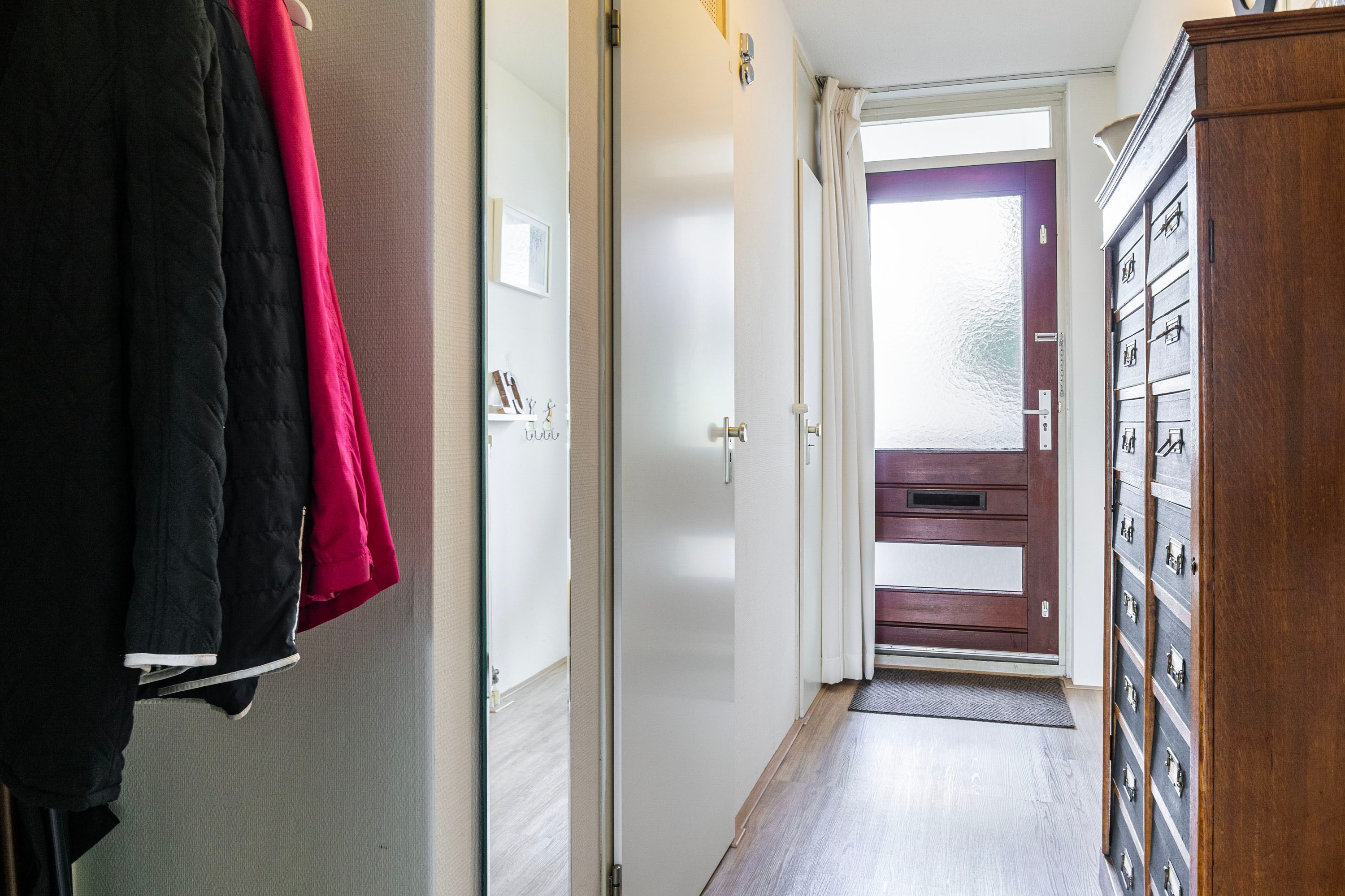 Bij binnenkomst kom je in de entree, waar de meterkast en CV-ketel netjes achter een deur zijn weggewerkt.