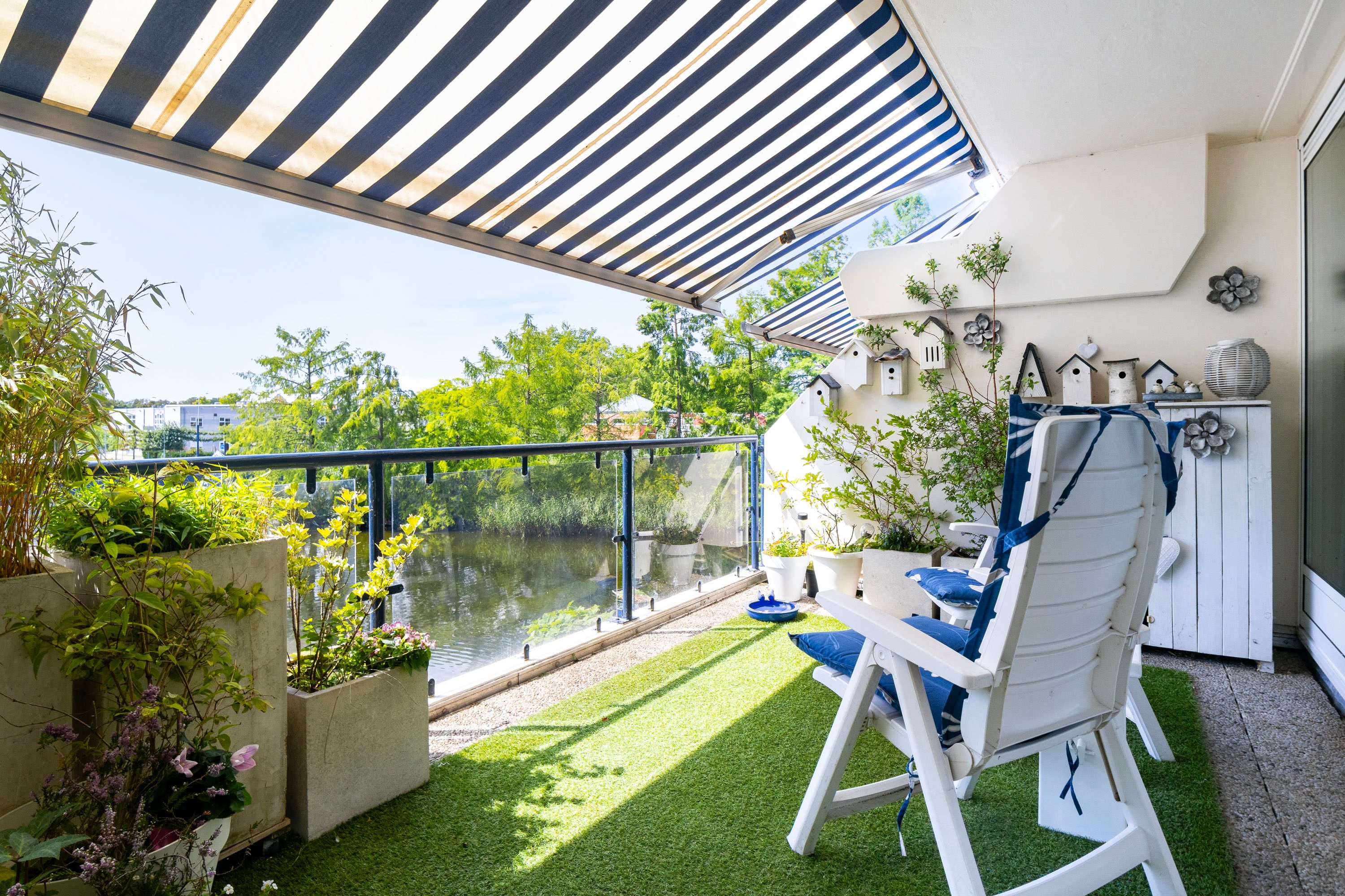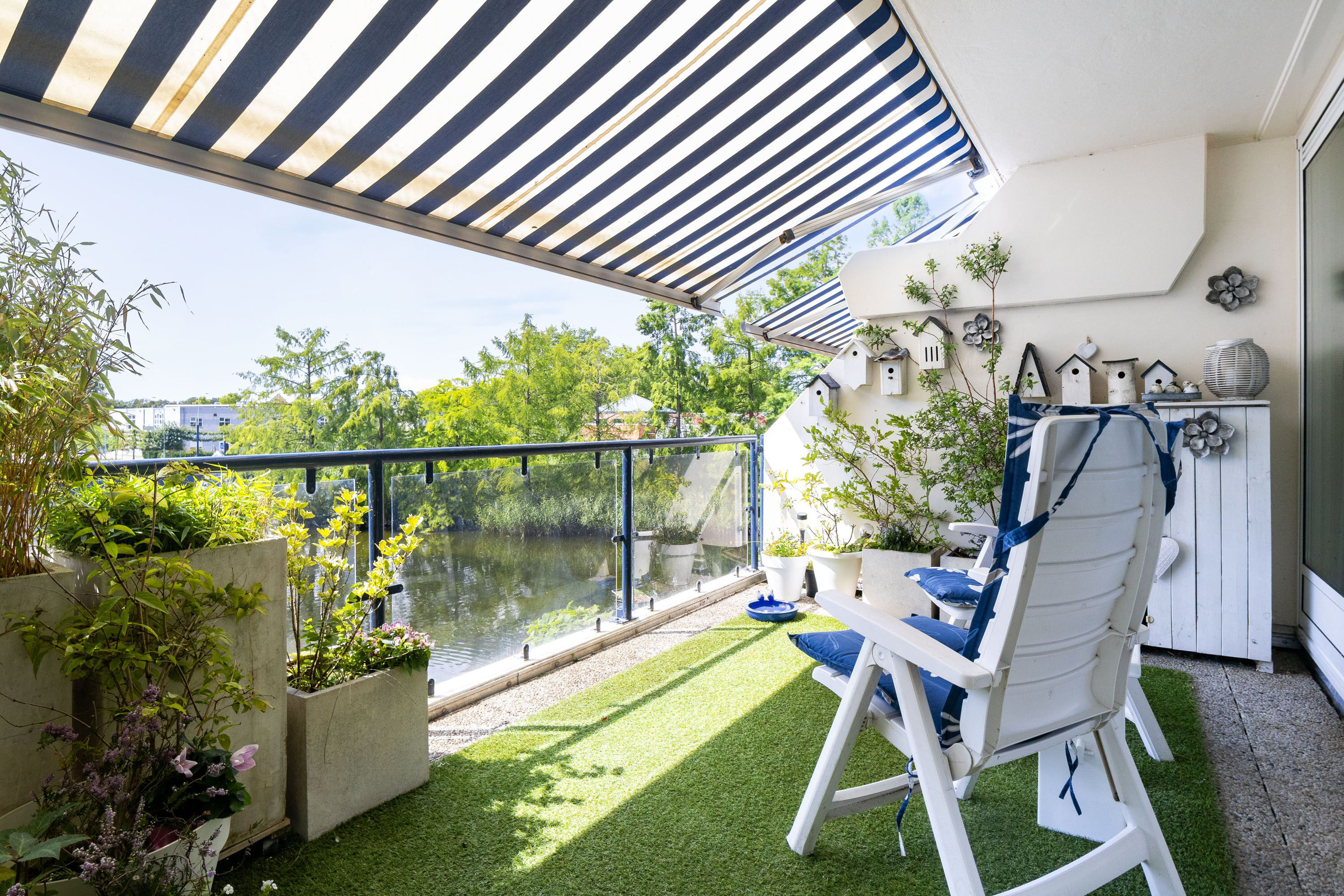 Het ruime balkon van maar liefst 22 m² is een absoluut hoogtepunt van dit appartement. Het balkon is gelegen op het zuiden, wat betekent dat je de hele dag kunt genieten van zonlicht. Wil je liever even in de schaduw zitten? Dan kun je eenvoudig het elektrisch bedienbaar zonnescherm gebruiken. Het balkon biedt genoeg ruimte voor meerdere zithoekjes en heeft een prachtig vrij uitzicht op het water.