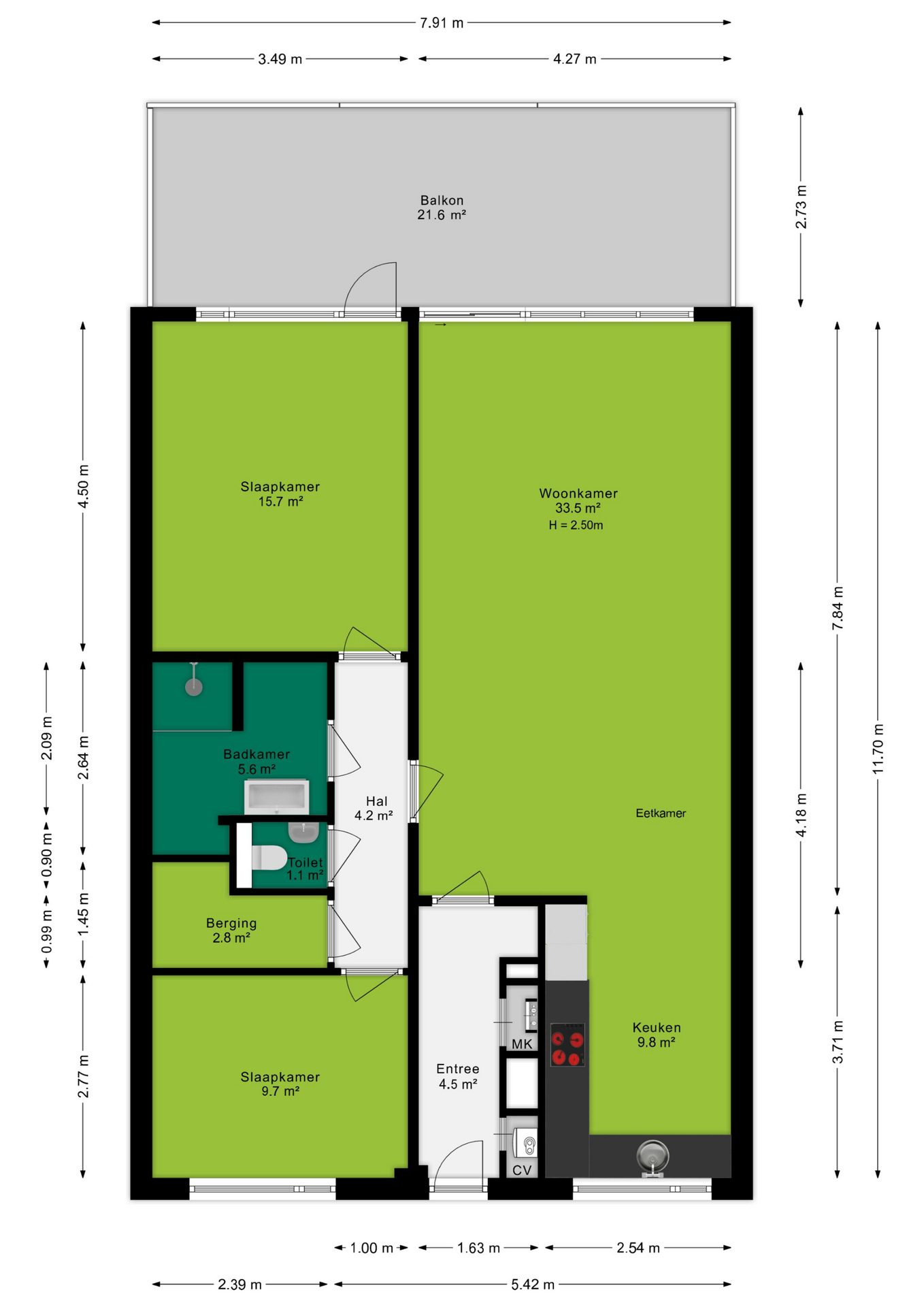 Het appartement beschikt over twee royale slaapkamers van respectievelijk 16 m² en 10 m². De grootste slaapkamer biedt direct toegang tot het balkon, een ideale plek om te ontspannen en te genieten van de frisse buitenlucht en het mooie vrije uitzicht. Daarnaast is er een praktische inpandige berging aanwezig, perfect geschikt voor het netjes opbergen van al je spullen.