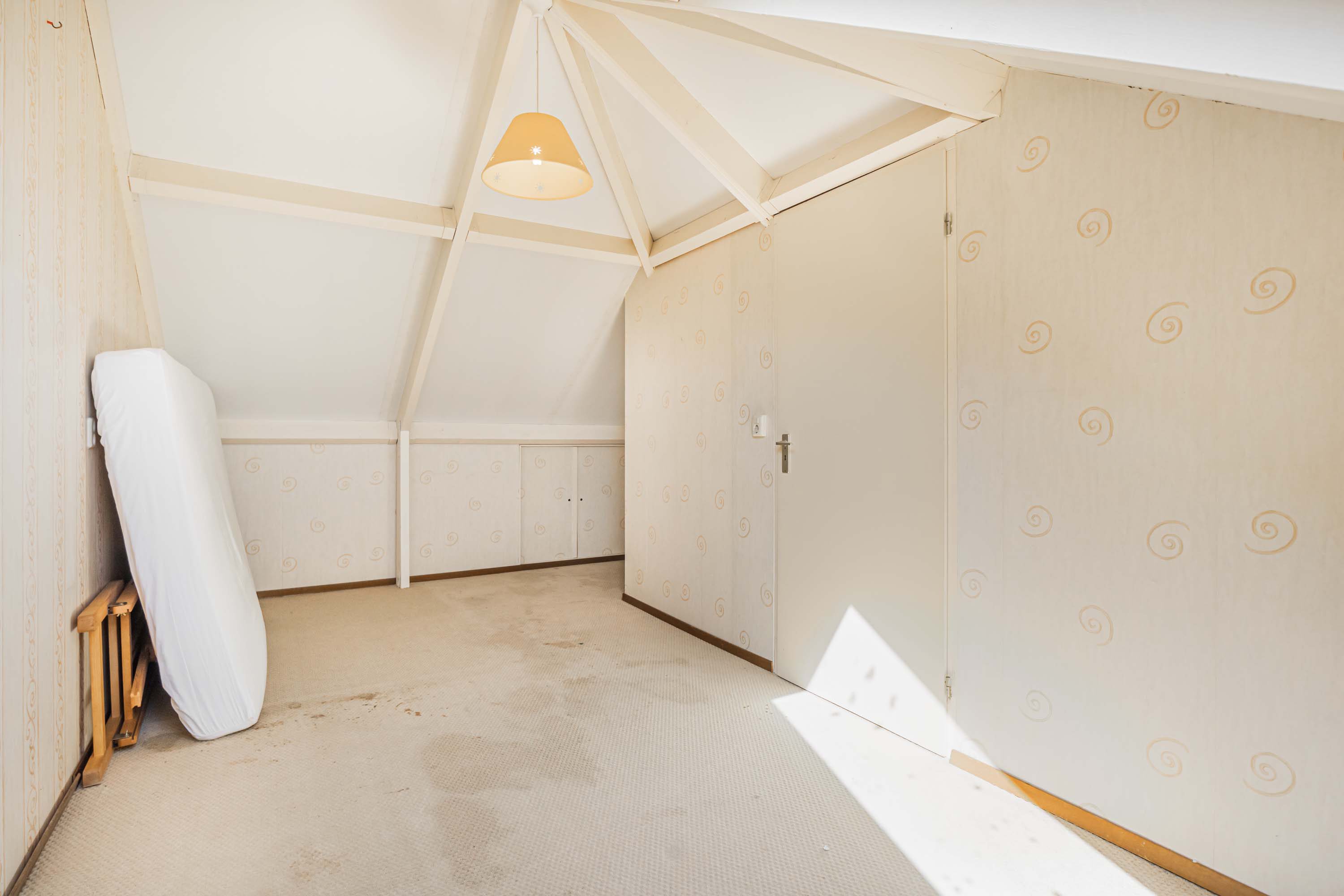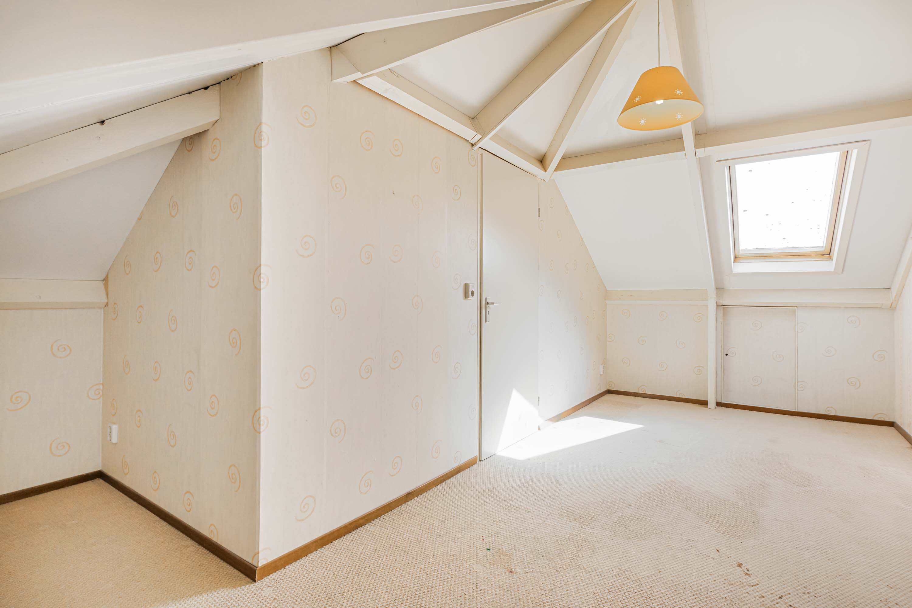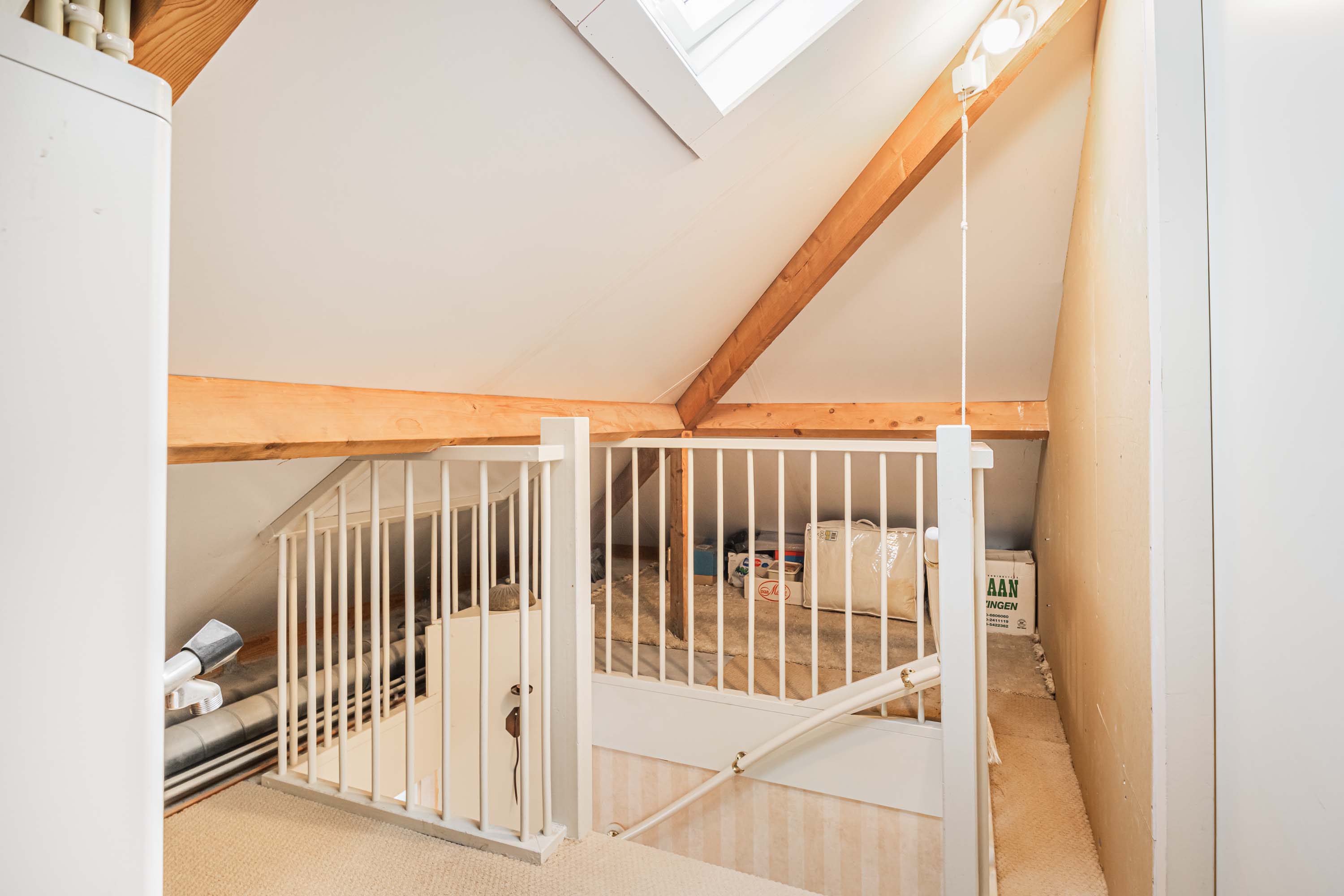 Een vaste trap leidt naar de zolderverdieping, waar een vierde slaapkamer is gerealiseerd met een oppervlakte van 11,4 m². Deze kamer is multifunctioneel en kan bijvoorbeeld gebruikt worden als werk- of sportruimte. De zolder beschikt over dakramen en biedt daarnaast veel bergruimte.