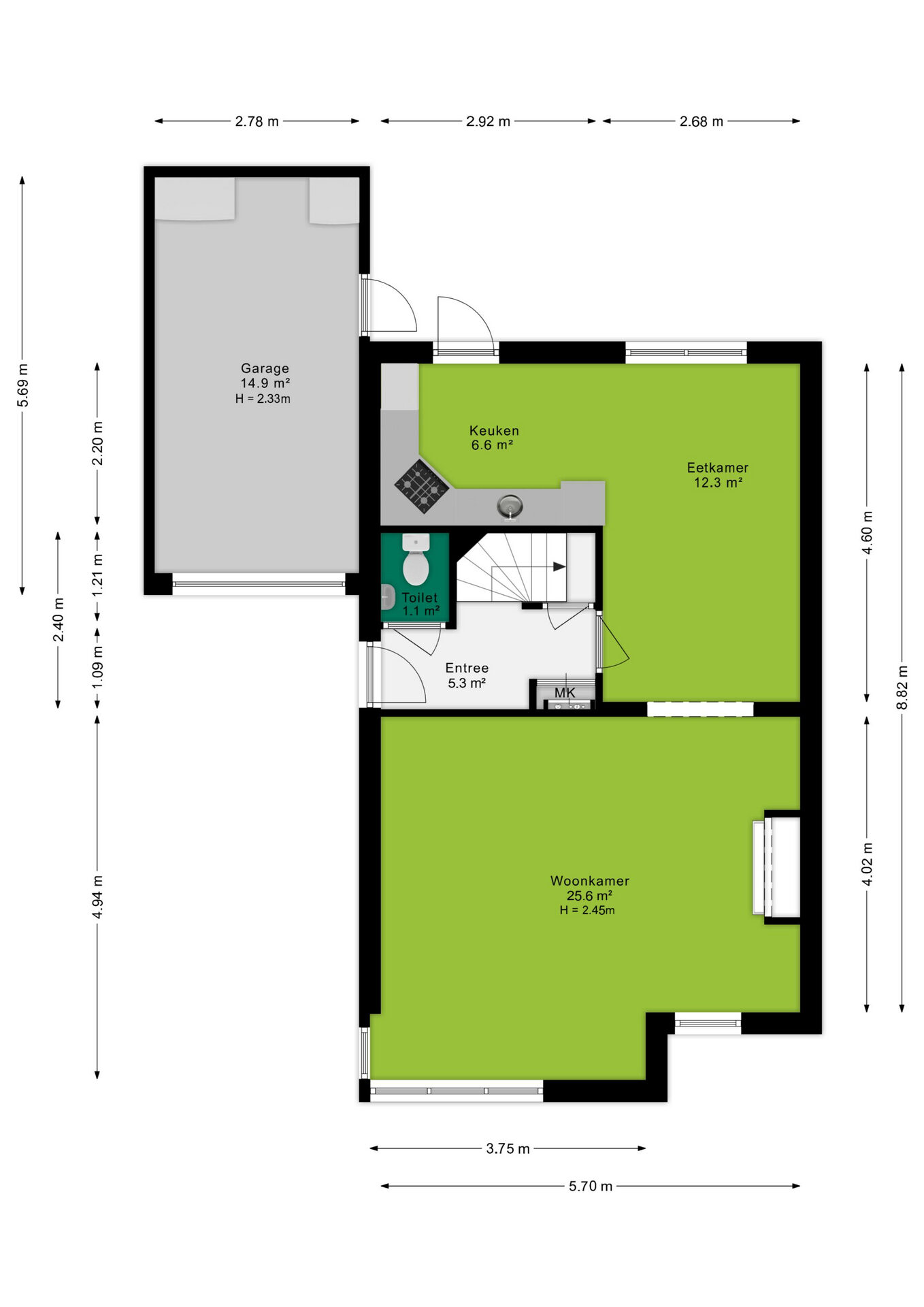 - Garage van 15m² voorzien van elektrische deur;