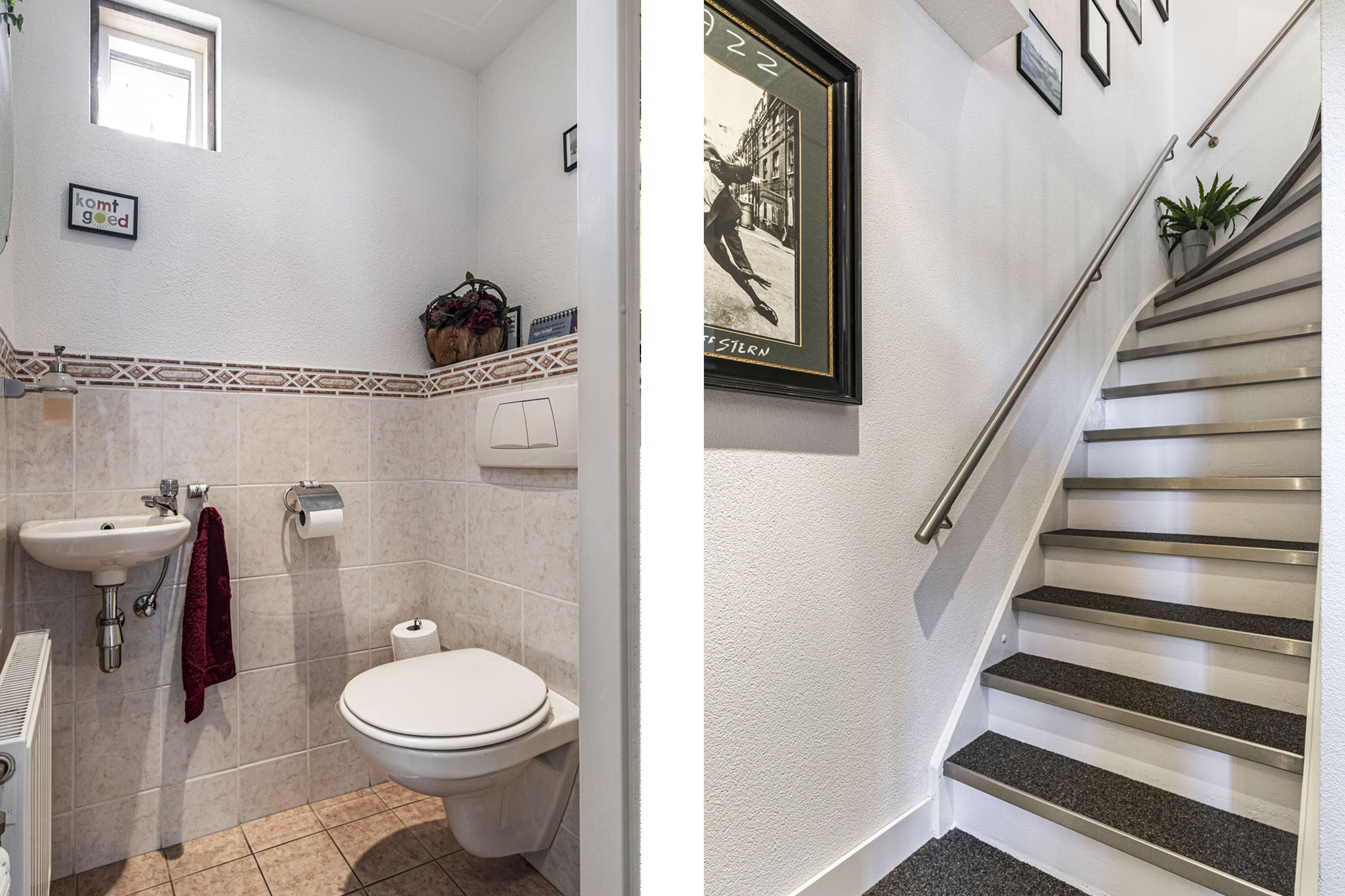 Via de entree met meterkast en toilet stap je door een stijlvolle glazen stalendeur de woonkamer binnen. Deze ruimte voelt heerlijk licht dankzij de open verbinding met de keuken en de royale daglichtinval. De gehele benedenverdieping is voorzien van een siergrindvloer, wat zorgt voor een moderne uitstraling en bovendien gemakkelijk schoon te houden is. De moderne keuken biedt volop werk- en opbergruimte en is uitgerust met diverse Miele inbouwapparatuur, waaronder een oven, combi-oven, inductiekookplaat, koel-vriescombinatie en een vaatwasser. Inbouwspotjes zorgen voor prettig werklicht, terwijl de vloerverwarming in de gang en woonkamer zorgt voor extra comfort.