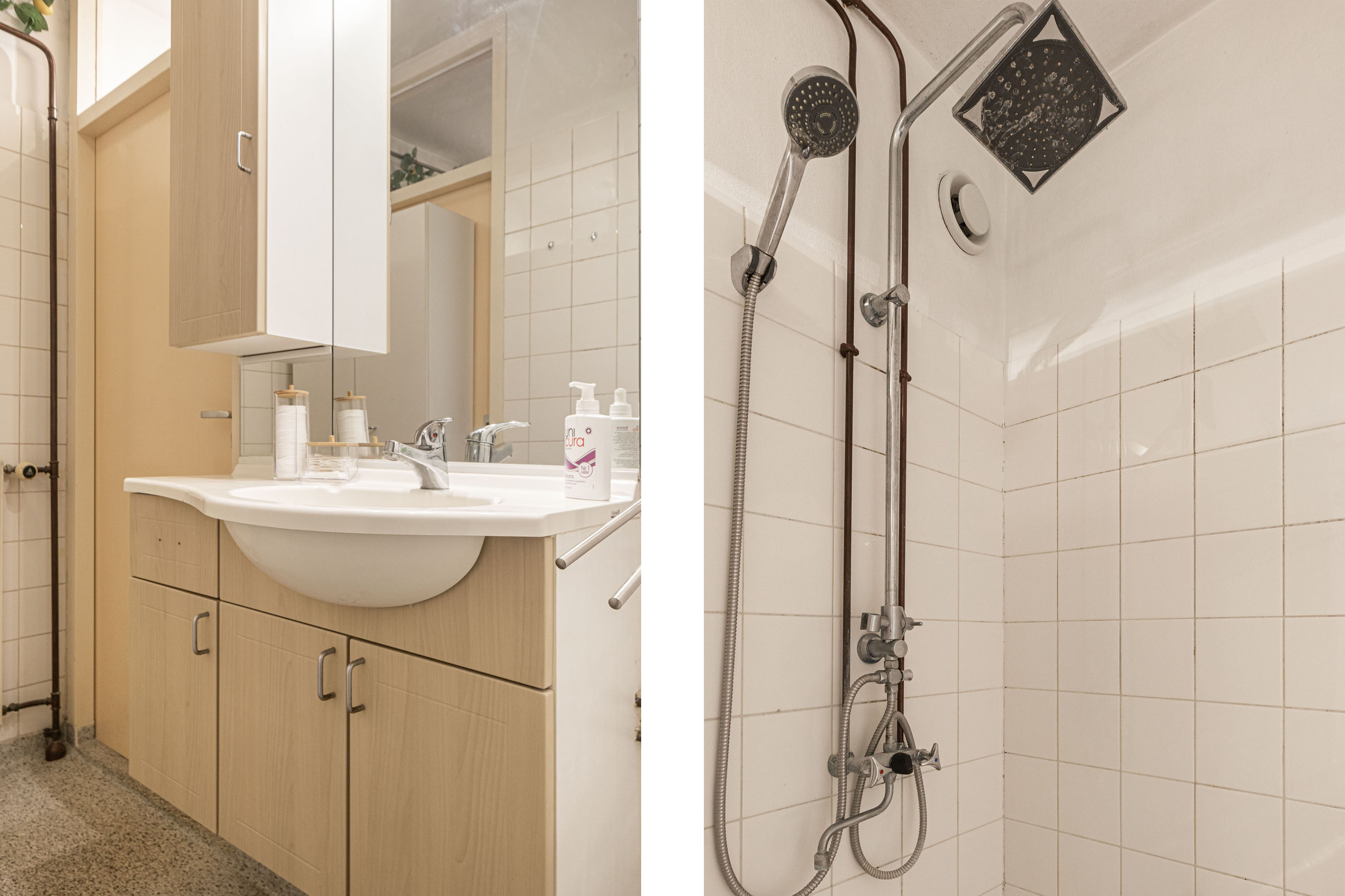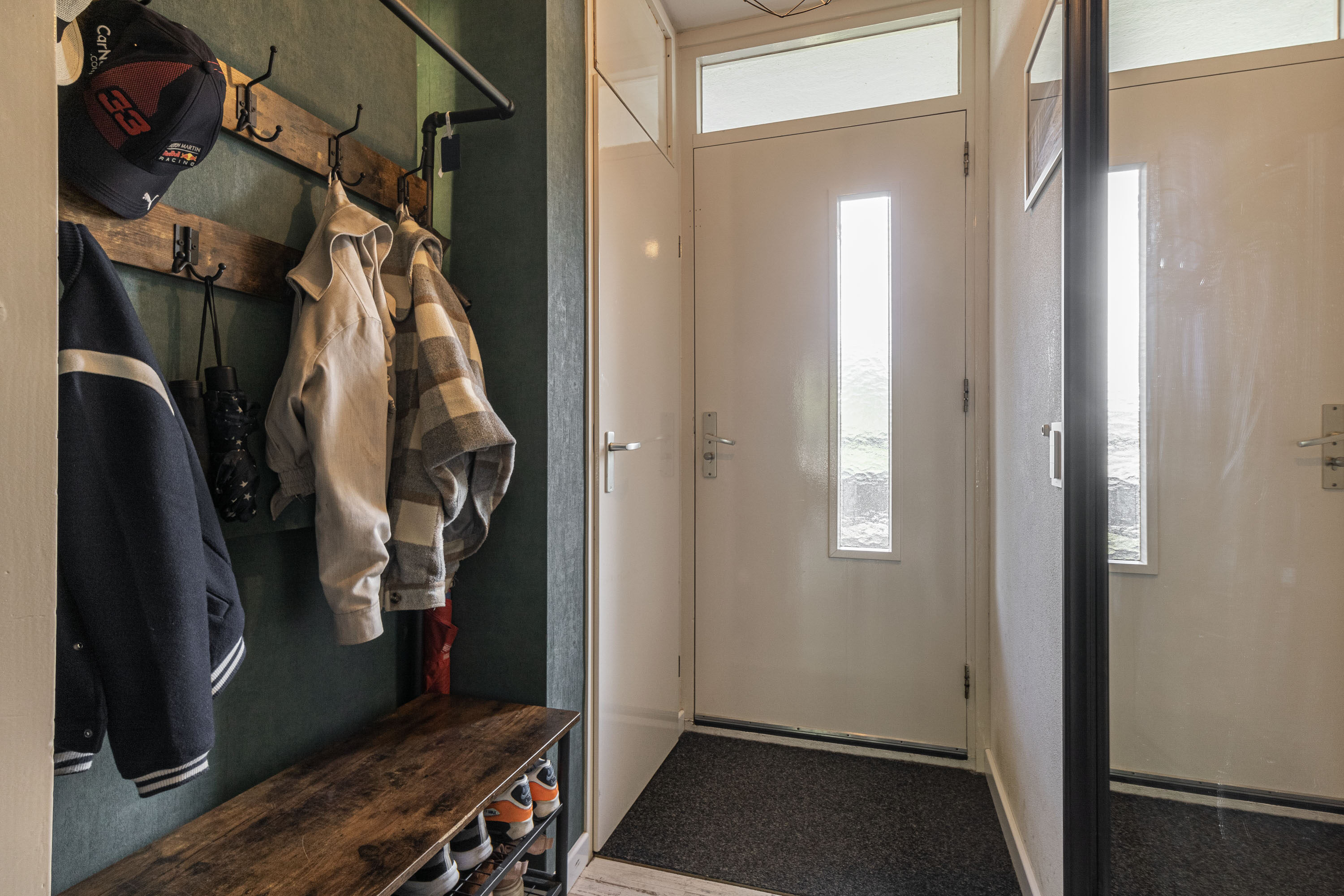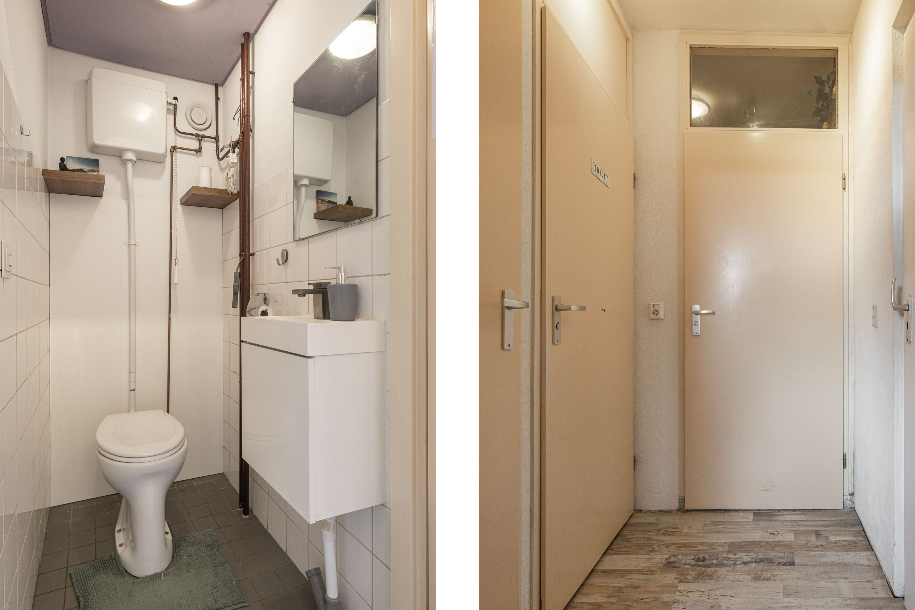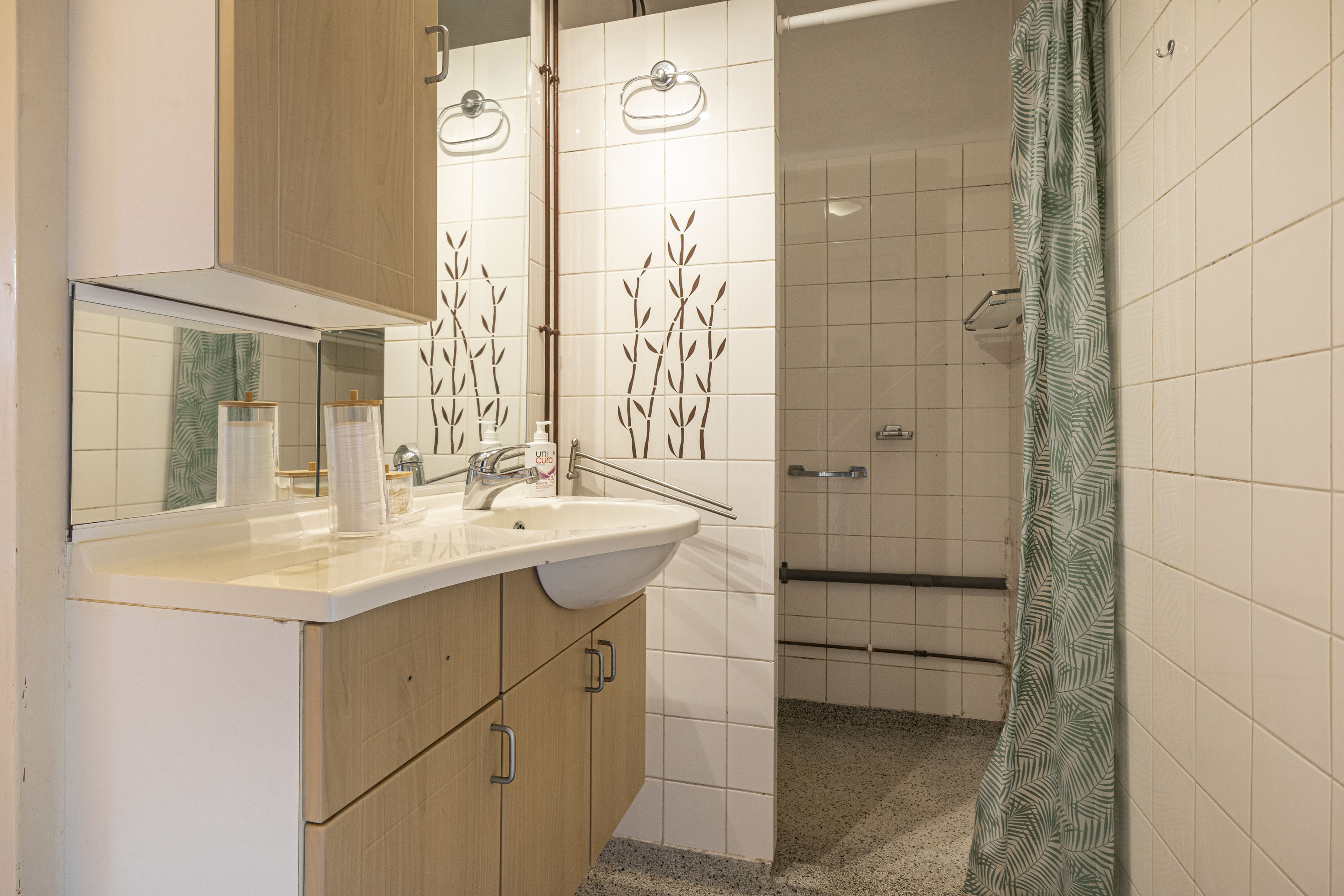 Via de hal heb je toegang tot de badkamer, die is voorzien van een inloopdouche en een wastafel met bijpassend meubel. Verder bevindt zich in de hal een apart toilet en een kast met de boiler.