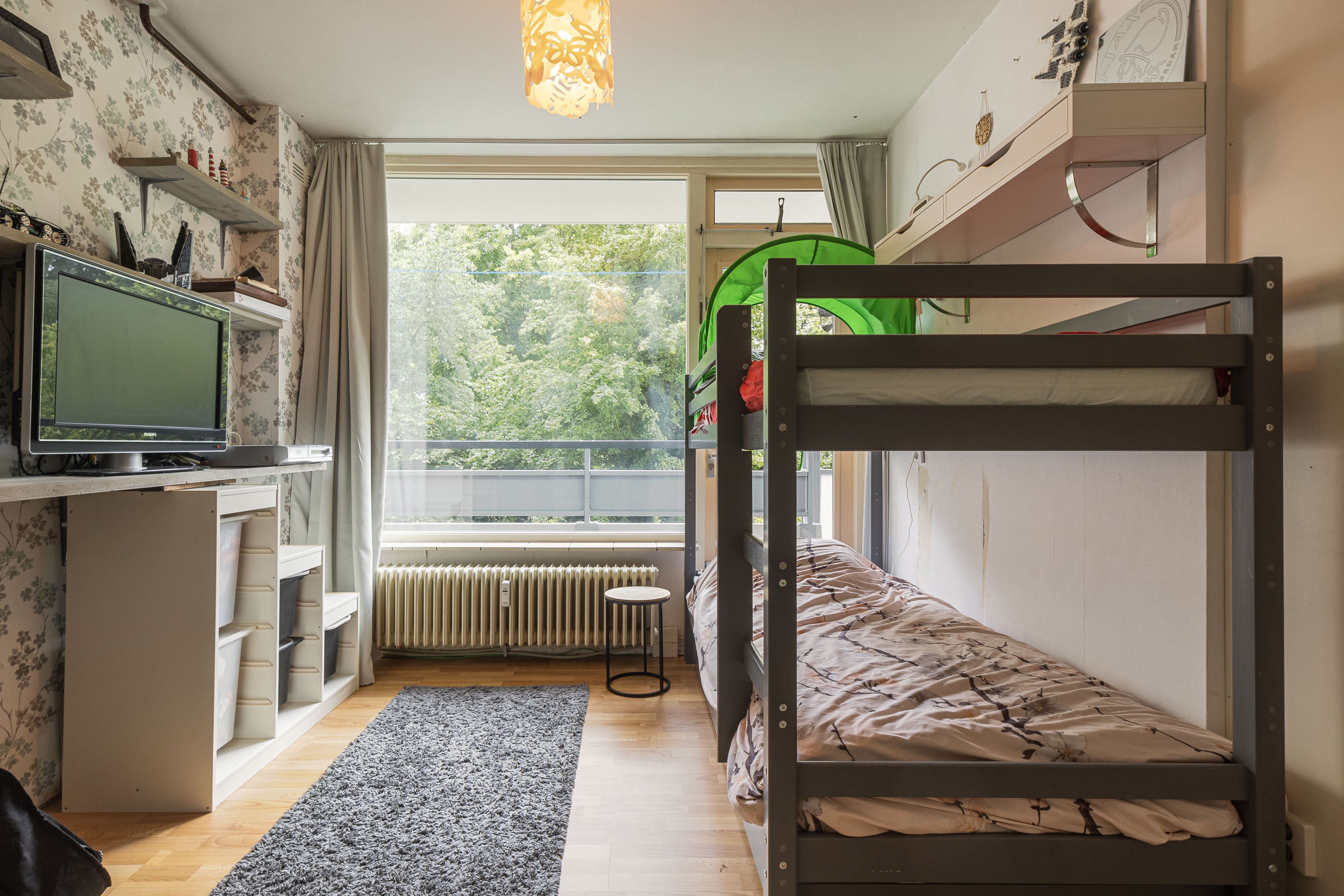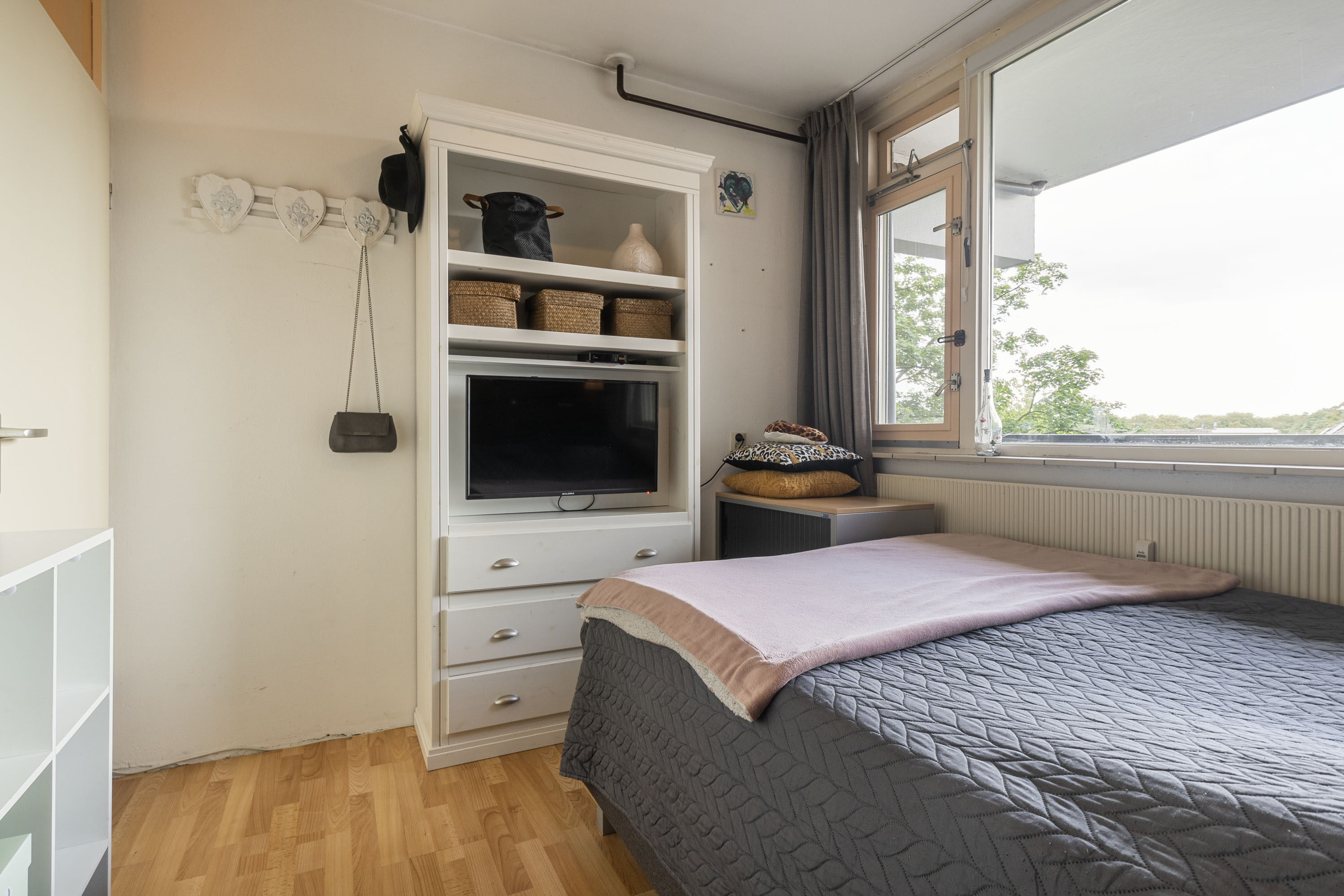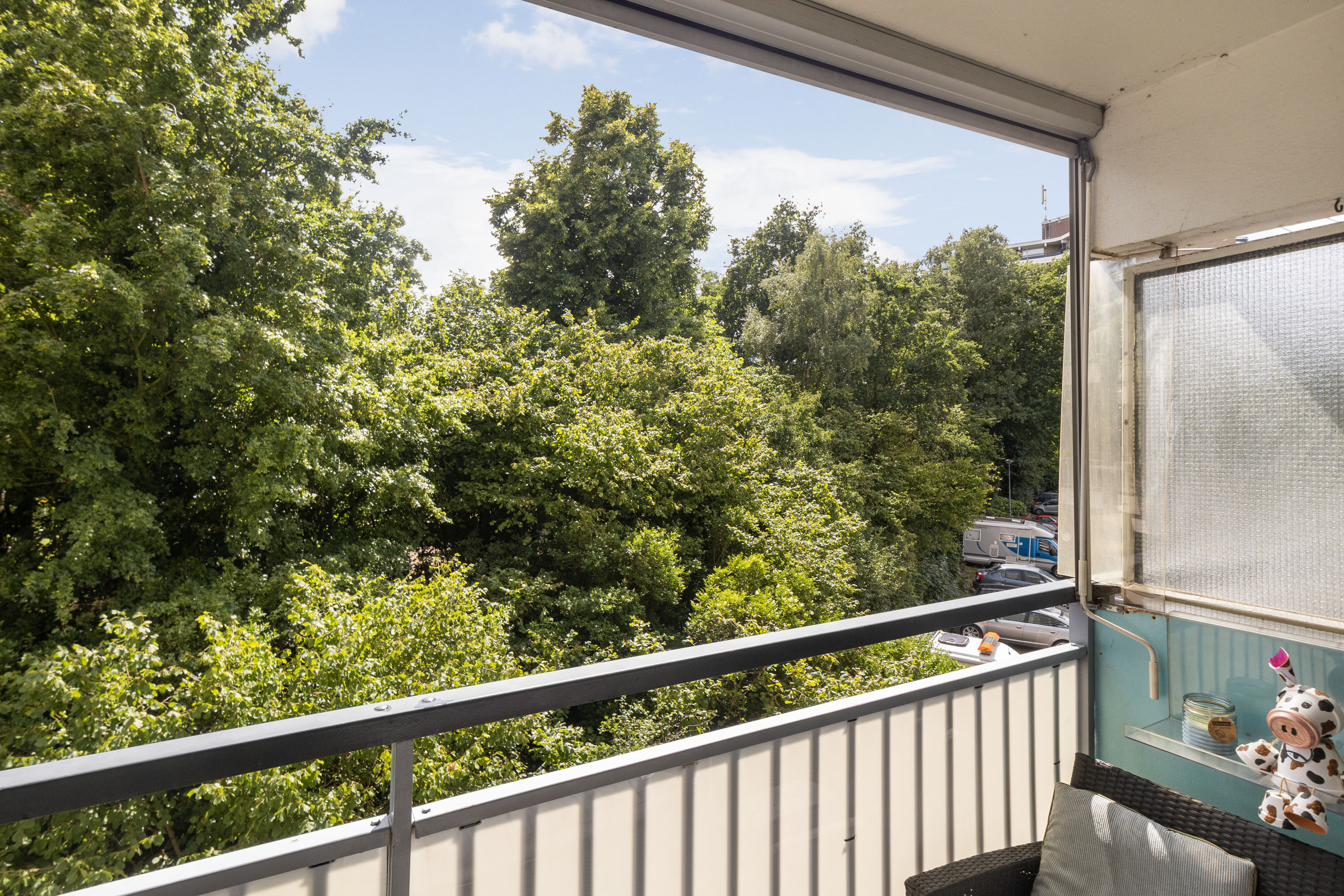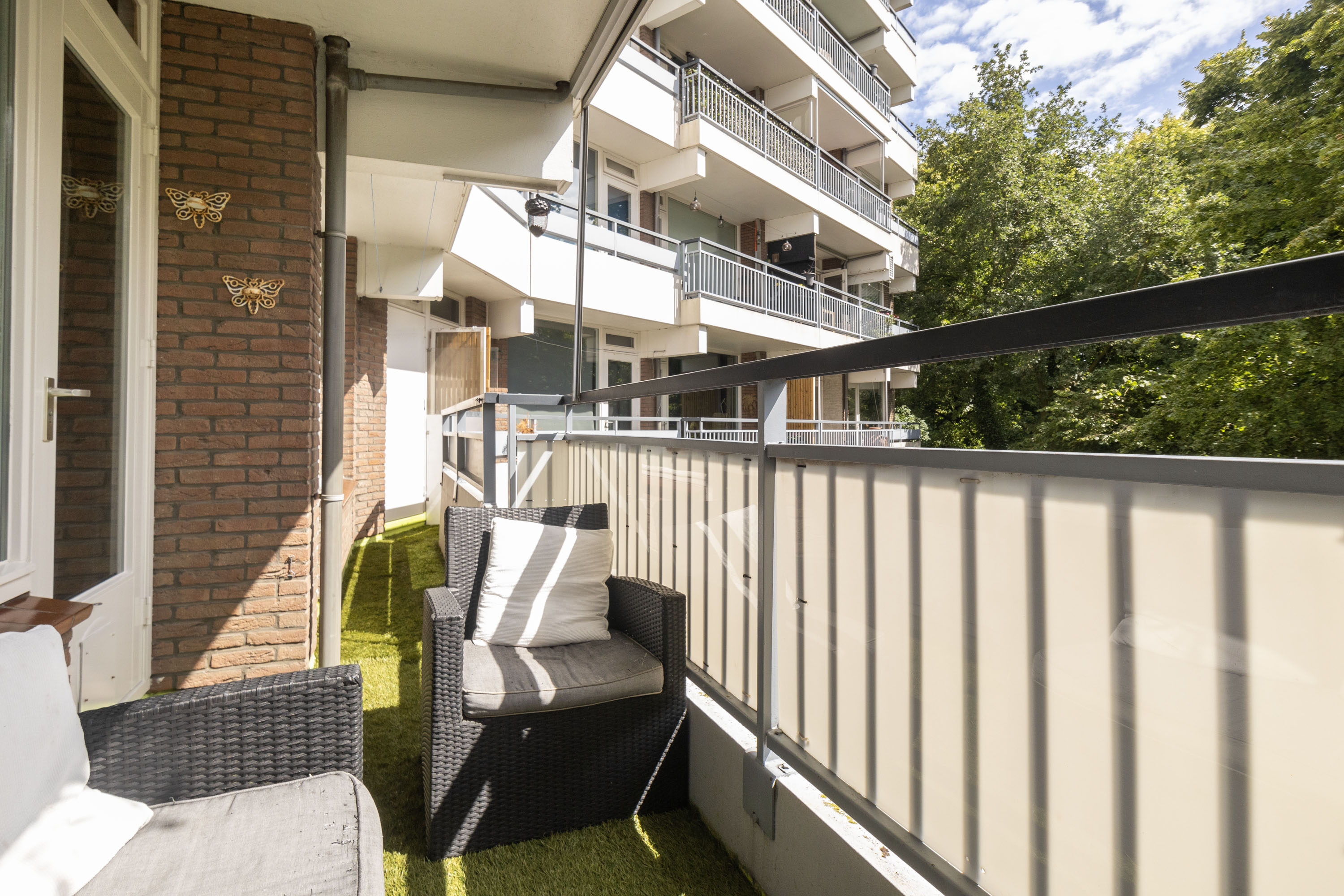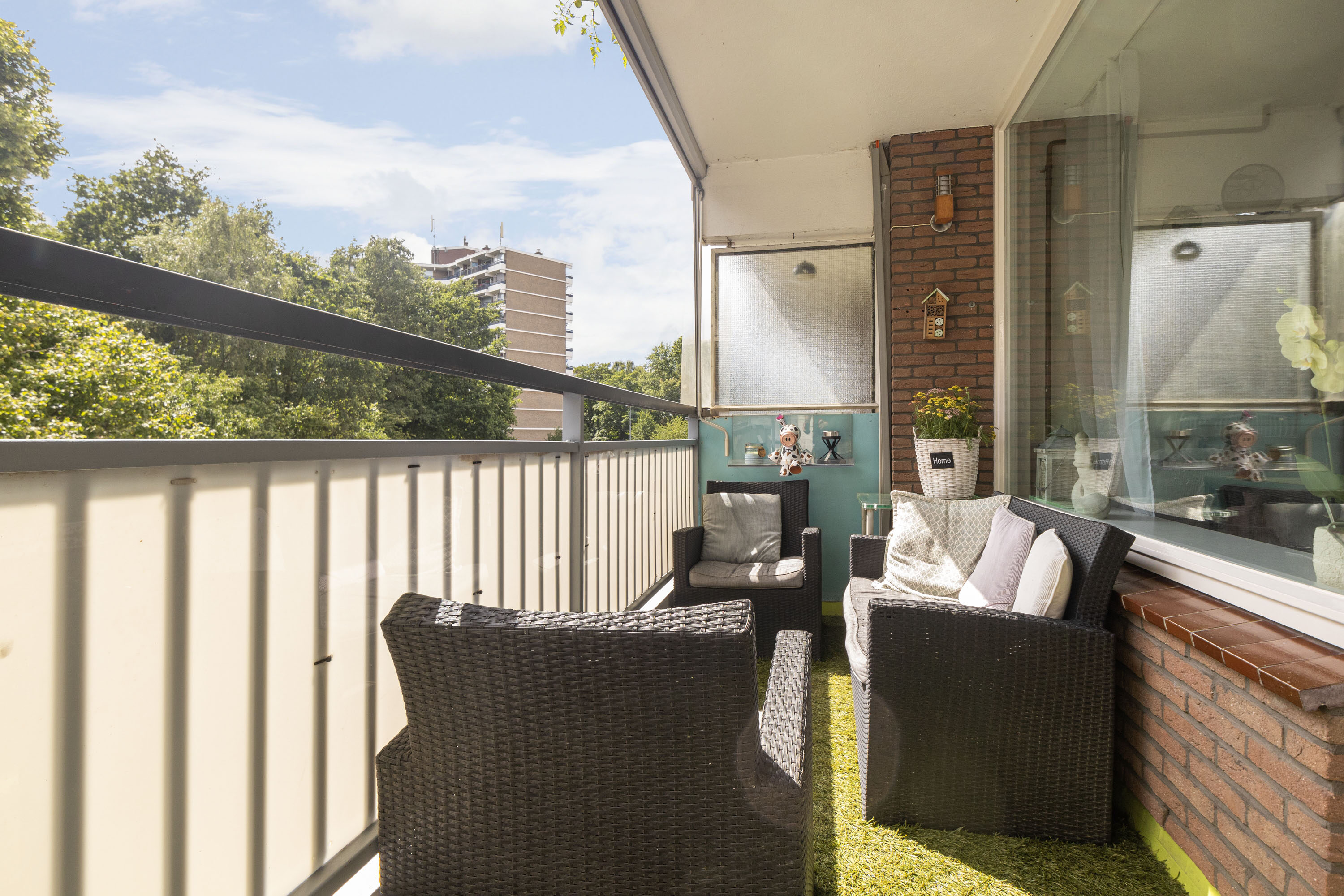 Het balkon ligt op het westen, wat betekent dat je hier in de middag en avond heerlijk kunt genieten van zon en uitzicht op het groen. Dankzij de ligging is het een verlengstuk van je woonkamer én slaapkamer – perfect voor een kop koffie of een boek in de zon.