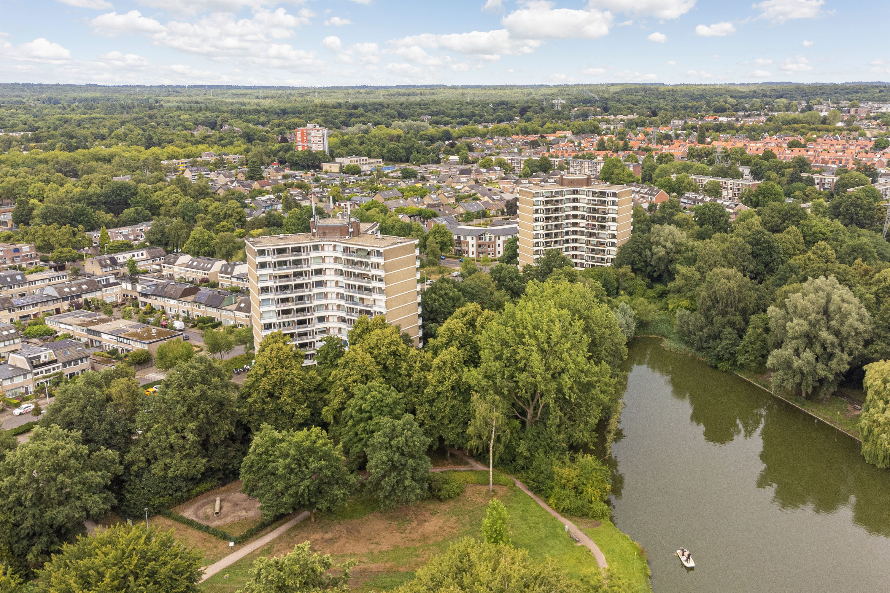 Dit appartement is gelegen op een rustige plek in Ede, direct aan het Proosdijpark. Hier woon je letterlijk aan het groen, met de kinderboerderij op steenworp afstand – perfect voor een dagelijkse wandeling of een moment van ontspanning. Voor je boodschappen loop of fiets je eenvoudig naar het kleinschalige winkelcentrum Bellestein. Het gezellige centrum van Ede ligt op slechts 7 minuten fietsen, en ook het station, de A12 en A30 zijn snel bereikbaar.