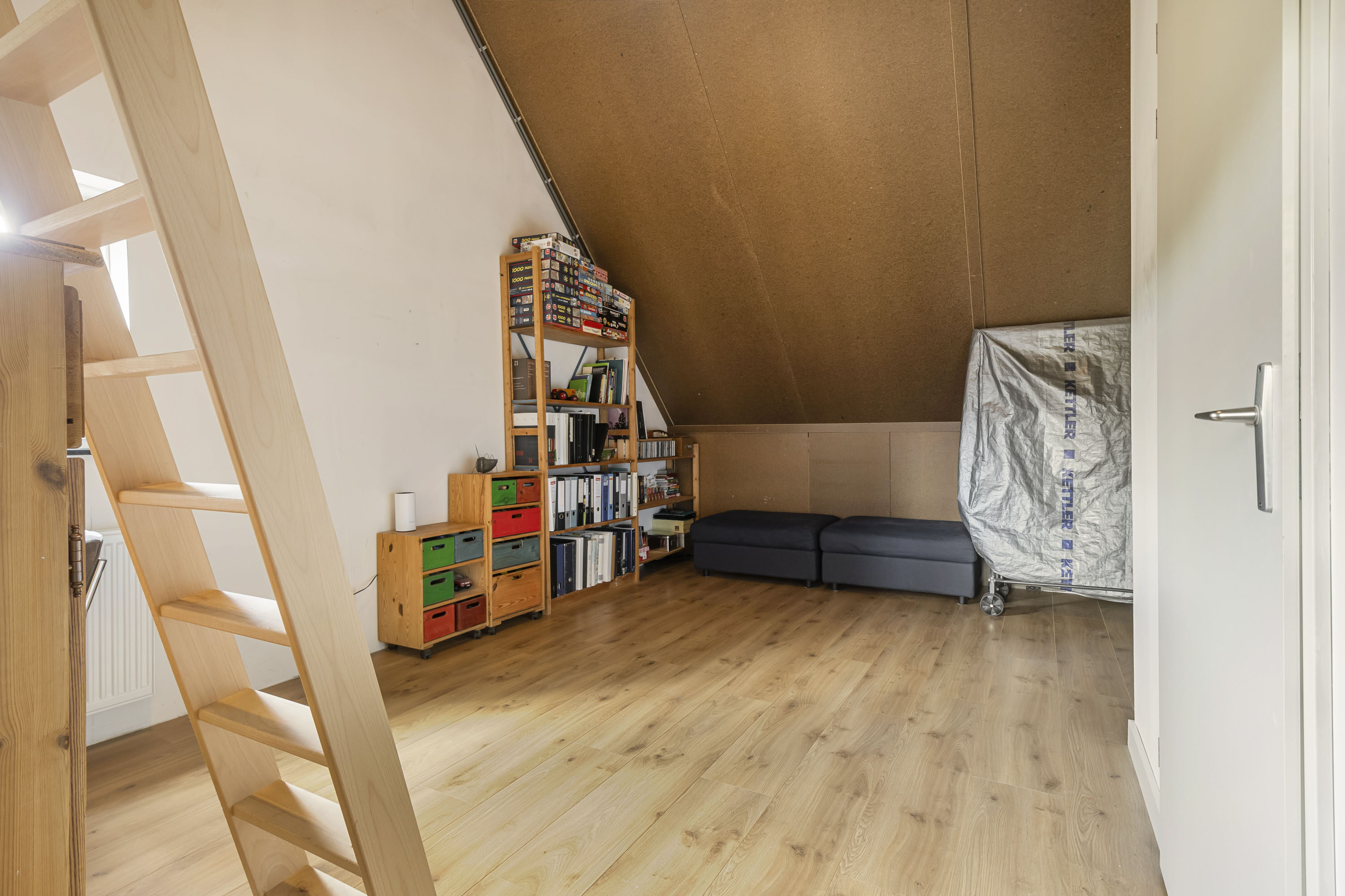 Ook de zolderverdieping biedt volop ruimte. Hier zijn nog eens twee slaapkamers van 21m² en 13 m² groot. Verder is er een handige vliering, bergruimte achter de schotten én een aparte ruimte voor de wasmachine.