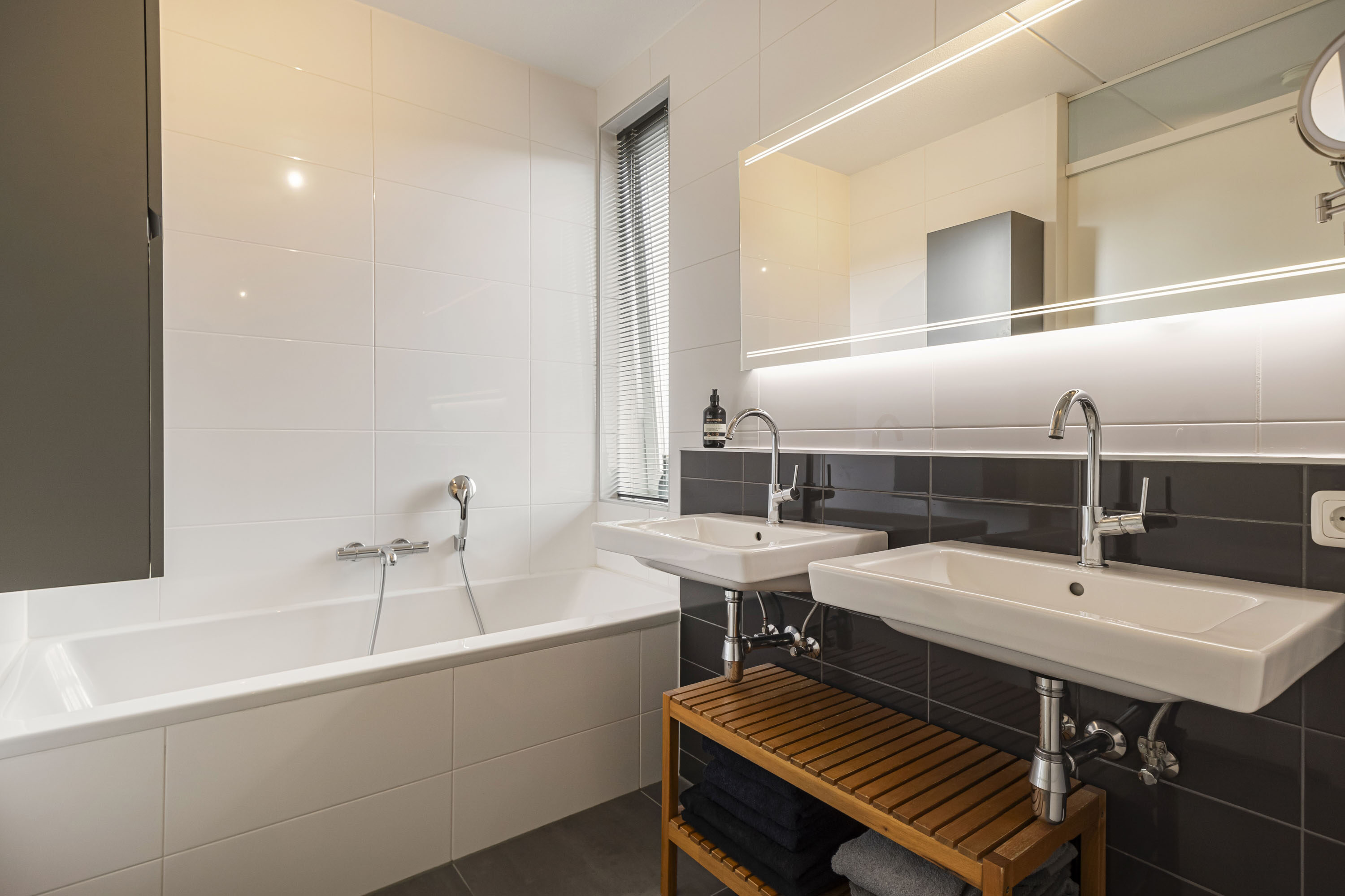 Op deze etage bevinden zich drie slaapkamers, van circa 20m², 15m² en 10m² groot. De badkamer is uitgerust met een ligbad, inloopdouche, dubbele wastafel en vloerverwarming. Daarnaast is er een apart toilet op de overloop.