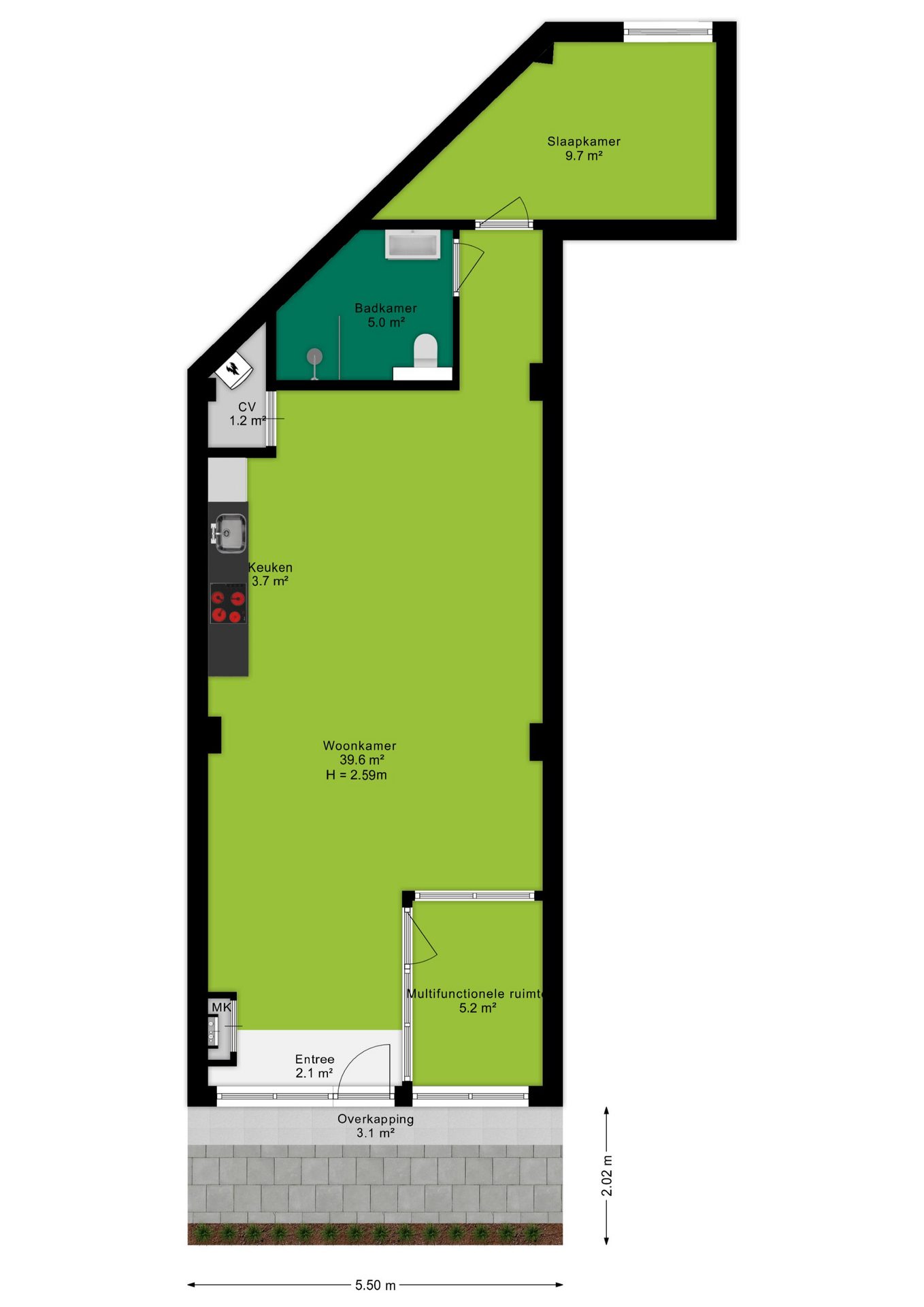 Het appartement is splinternieuw en wordt geleverd incl. luxe keuken en badkamer. De wanden en vloeren worden behangklaar opgeleverd, dus pak dat moodboard en maak het appartement helemaal in jouw eigen stijl!