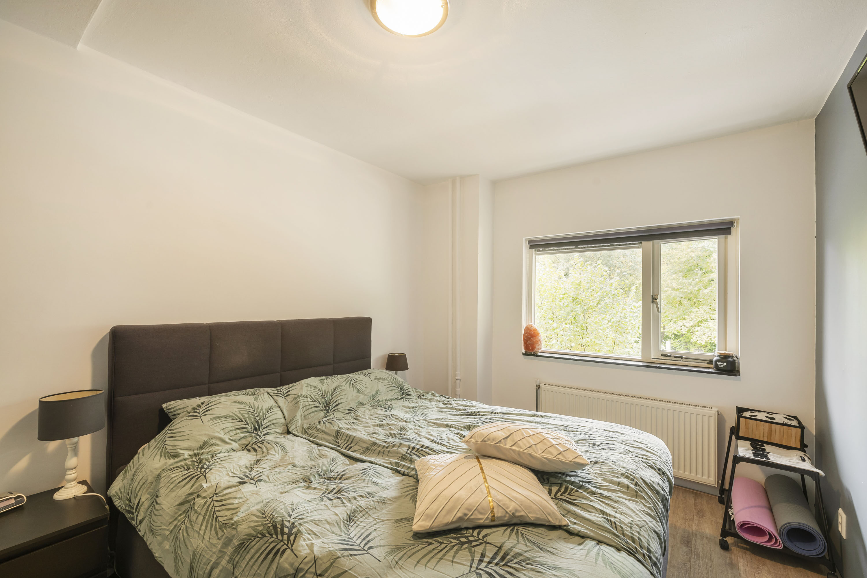 Het balkon is bereikbaar vanuit de woonkamer en biedt een gezellige plek om te ontspannen met uitzicht over het groen. De ligging op het zuidwesten zorgt voor veel licht in de middag en vroege avond.