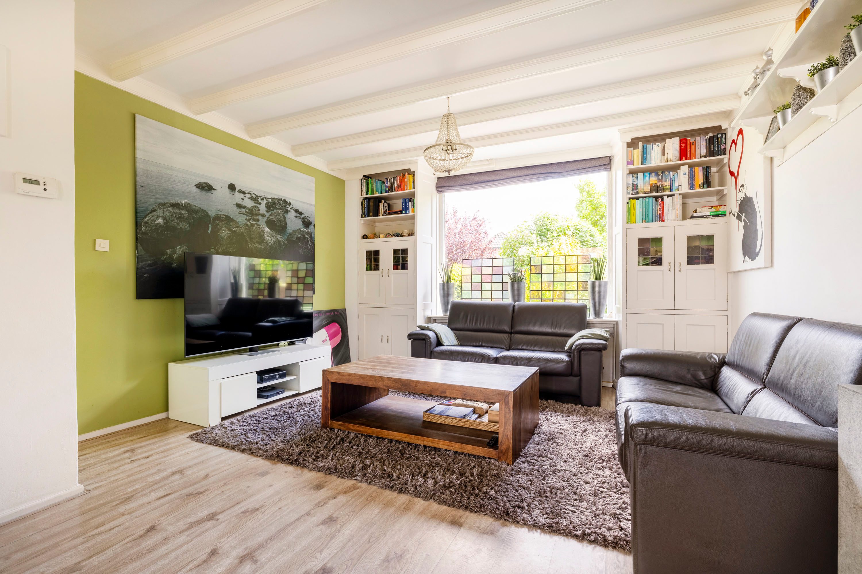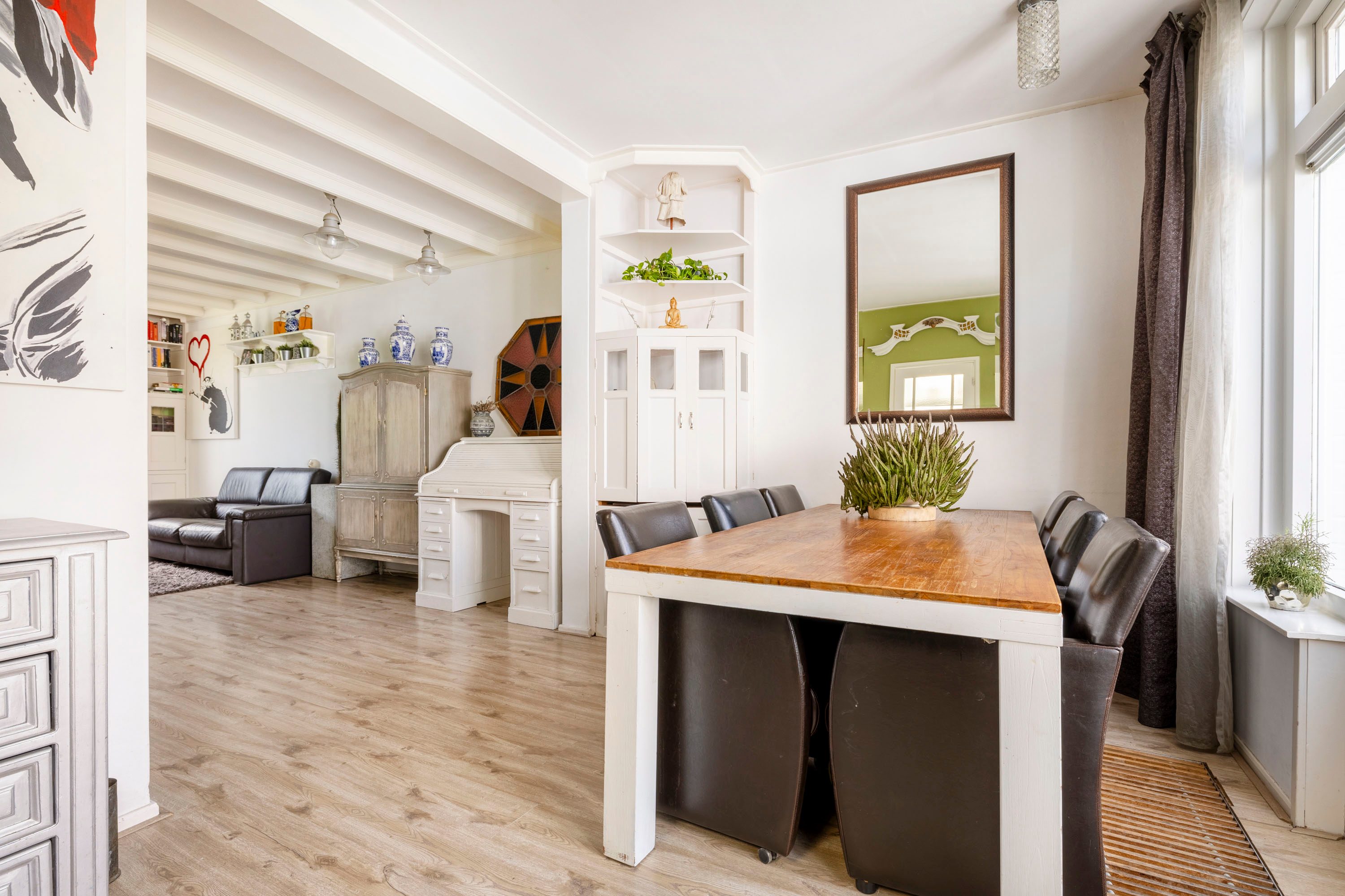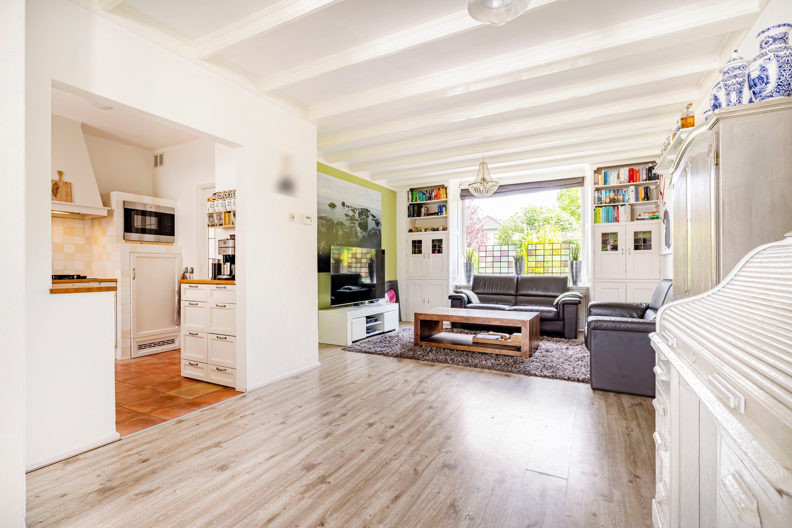 De woning beschikt over een royale woonkamer van totaal 36 m². Deze ruime en lichte leefruimte is voorzien van een mooi plafond met karakteristieke plafondbalken. De open doorgang naar de eetkamer geeft de woning een ruimgevoel. Door het vele glas in de achtergevel en de open doorgang naar woonkamer is de hele benedenverdieping uitstekend verlicht met zonlicht. Met de openslaande tuindeuren in de achtergevel van de woning kun je tevens heerlijk de tuin naar binnen halen.
