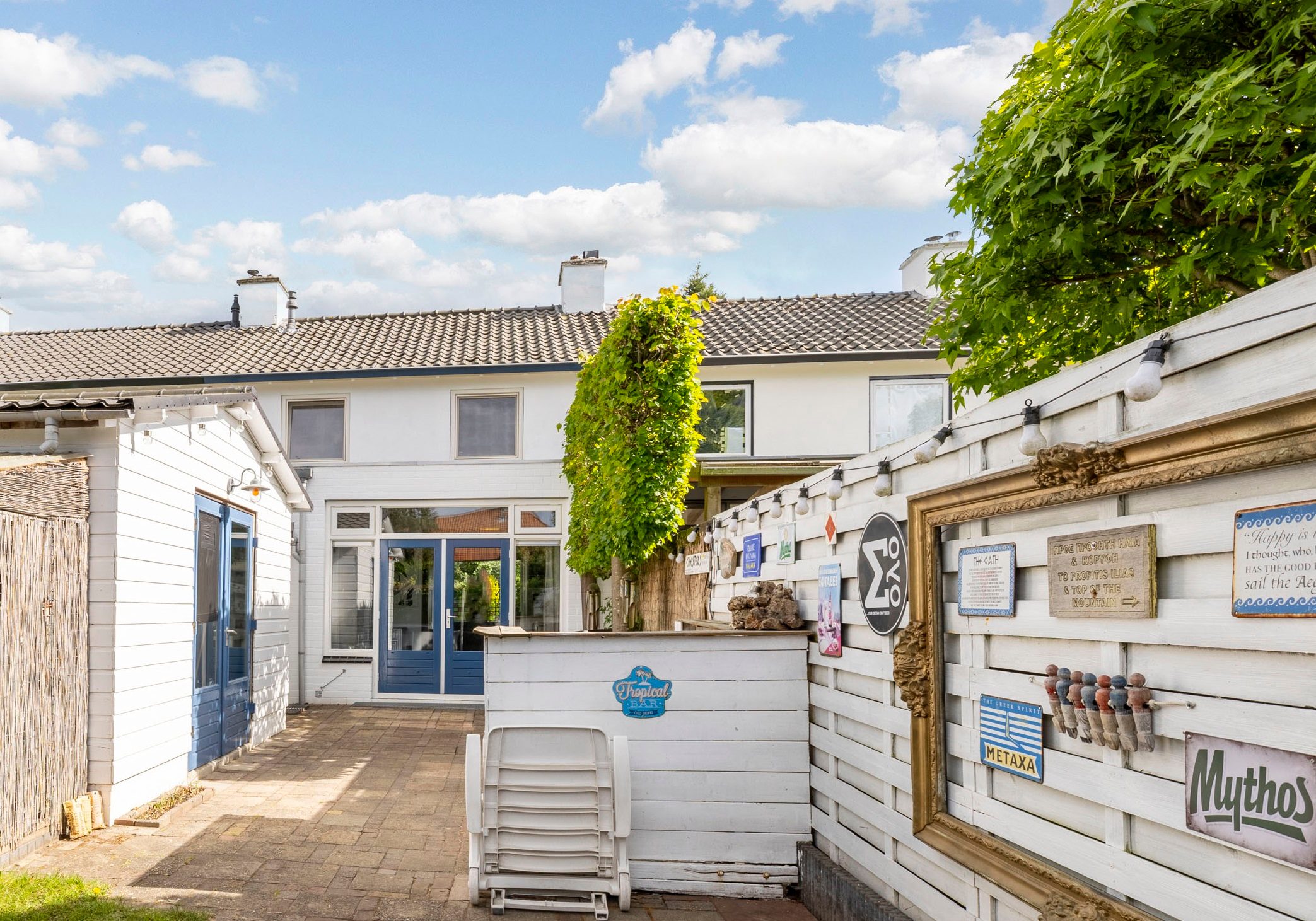 Vanuit de eetkamer of de hal aan de achterzijde van de woning betreed je de mooie diepe, grote achtertuin. Ondanks de ligging op het noorden is er, door de diepe, altijd wel een lekker plekje om te genieten in de zon. Deze sfeervolle tuin is uitgerust met een gezellige zithoek en een ruime berging ideaal voor het opbergen van tuingereedschap, fietsen of andere benodigdheden. Bovendien is er een handige achterom, die zorgt voor gemakkelijke toegang tot en van de tuin zonder door het huis te hoeven gaan. Naast een fijne privacy aan de voorzijde biedt de diepe voortuin parkeerplaats voor twee auto's op eigen terrein.