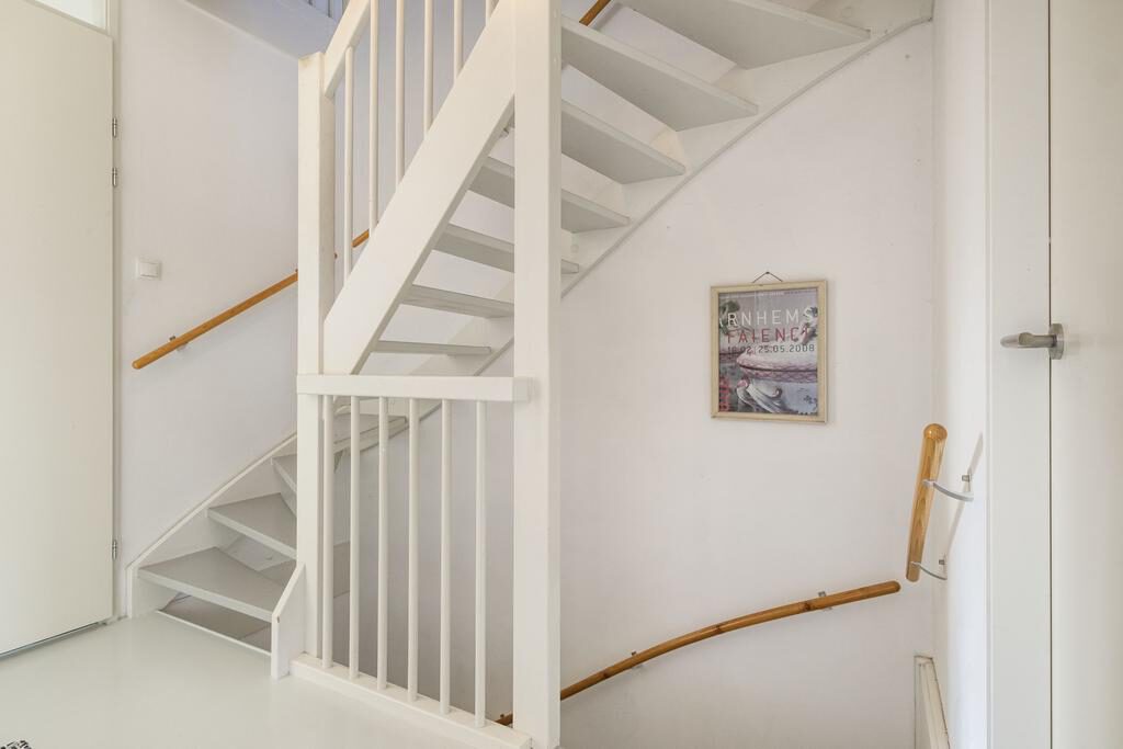 Via de entree kom je bij de hal met moderne meterkast, toiletruimte voorzien van zwevend toilet met fonteintje en trapopgang naar de eerste verdieping.