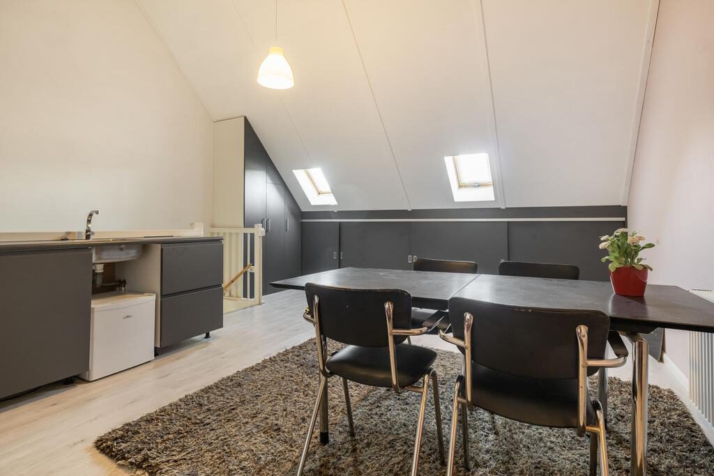 Via een vaste trap is de ruime zolder bereikbaar. Deze zolder is helemaal open waardoor er gemakkelijk twee slaapkamers gerealiseerd kunnen worden. Momenteel is deze ruimte ingerichte als woon- werkruimte met een aanrechtblok met spoelbak en stromende water.