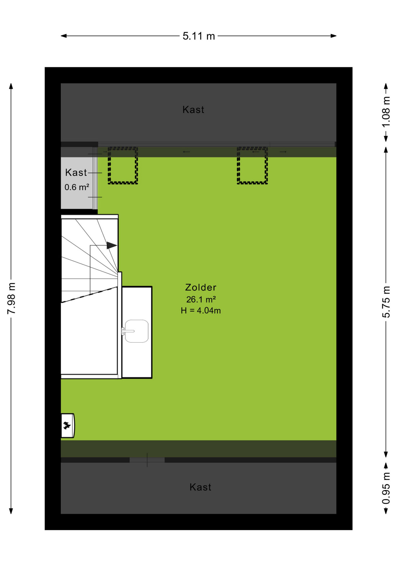 Voor het natuurlijke licht zijn twee dakramen geplaatst.