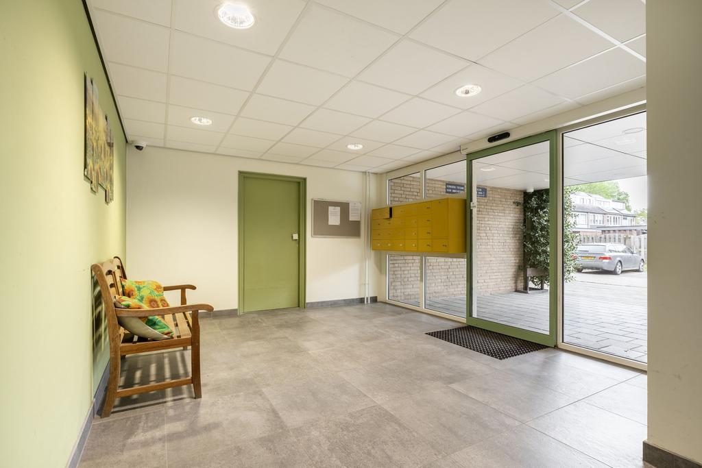 Via de centrale entree kom je bij de brievenbussen en heb je tot de lift of het trappenhuis.