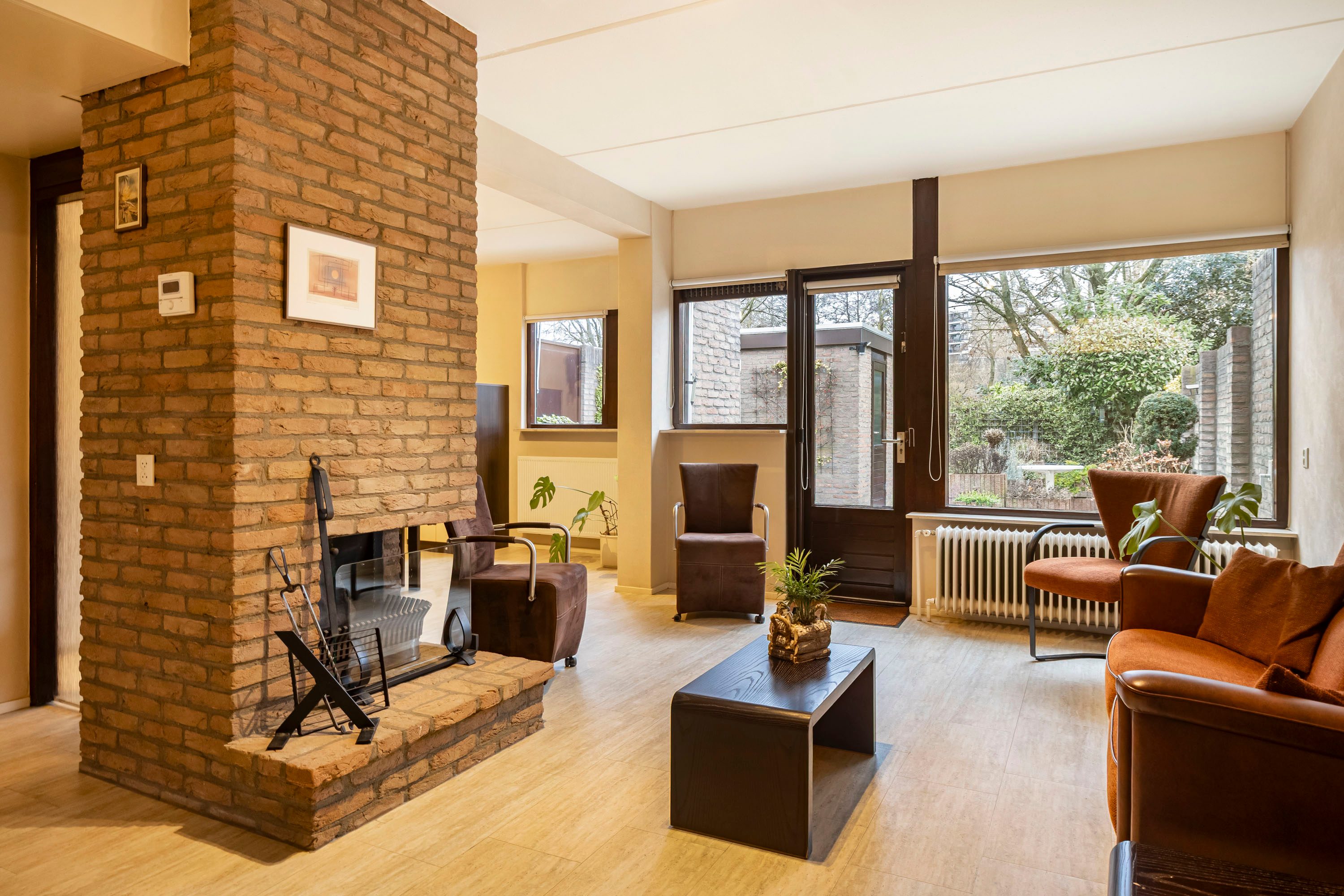 +Ruime, lichte woonkamer met een sfeervolle open haard