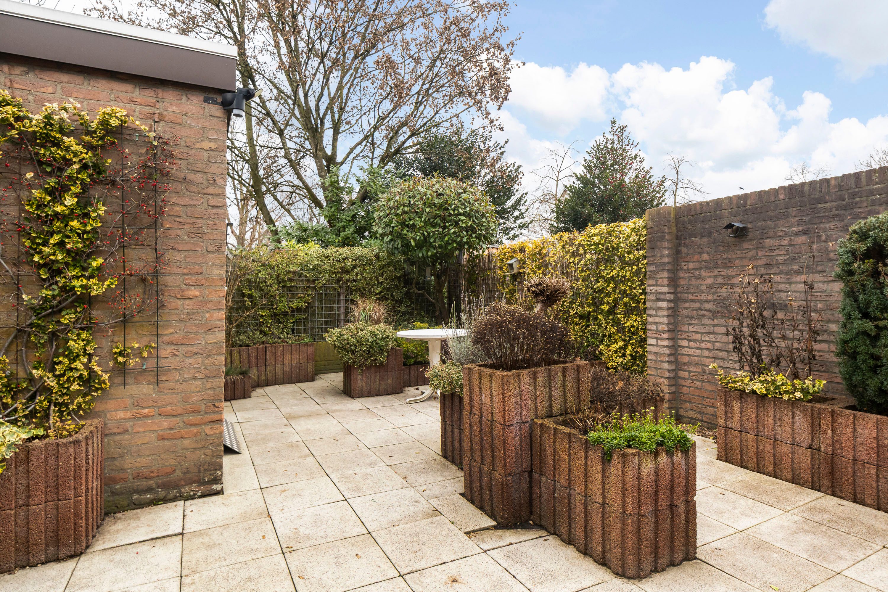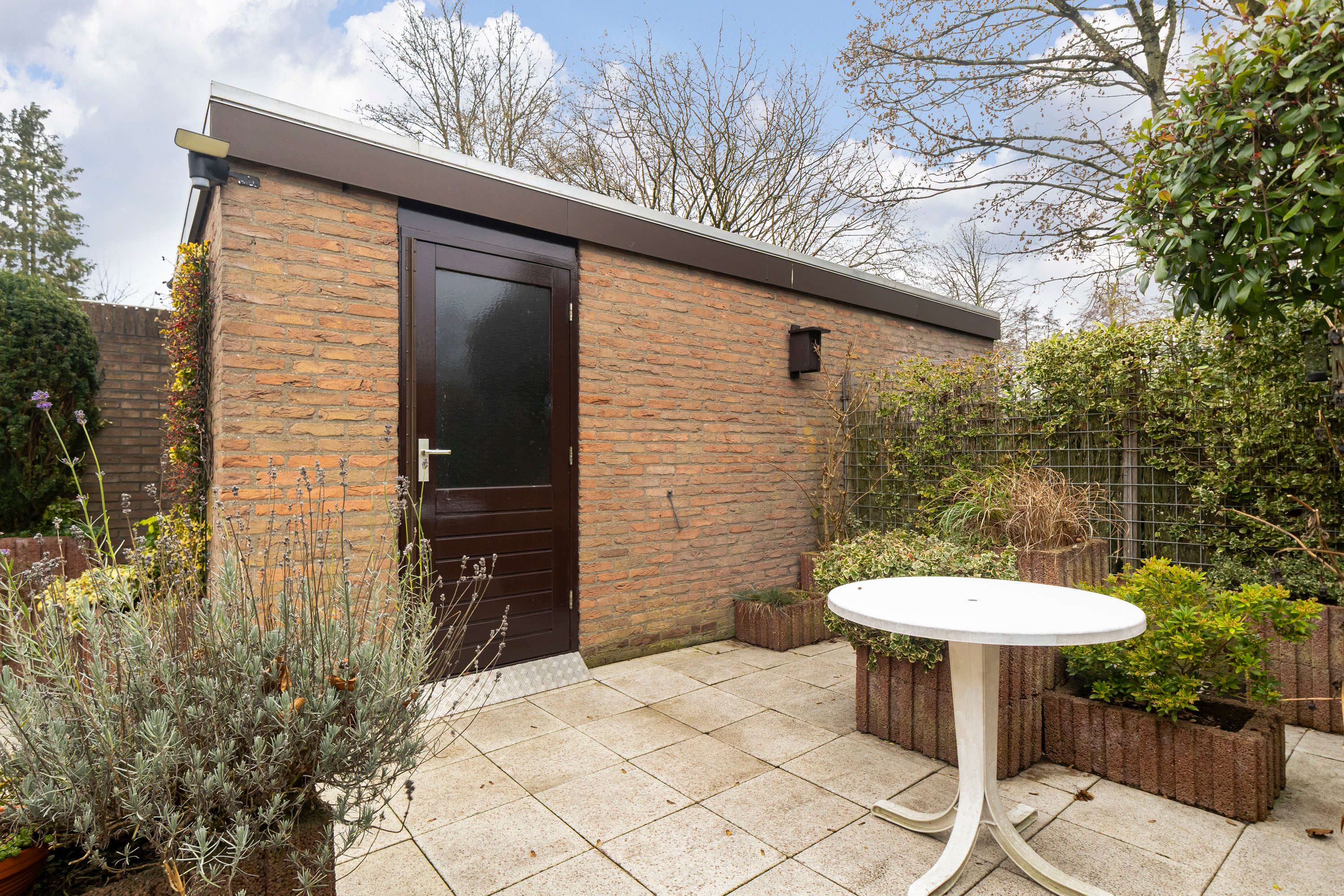 De achtertuin ligt op het noorden en is bereikbaar via een achterom. De tuin biedt ruimte voor meerdere zitplekken, zodat je op verschillende momenten van de dag buiten kunt zitten. Het aanwezige zonnescherm zorgt voor extra comfort op warme dagen. In de tuin staat een stenen berging, ideaal voor fietsen en tuingereedschap.