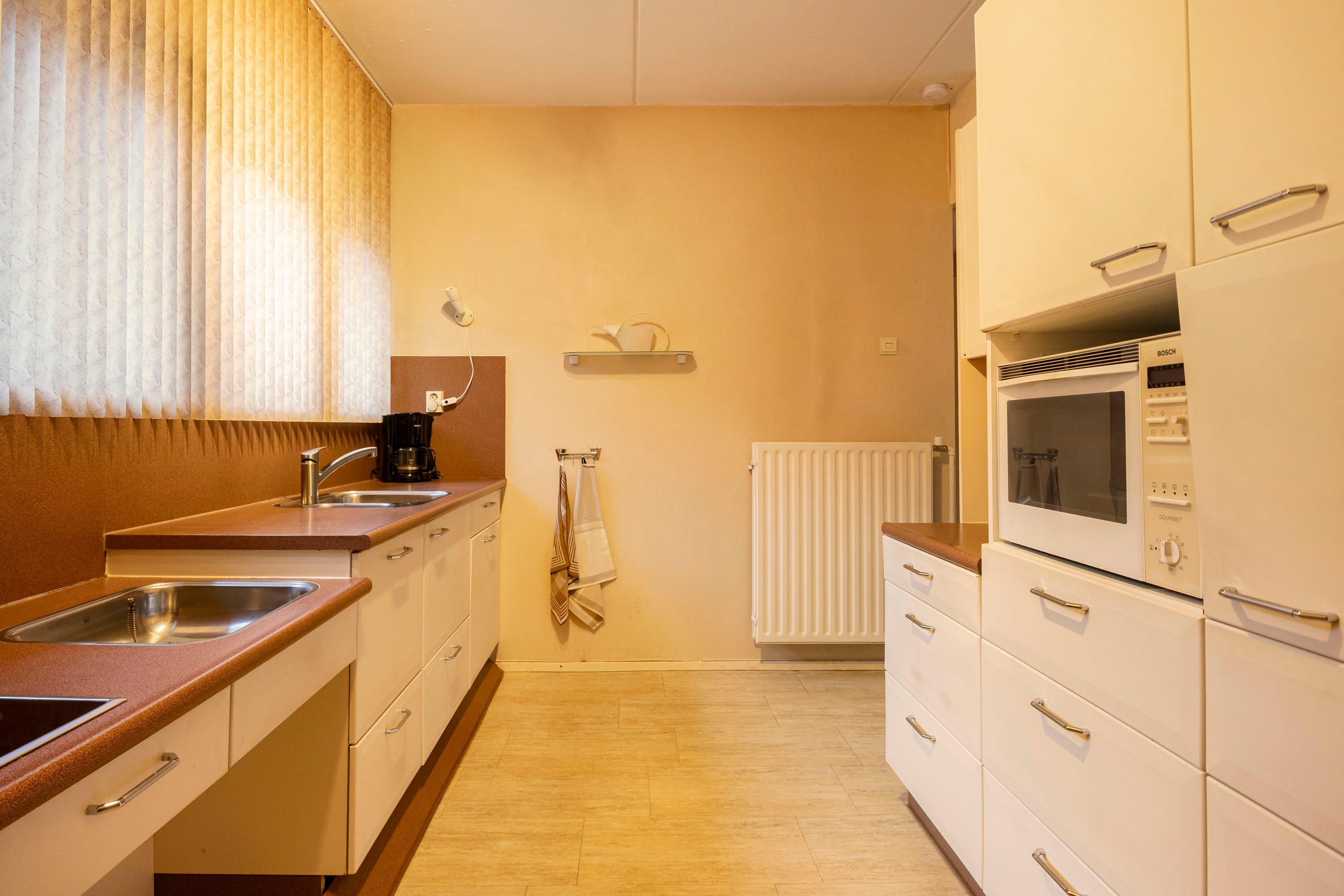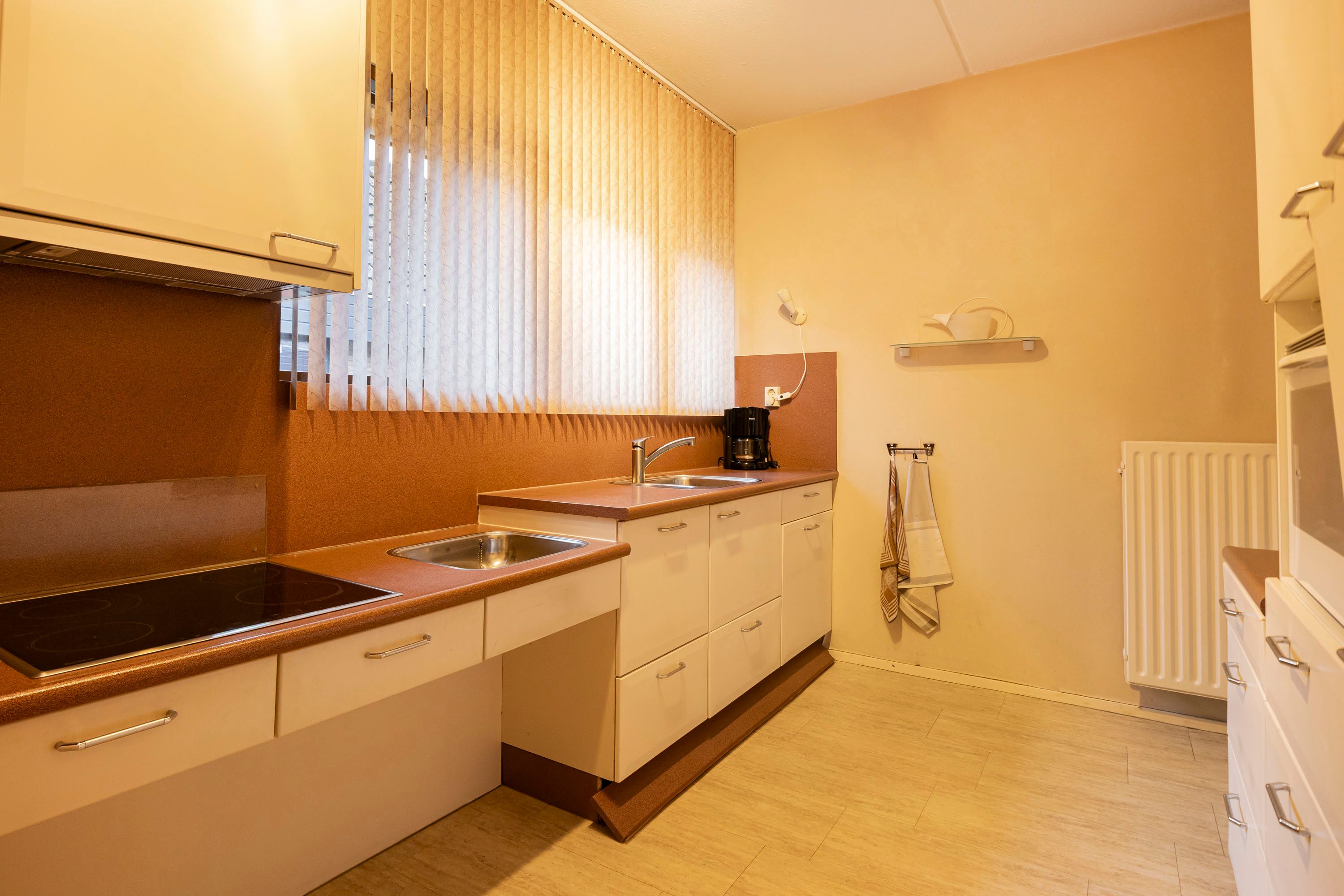 De keuken is ruim opgezet en biedt volop opbergruimte. Op de begane grond vind je daarnaast een separaat toilet en een badkamer, voorzien van een douche en wastafel.