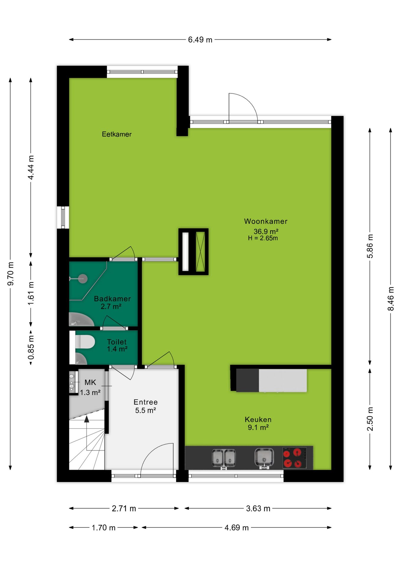 Deze informatie is met zorg samengesteld. Er wordt geen aansprakelijkheid aanvaard voor eventuele onvolledigheden of onjuistheden. Alle opgegeven maten en oppervlakten zijn indicatief.