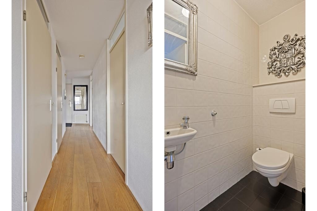 De twee slaapkamers zijn circa 11m² en 7m² groot. De slaapkamers zijn beiden voorzien van een laminaatvloer. De badkamer is volledig betegeld en voorzien van een douchecabine, wastafelmeubel en een handdoekradiator. De badkamer is afgewerkt met neutrale tegels die een rustige uitstraling geven. Daarnaast is er vanuit de hal toegang naar een separate toiletruimte en een aparte berg-/wasruimte. De toiletruimte is voorzien van een modern toilet en een fonteintje. In de berg-/wasruimte vind je de aansluiting voor de wasmachine en beschik je over extra ruimte voor schoonmaakspullen en andere huishoudelijke items.