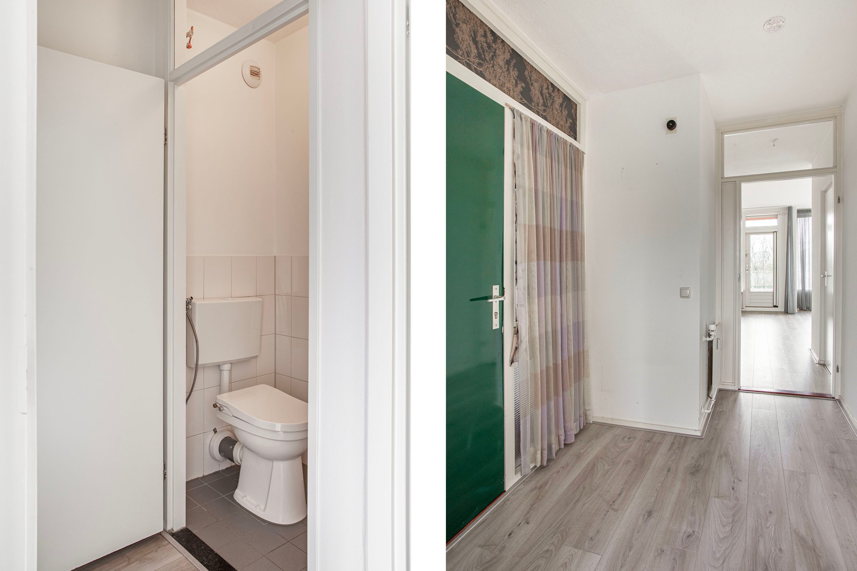 Vanuit de woonkamer is via een deur de hal bereikbaar, die toegang geeft tot het separate toilet. Dit is praktisch voor gasten, die zo geen gebruik hoeven te maken van de badkamer.
