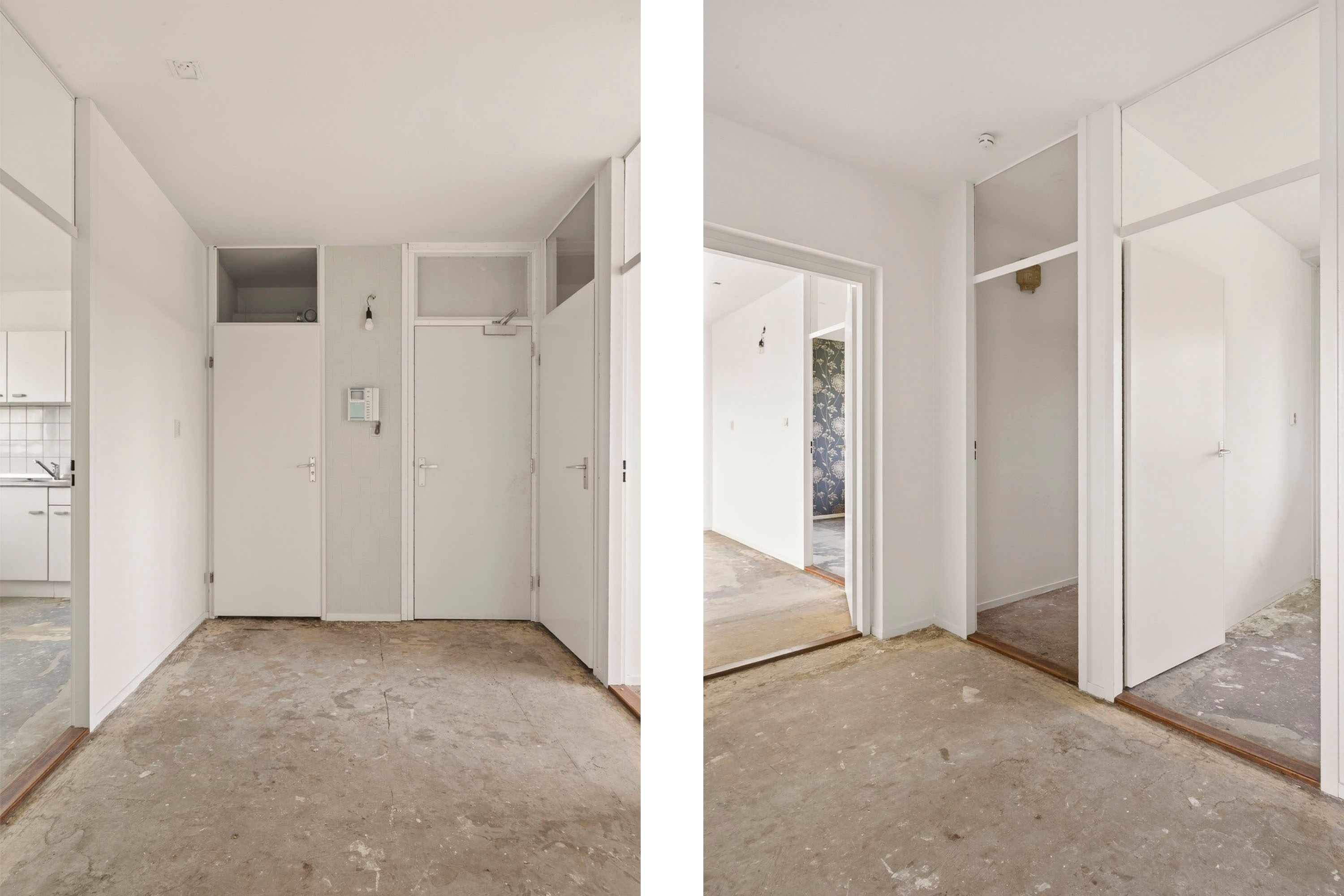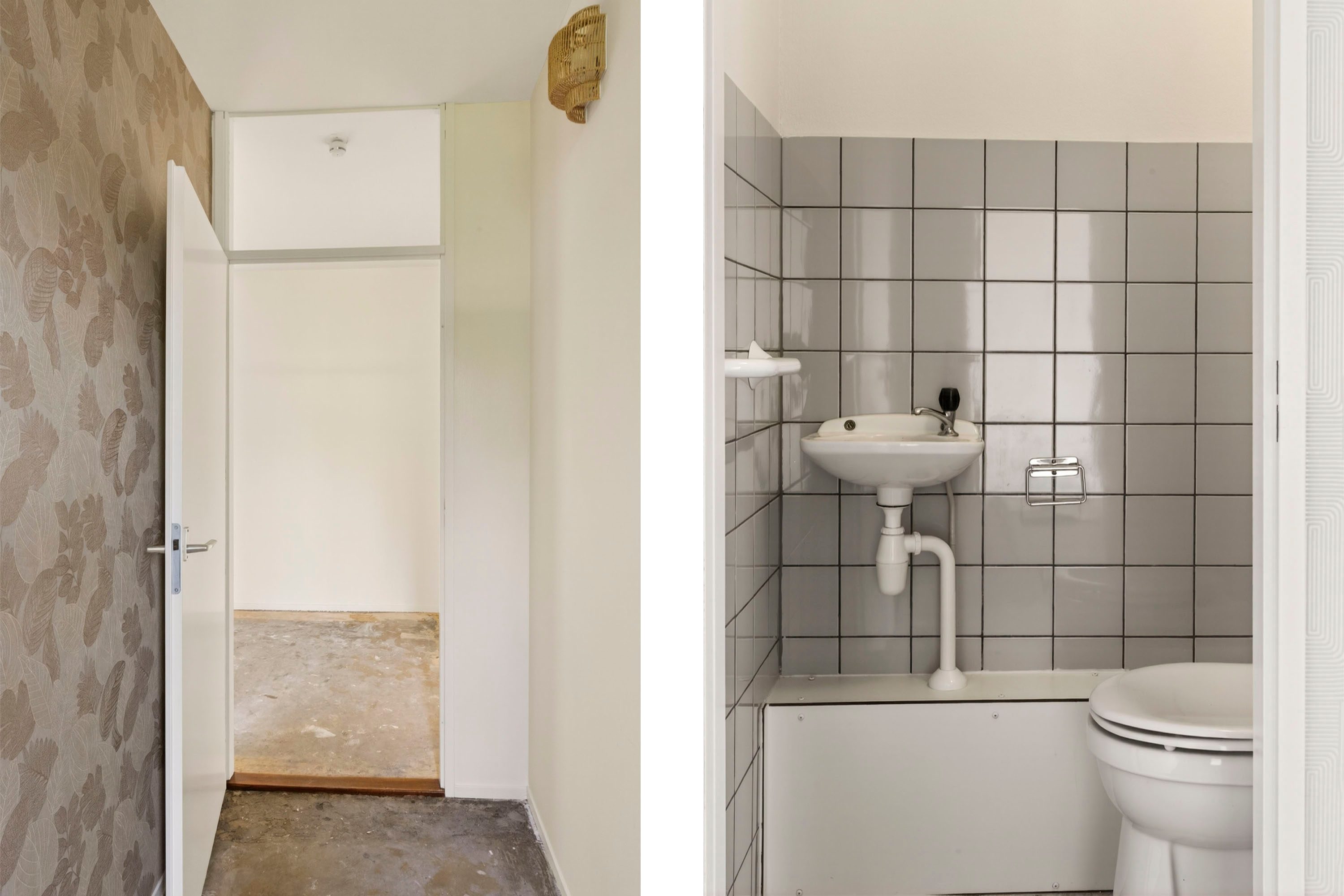 Vanuit de hal zijn de gesloten keuken, badkamer en het separate toilet bereikbaar.