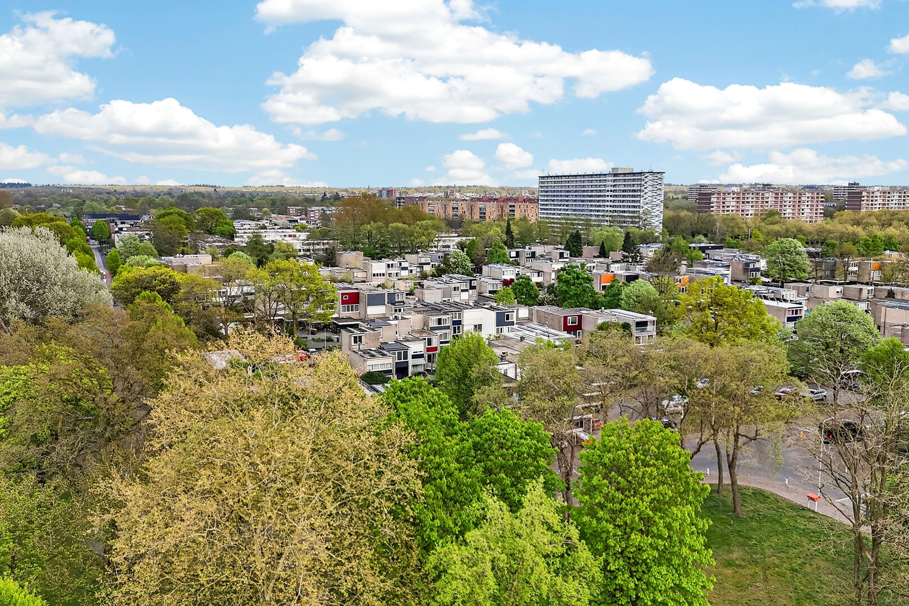 Bij binnenkomst kom je in de entree met een doorloop naar de hal, die toegang biedt tot meerdere vertrekken. De woonkamer van bijna 30 m² is ruim en licht, dankzij de grote raampartijen die zorgen voor een prettige natuurlijke lichtinval. Vanuit de woonkamer heb je direct toegang tot het royale dakterras van 28 m², gelegen op het zuidwesten. Hier kun je in alle rust genieten van het prachtige uitzicht en ontspannen in de zon.
