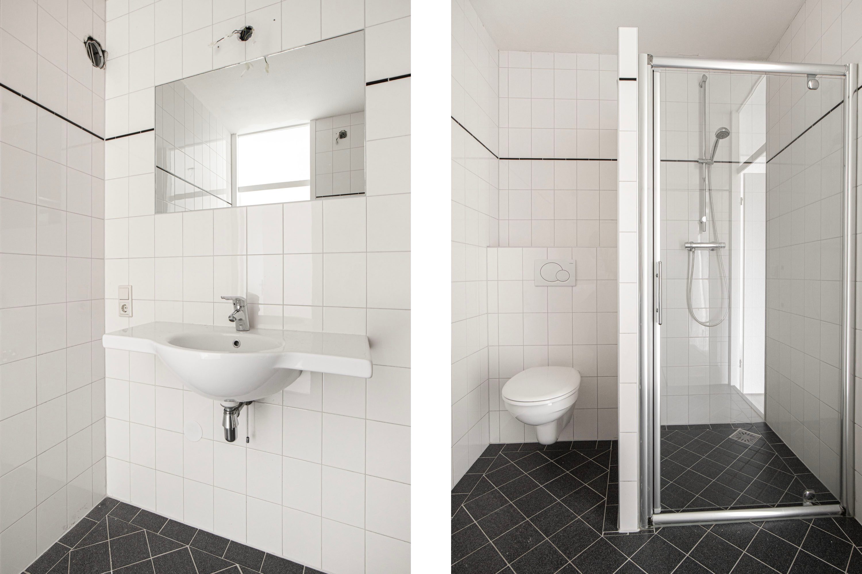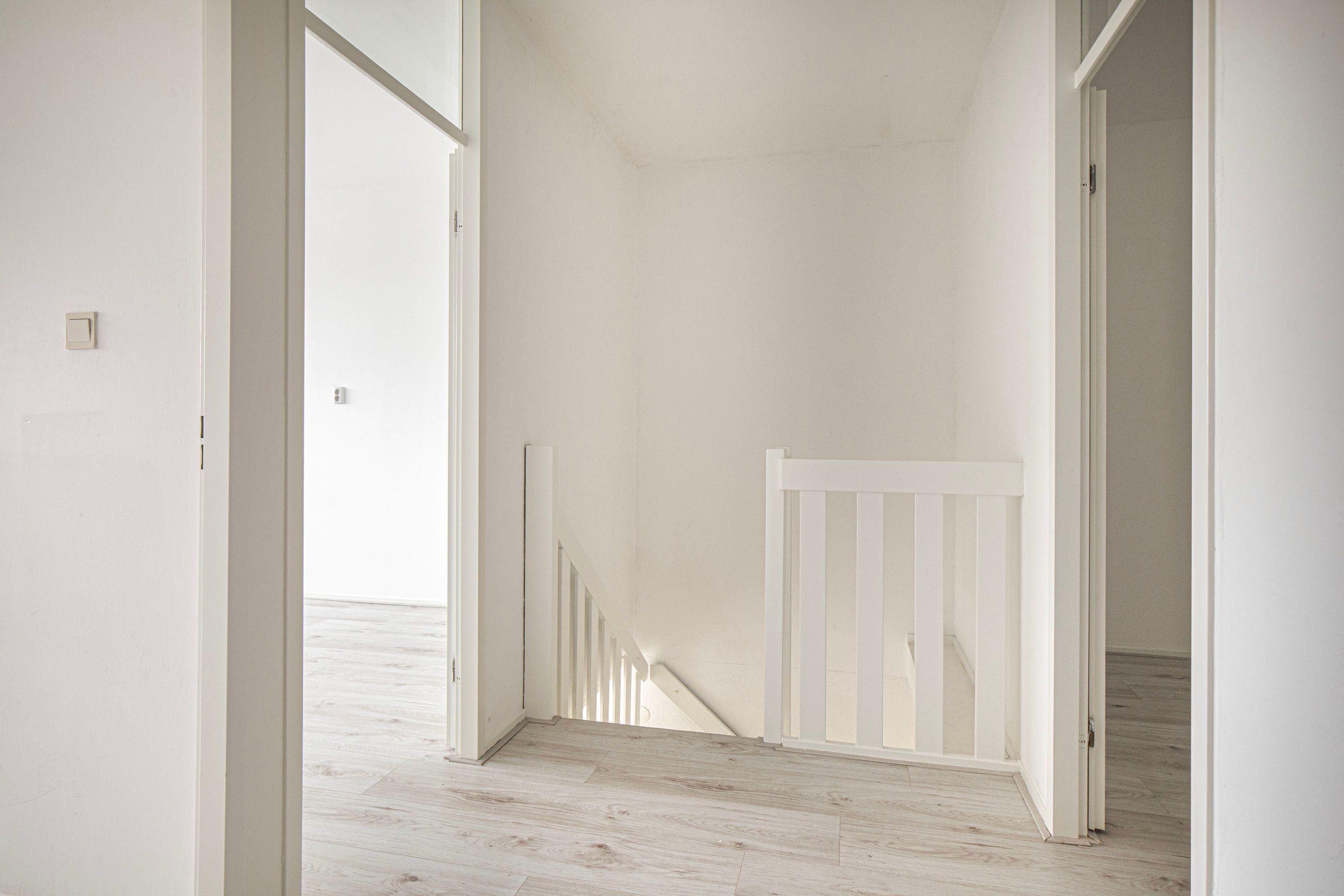 Op deze verdieping bevindt zich een ruime centrale hal (ca. 10 m²) die toegang biedt tot de volledig betegelde badkamer. De badkamer is keurig afgewerkt en beschikt over een wastafel, een nette douche en een tweede toilet. De royale hal is multifunctioneel en kan uitstekend dienen als werkplek. Daarnaast is er volop ruimte voor het plaatsen van kasten, ideaal voor extra opbergruimte.