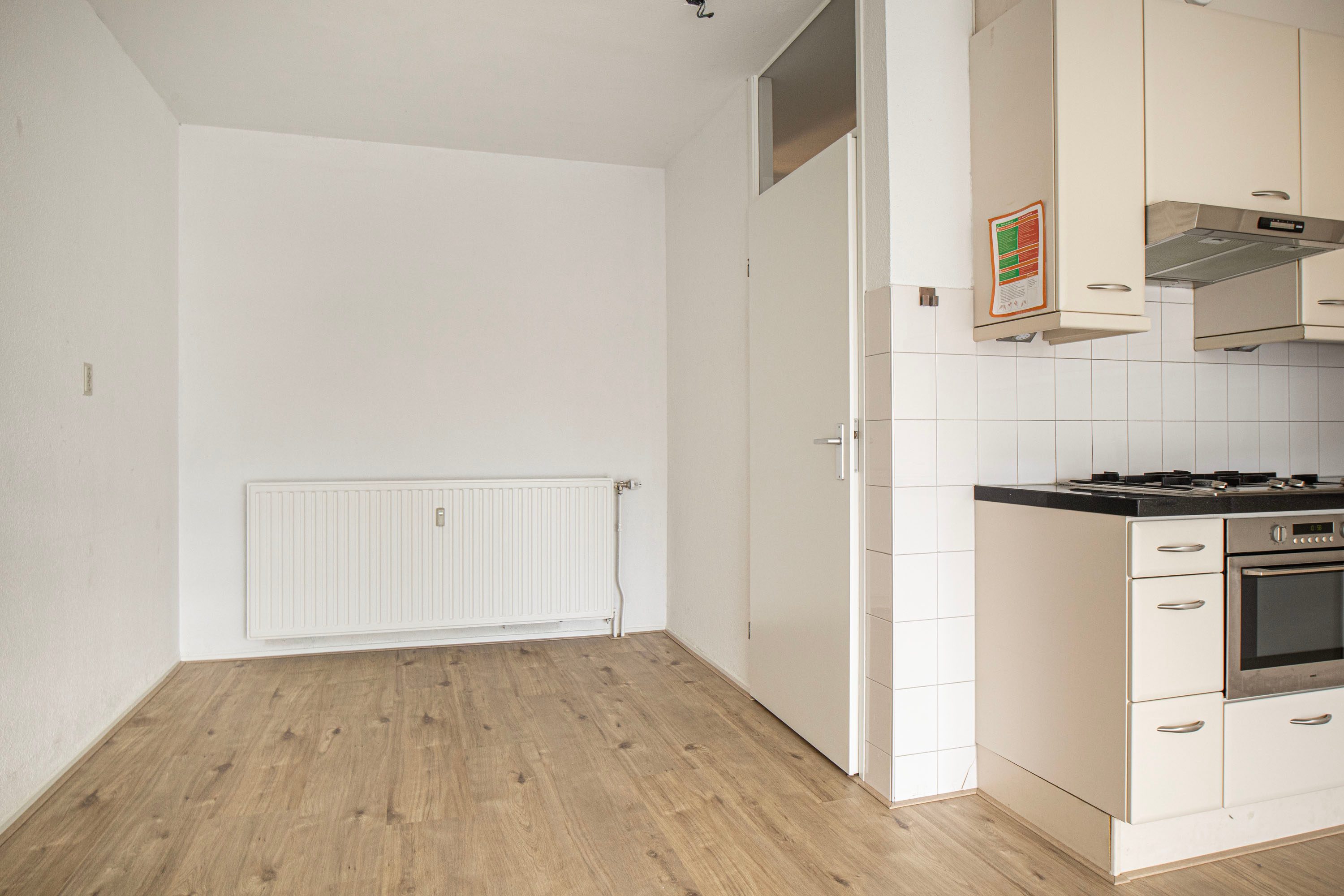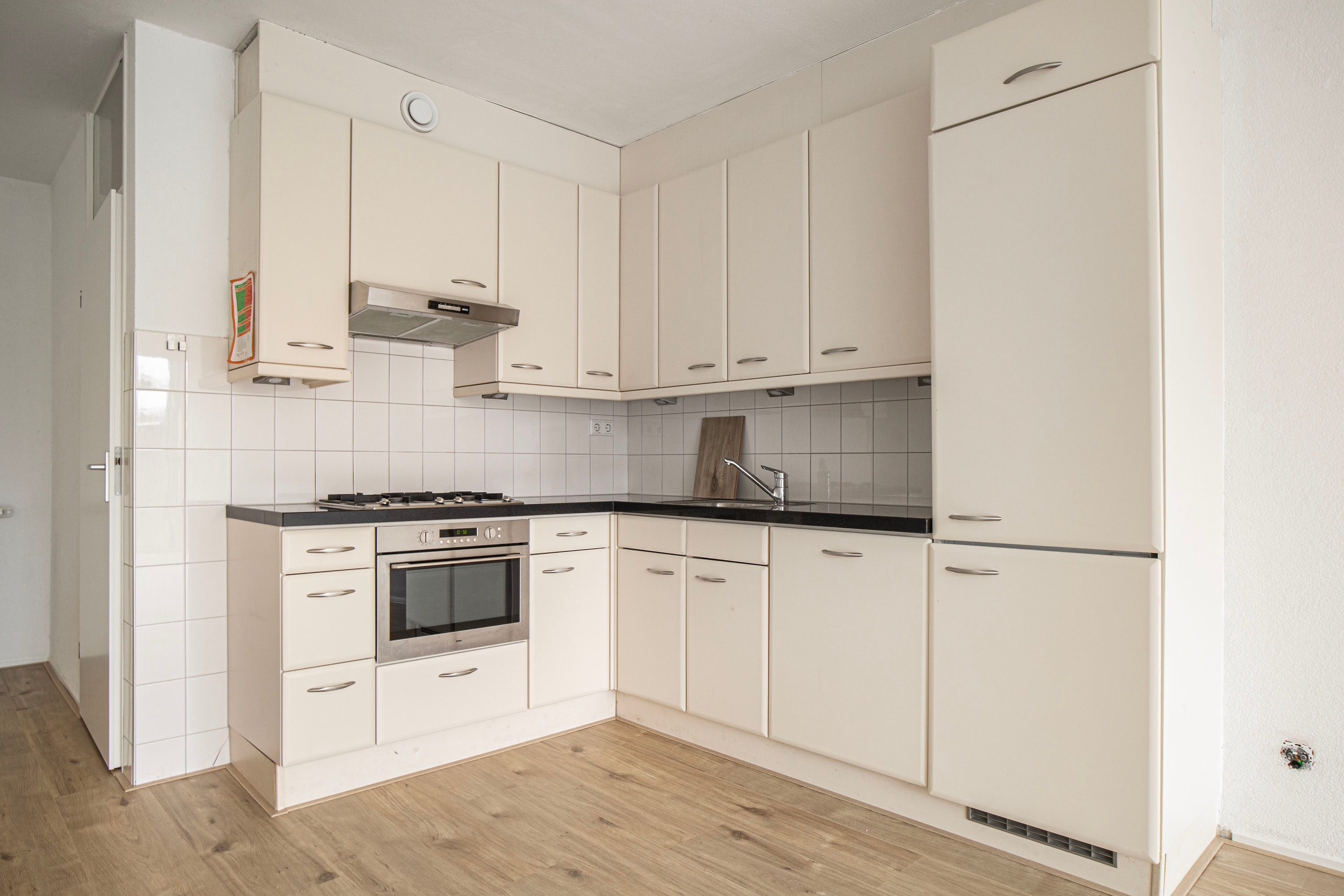 De halfopen keuken ligt centraal tussen de entree en de woonkamer. De keuken is praktisch ingericht en voorzien van een vierpits gasfornuis, afzuigkap, inbouwkoelkast met vriezer, vaatwasser en een combi-oven/magnetron.