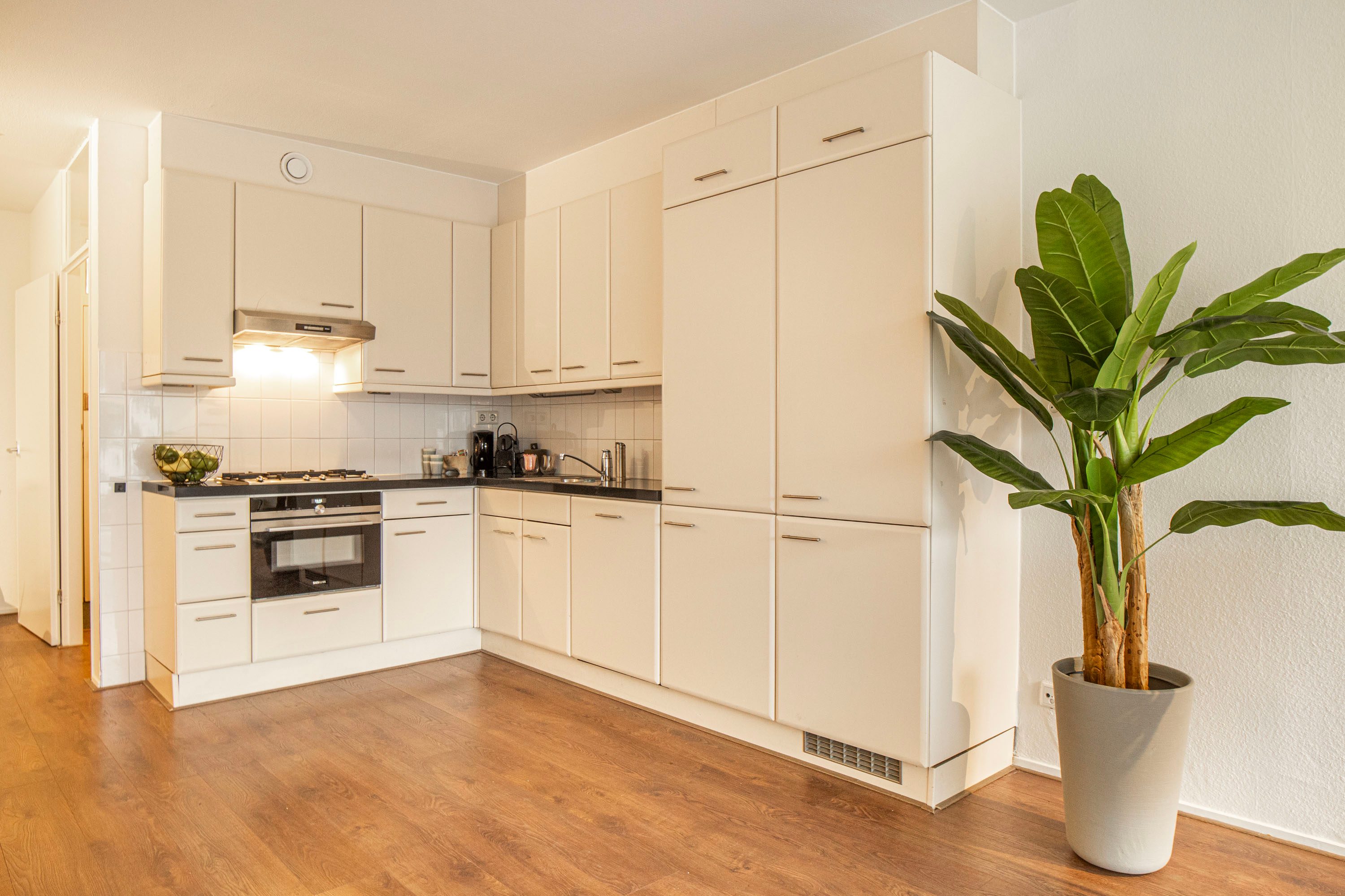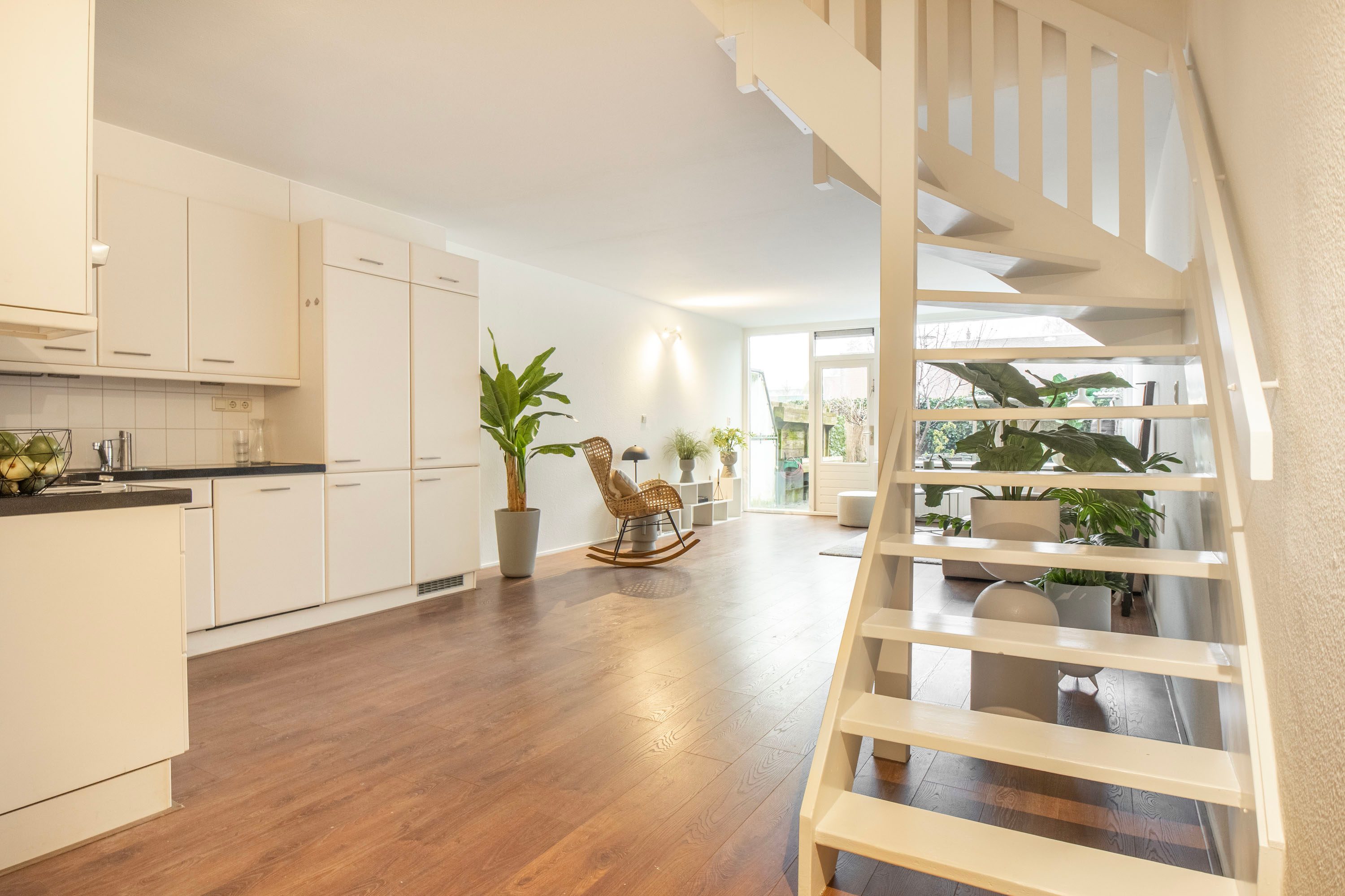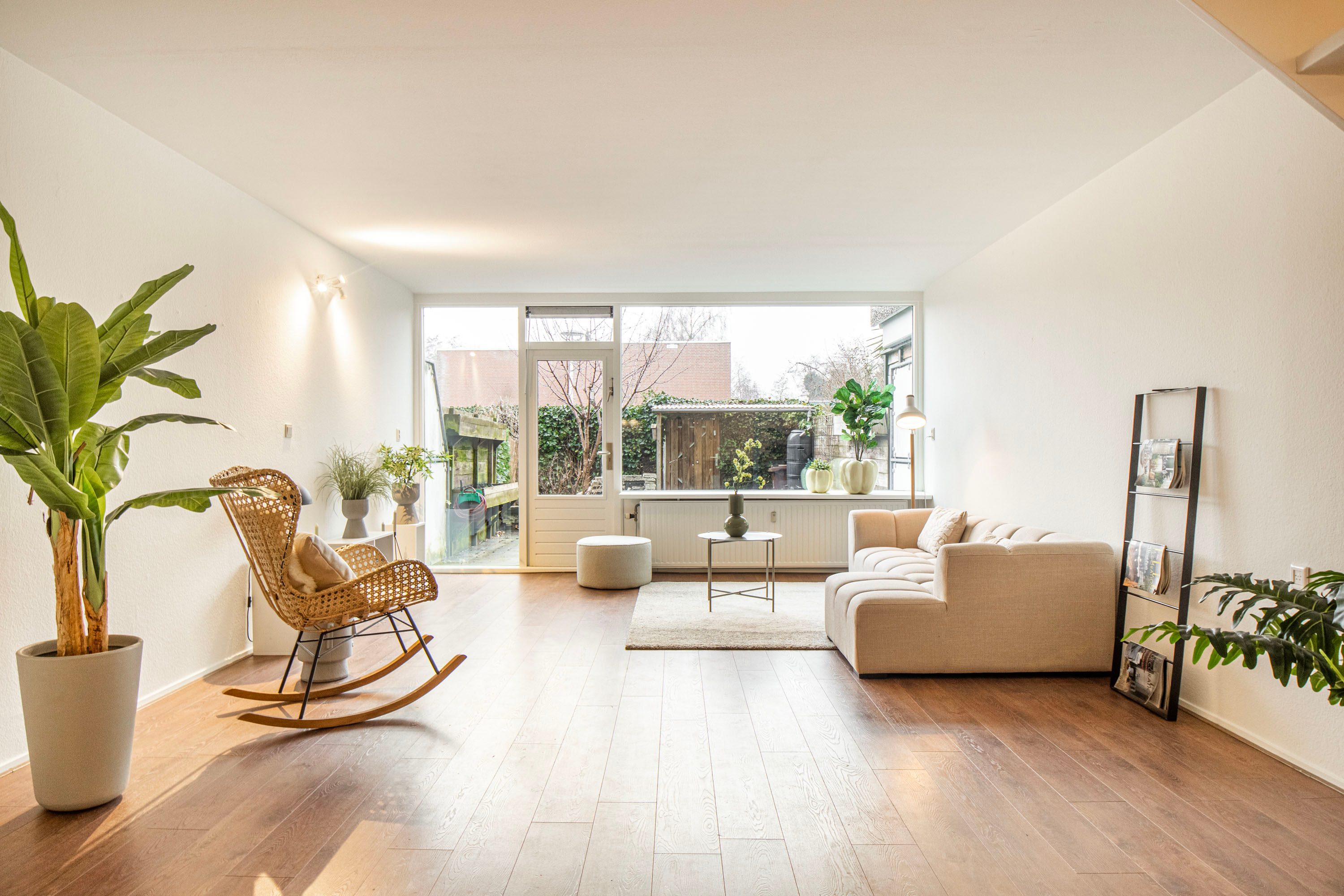 De lichte en ruime woonkamer is gesitueerd aan de westzijde en beschikt over grote raampartijen die zorgen voor een prettige hoeveelheid daglicht. Vanuit de woonkamer heb je zicht op, én directe toegang tot, de tuin van circa 42 m², gelegen op het zuidwesten. Dankzij de ligging kun je hier een groot deel van de dag van de zon genieten: een heerlijke plek om te ontspannen na een lange (werk)dag.