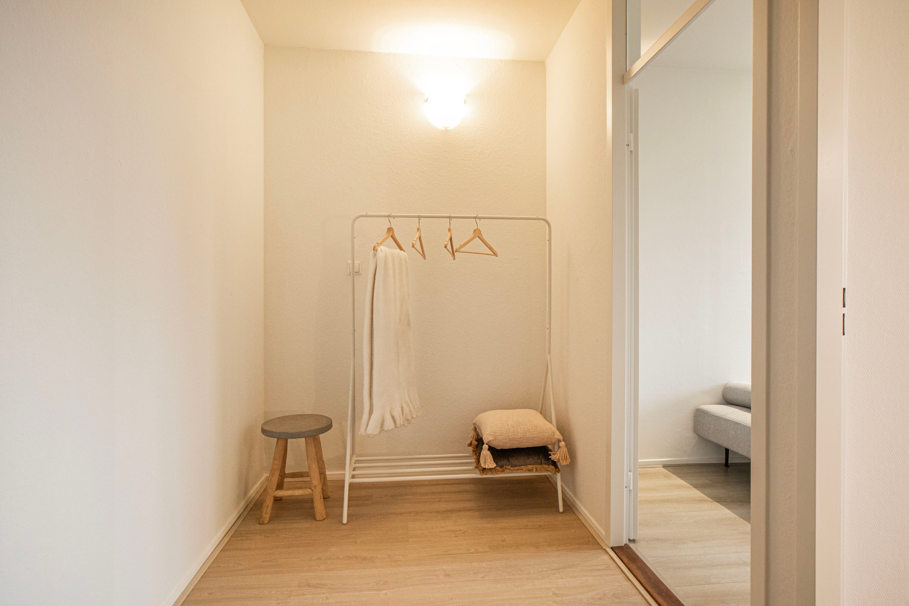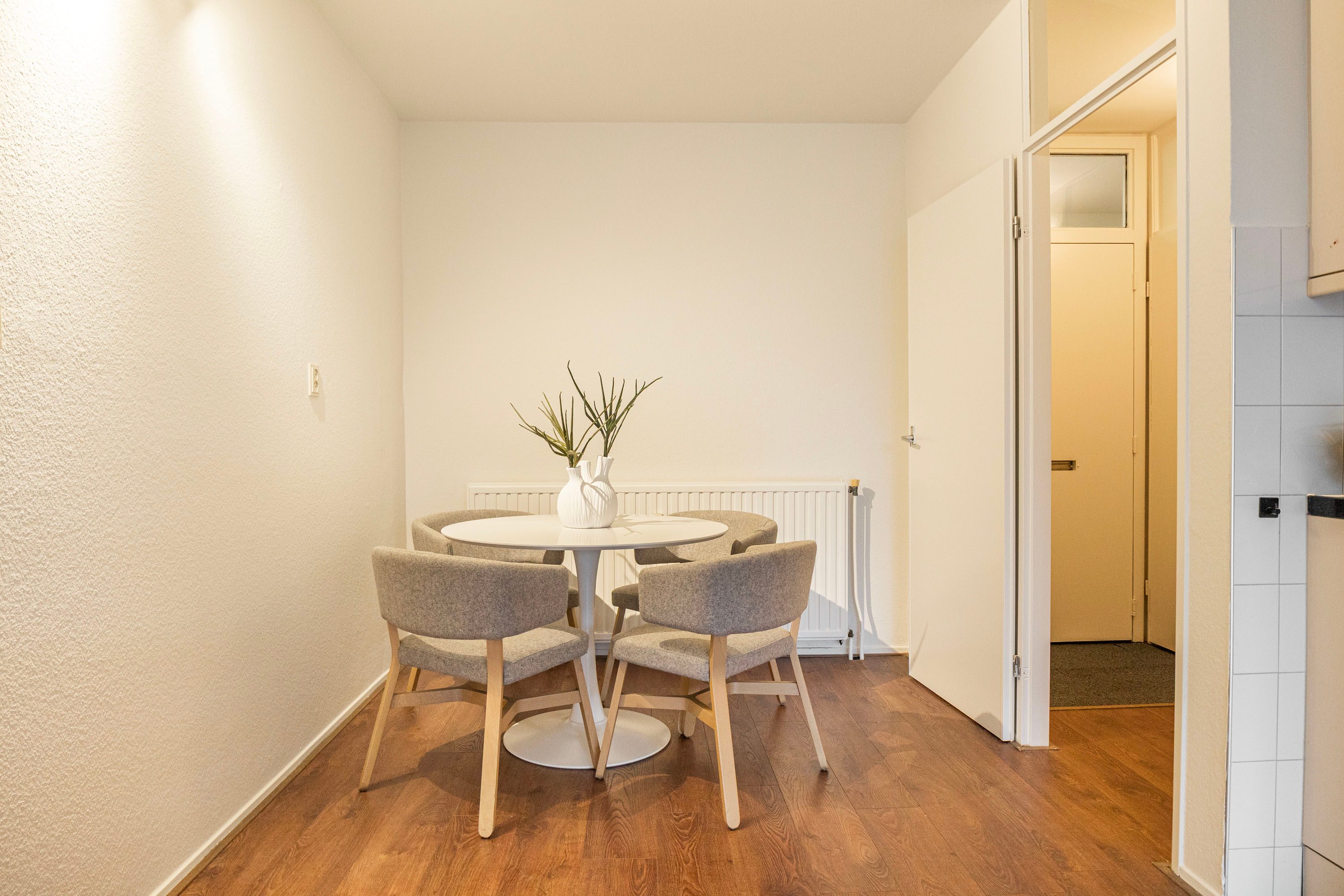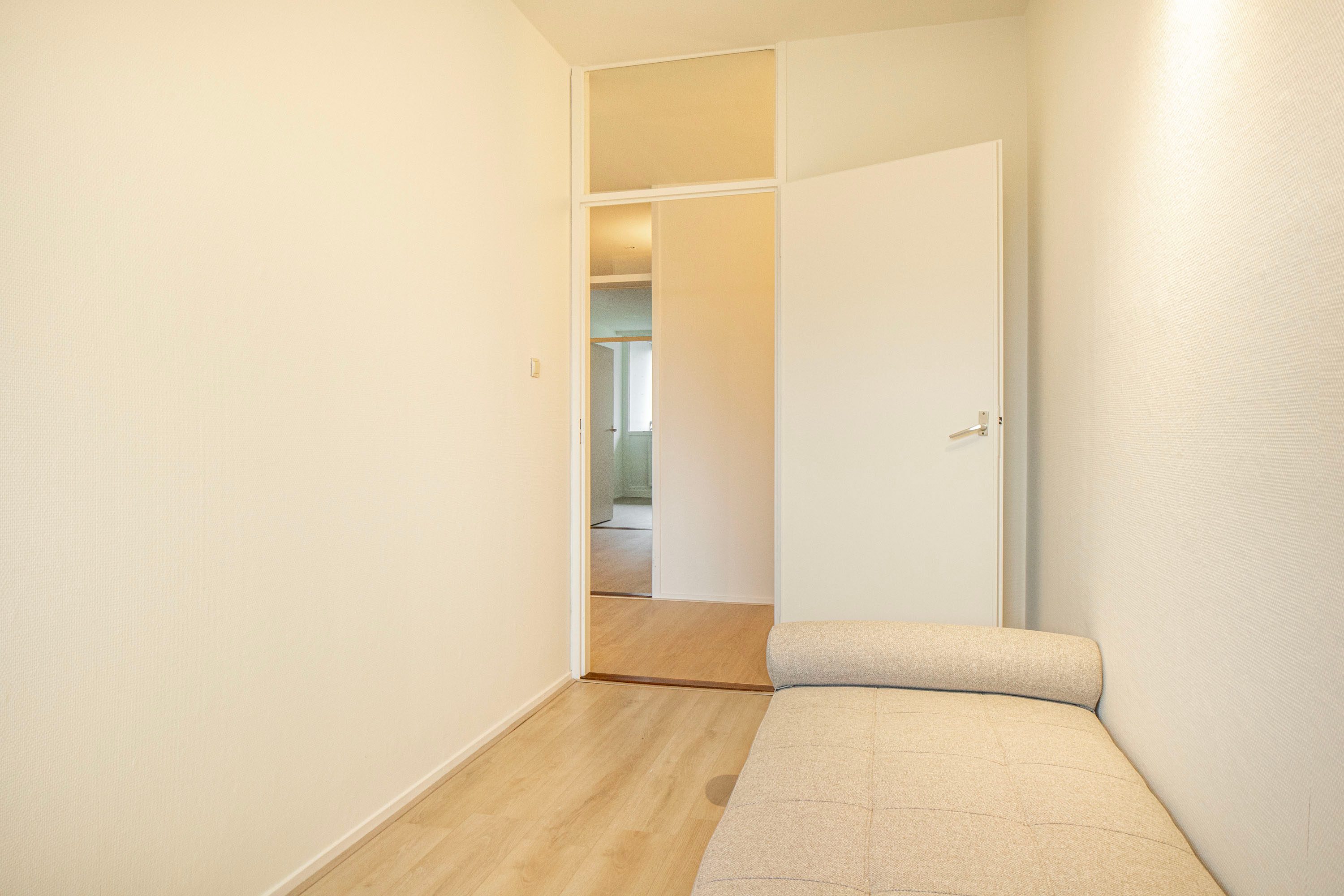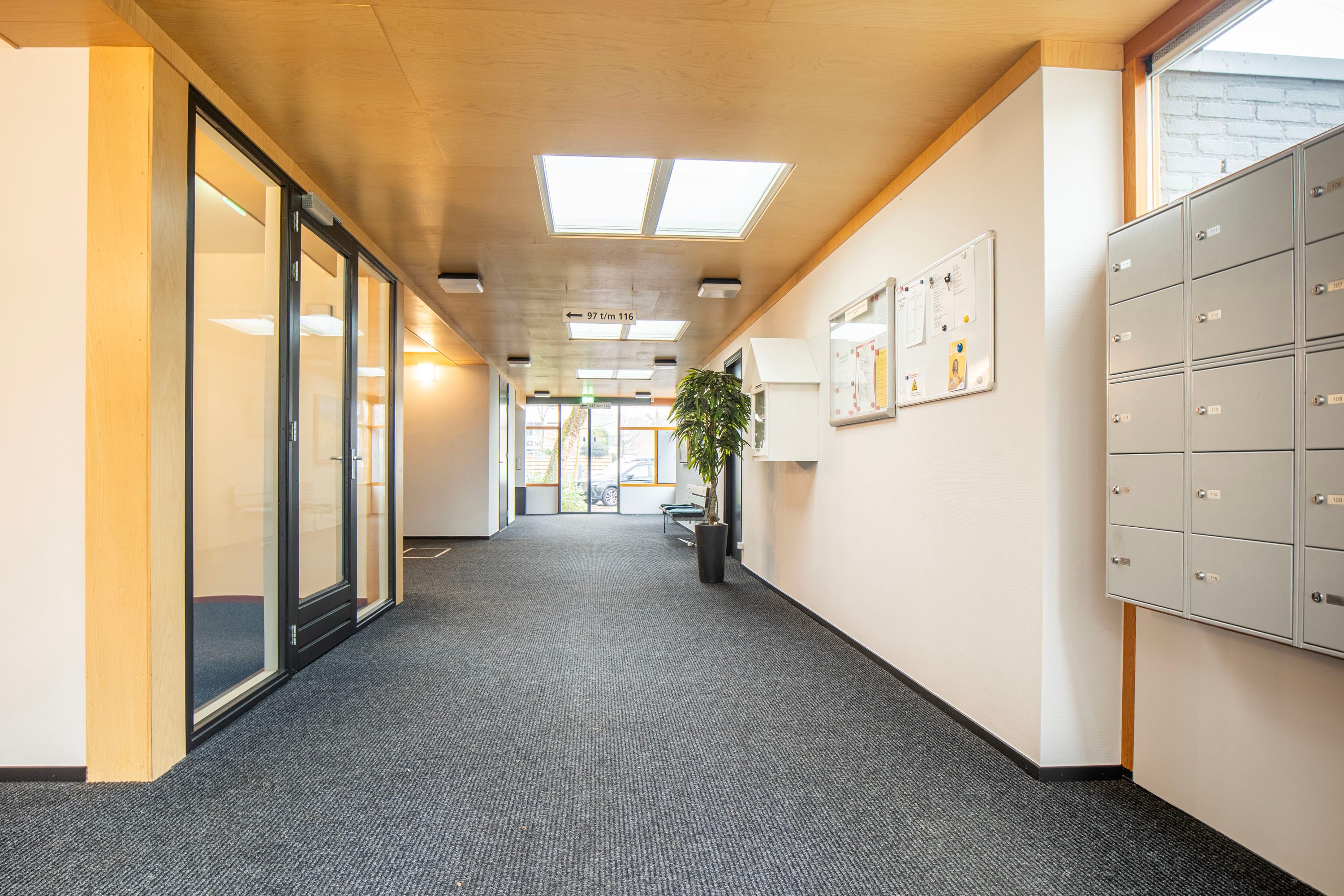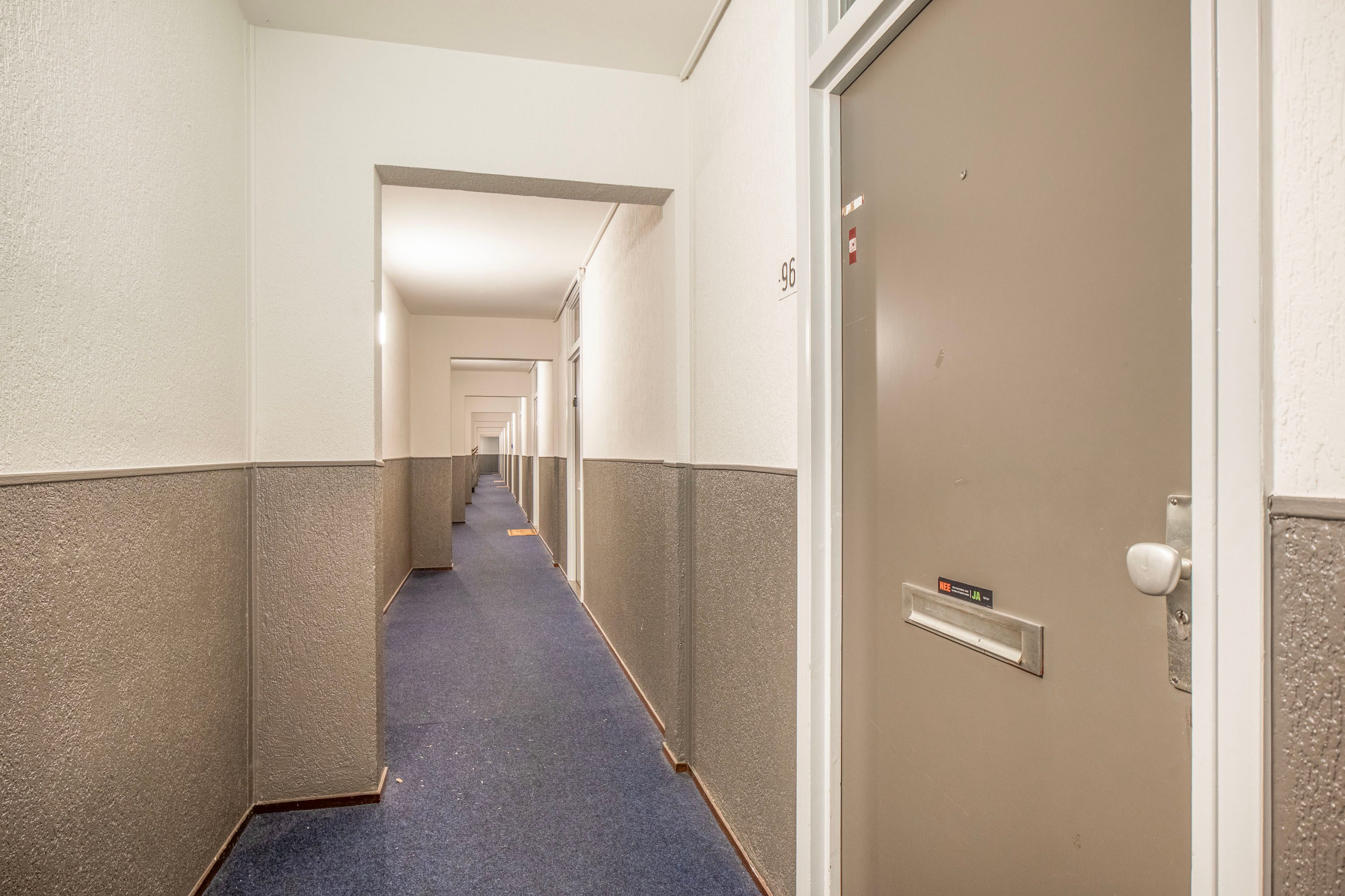 Je betreedt de woning via een centrale, afgesloten hal in het complex. In de hal van het appartement vind je de toegang tot de meterkast, toiletruimte en de overige vertrekken op deze verdieping.