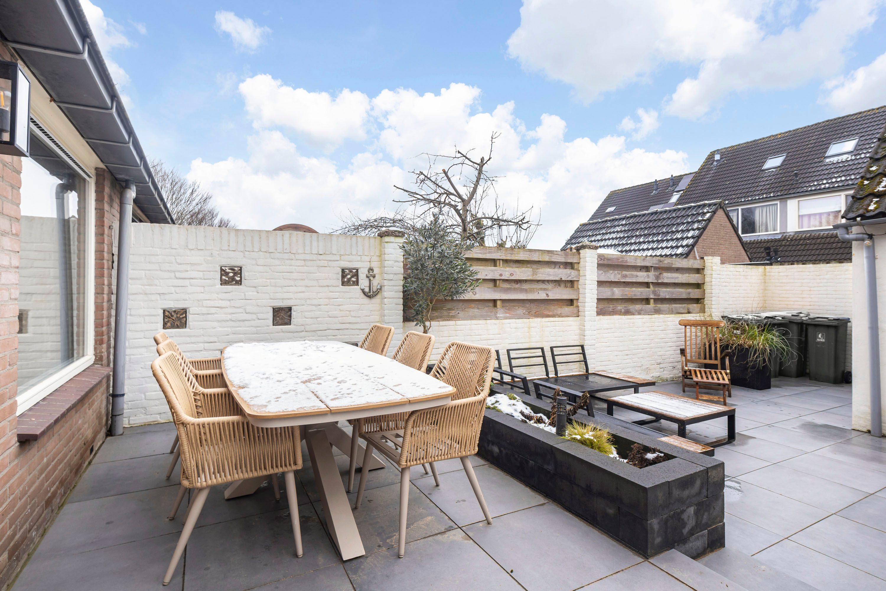 De achtertuin is gelegen op het westen, waardoor je hier heerlijk kunt genieten van de middag- en avondzon. De tuin is bereikbaar via een achterom en beschikt over een stenen berging met vliering, wat zorgt voor extra opslagruimte. Er zijn meerdere zithoeken gecreëerd, waardoor je altijd een fijne plek in de zon of schaduw kunt vinden.