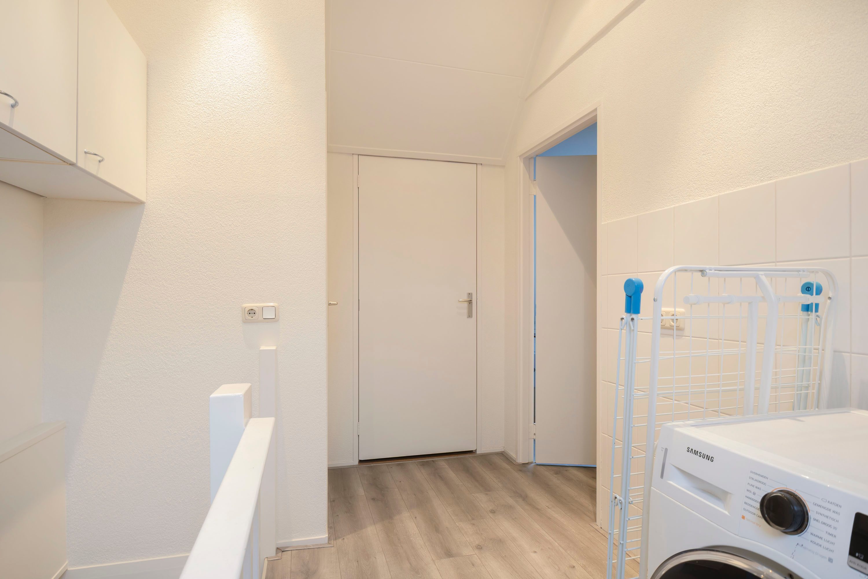De tweede verdieping beschikt over een vierde slaapkamer van circa 10 m², voorzien van een dakraam. Op de overloop bevinden zich de wasmachineaansluiting en de CV-ketel. Achter de knieschotten is volop bergruimte aanwezig, ideaal voor spullen die je niet dagelijks nodig hebt.