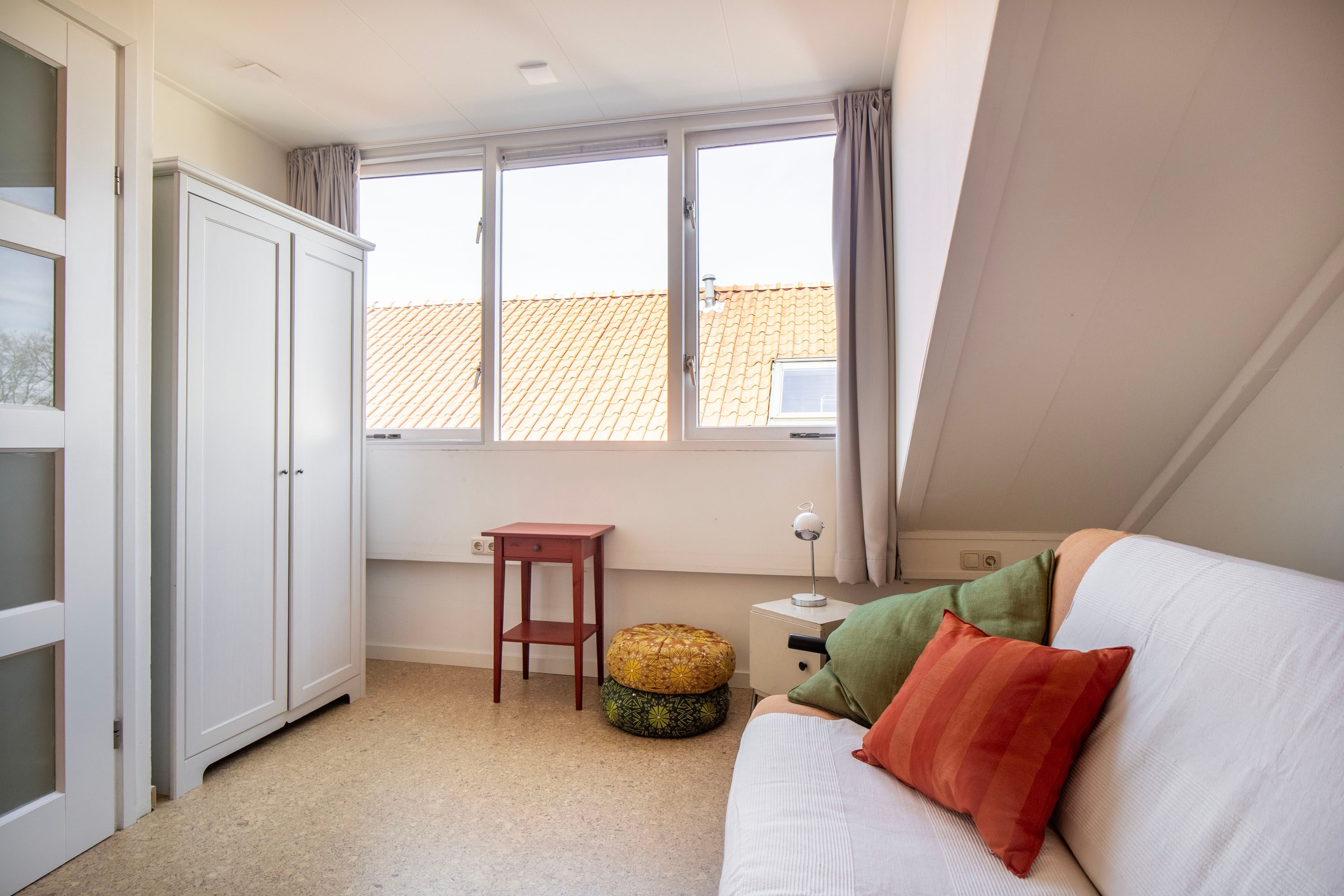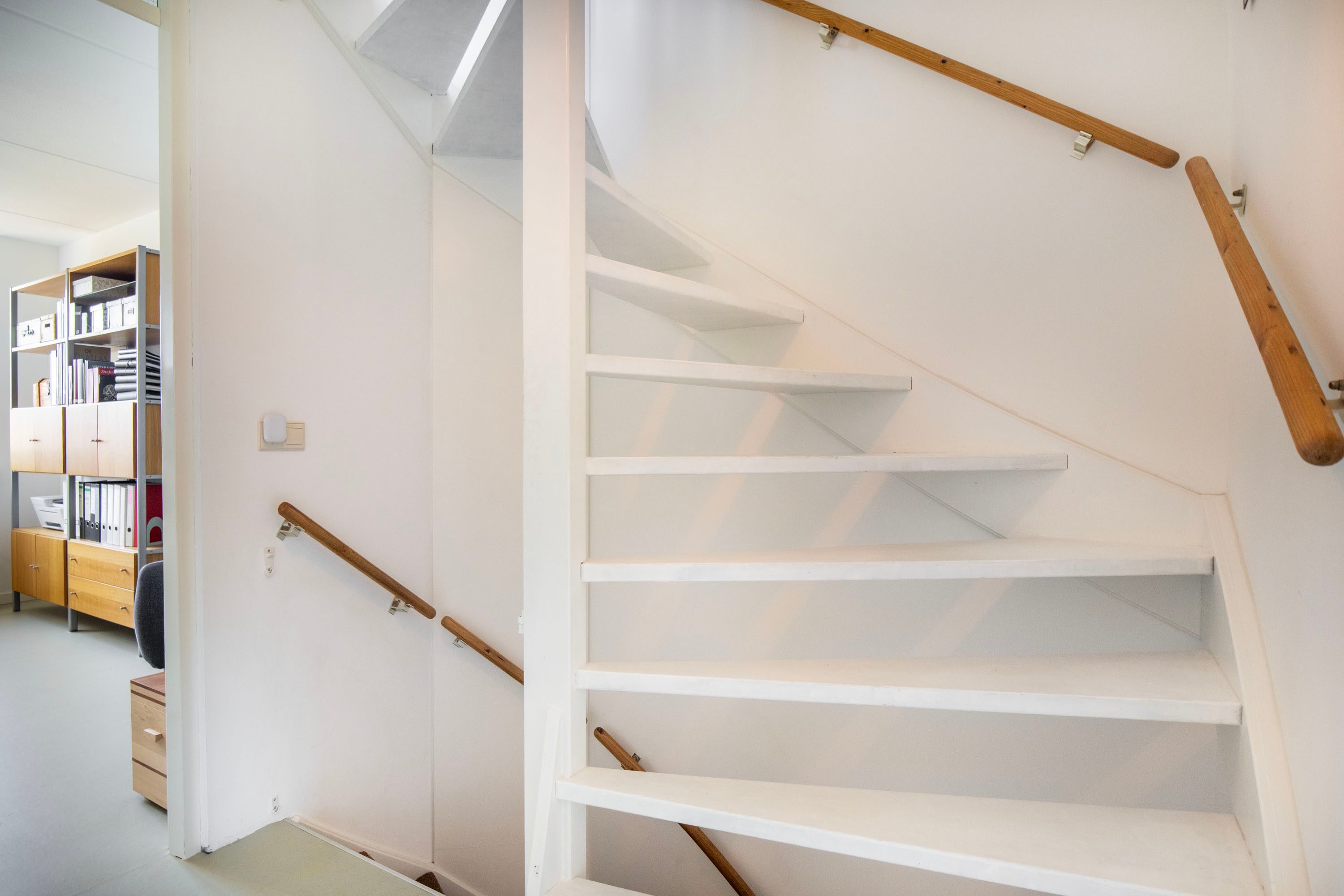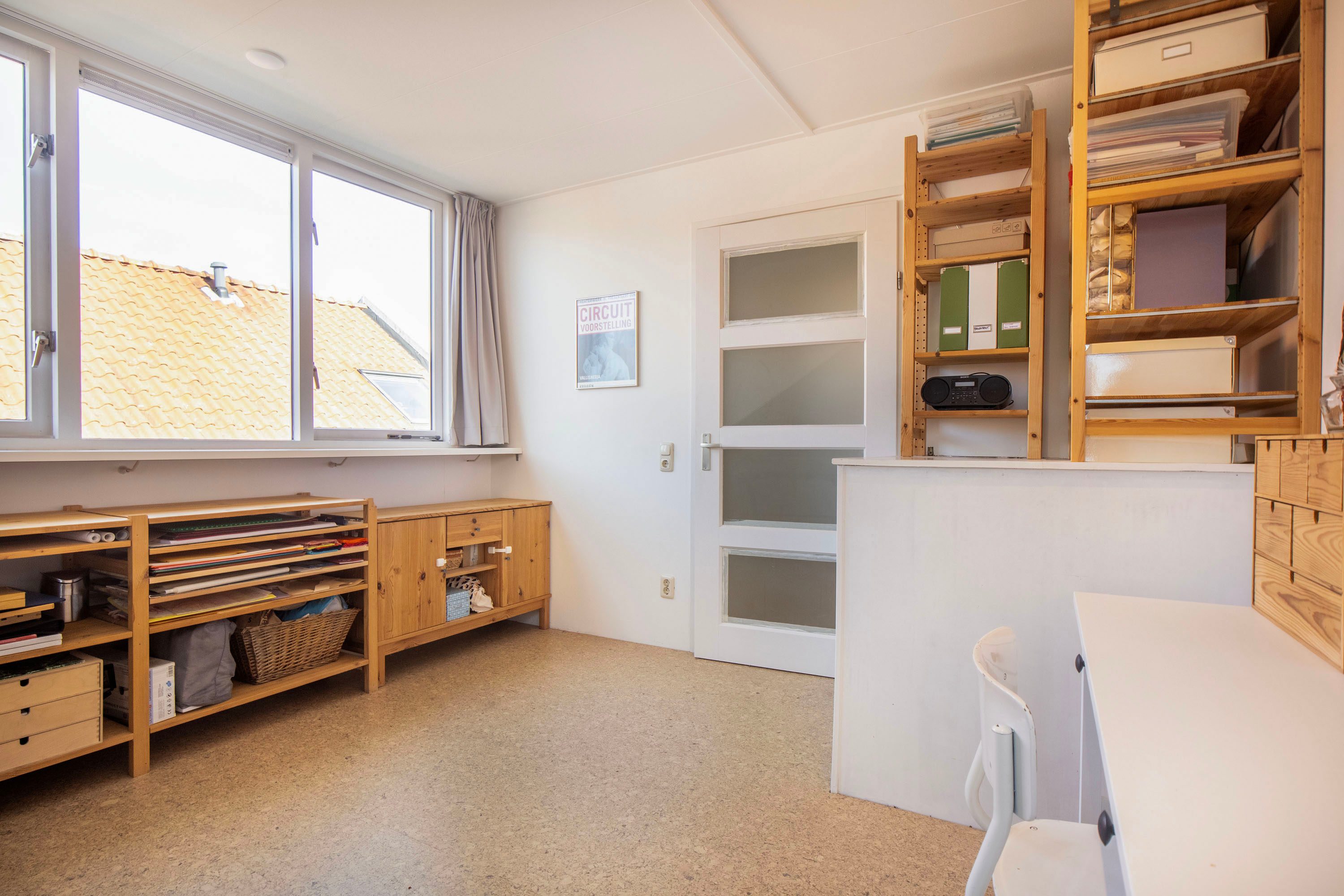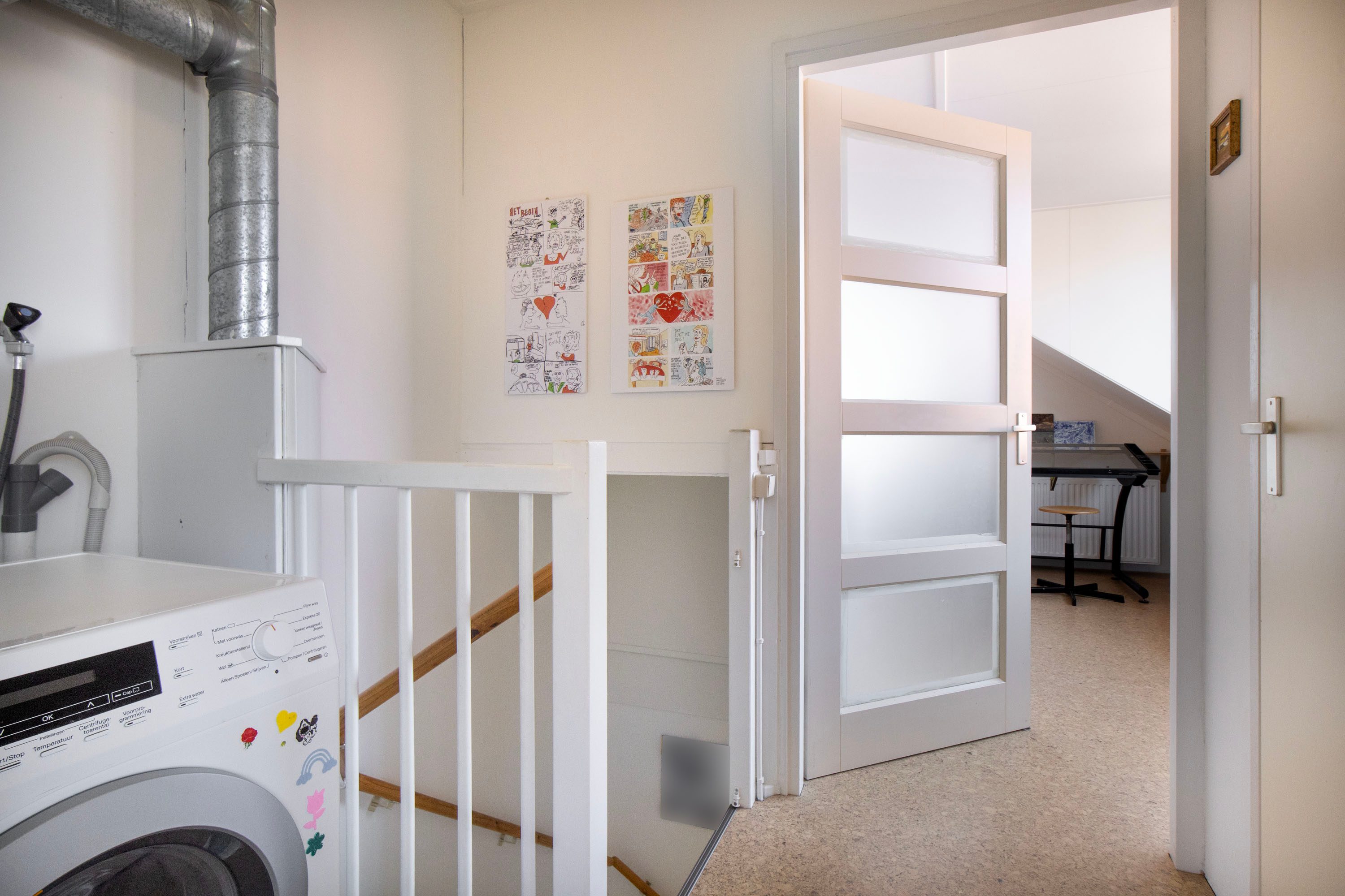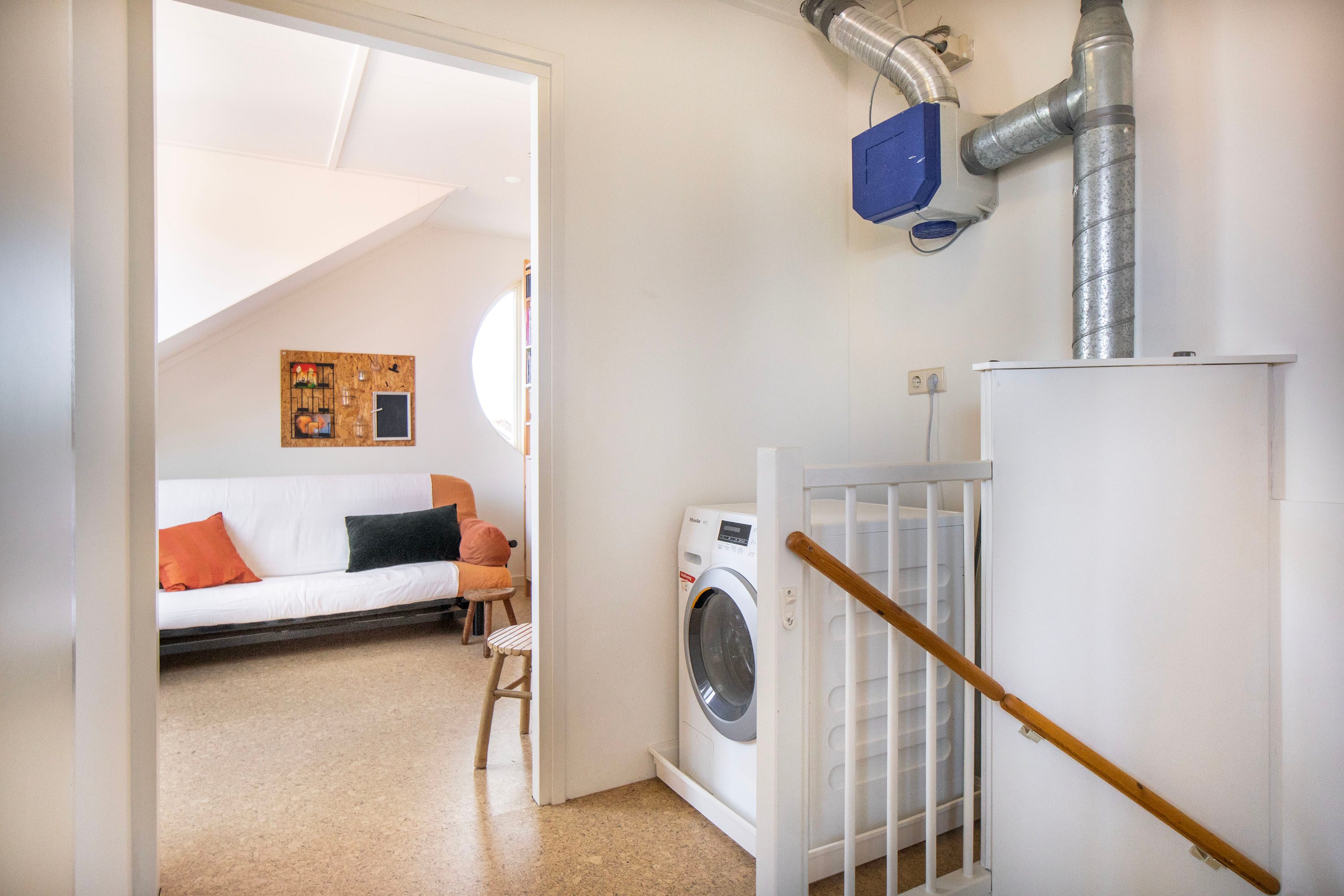 Op de overloop vind je de aansluiting voor de wasmachine en een vaste kast, ideaal voor het opbergen van bijvoorbeeld seizoensspullen of huishoudelijke benodigdheden. Hierdoor blijft de verdieping praktisch en overzichtelijk ingedeeld.