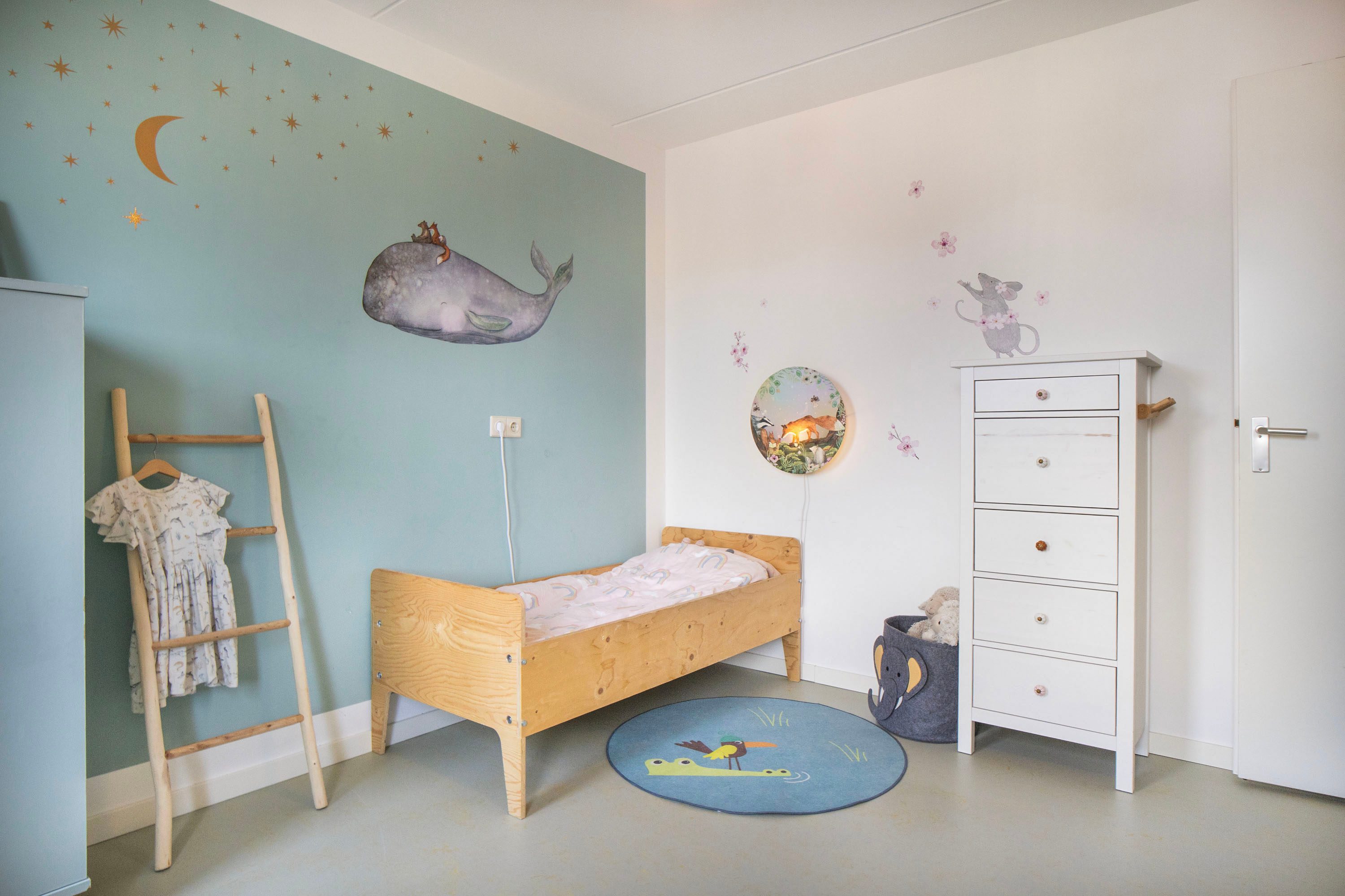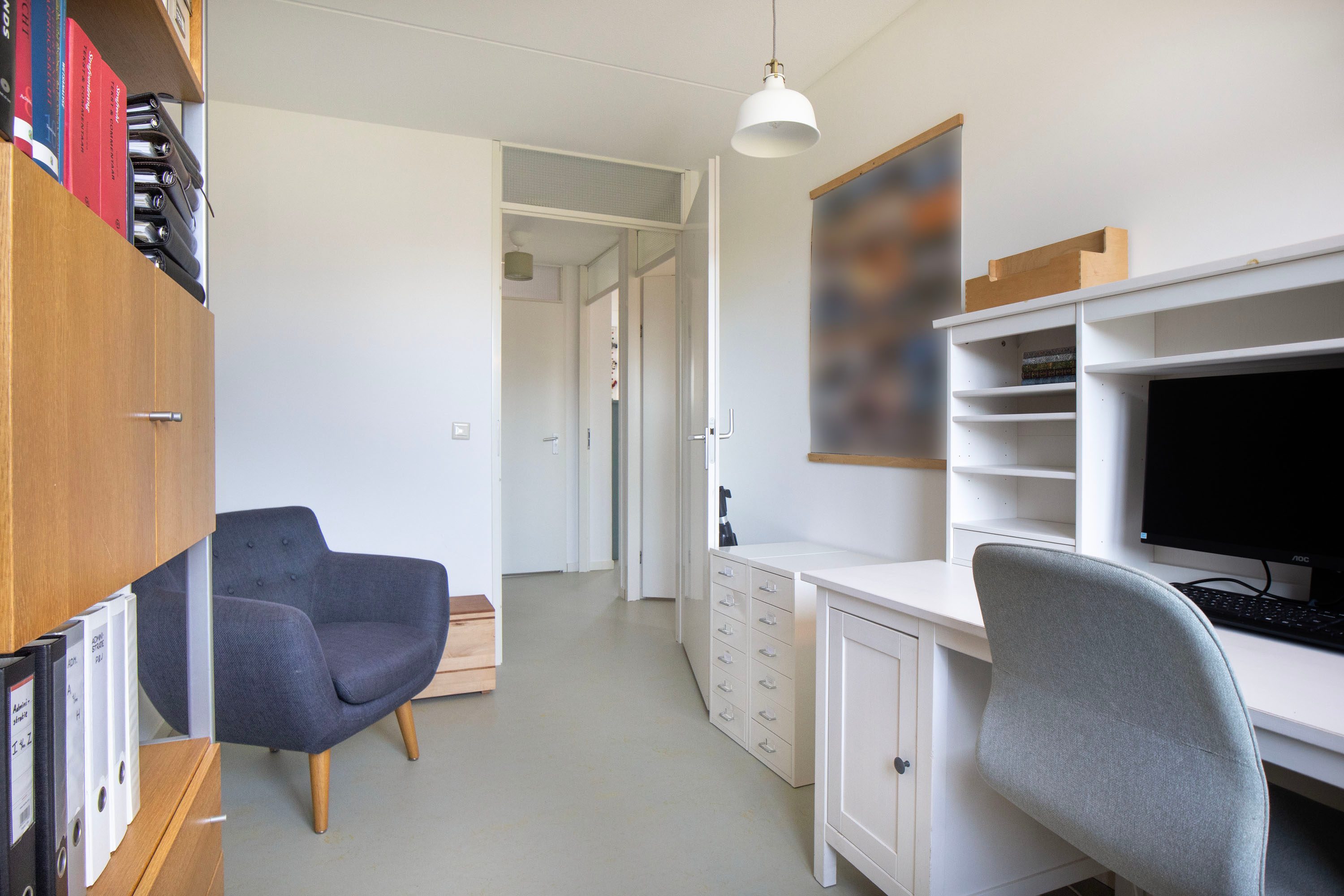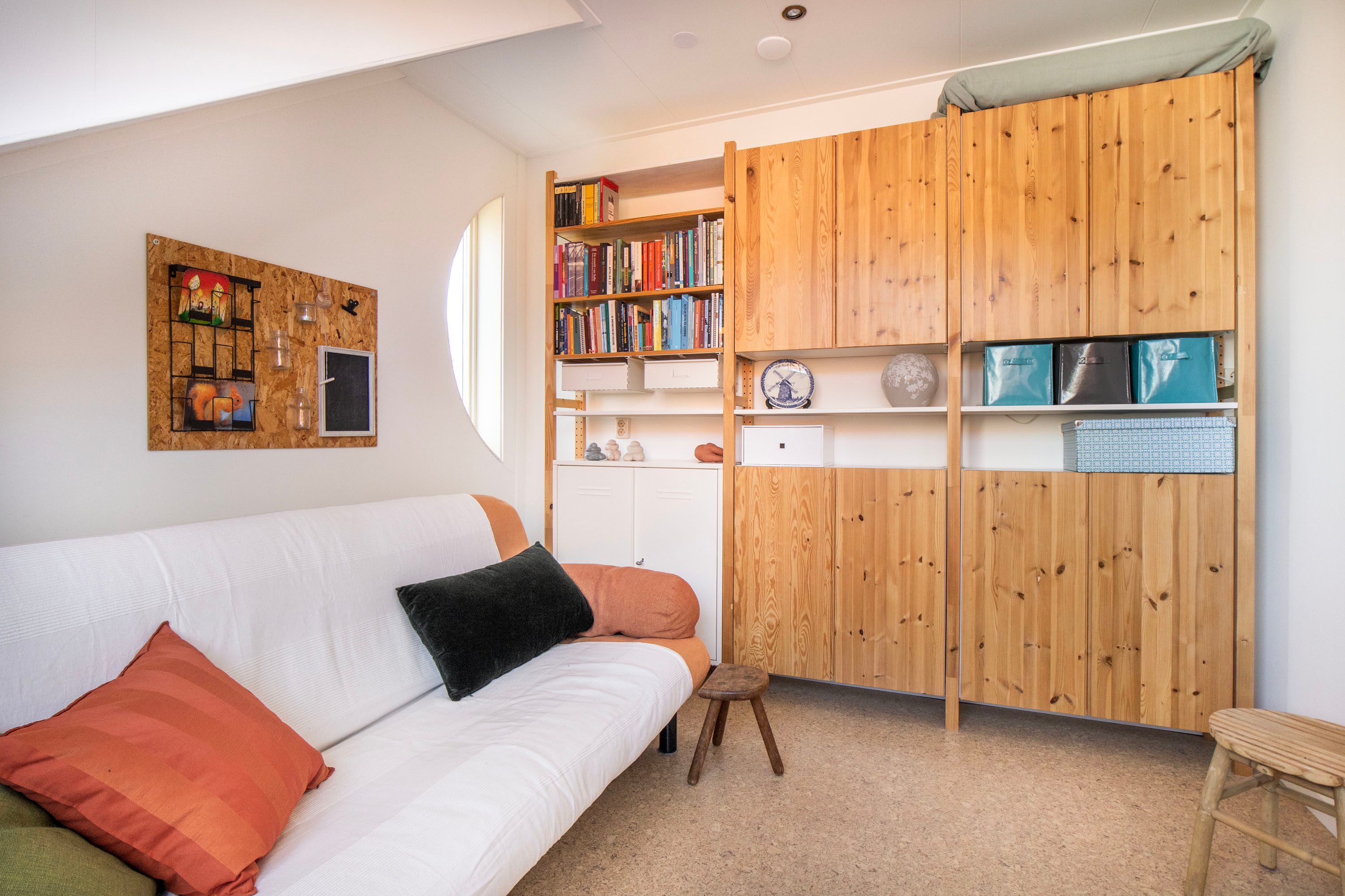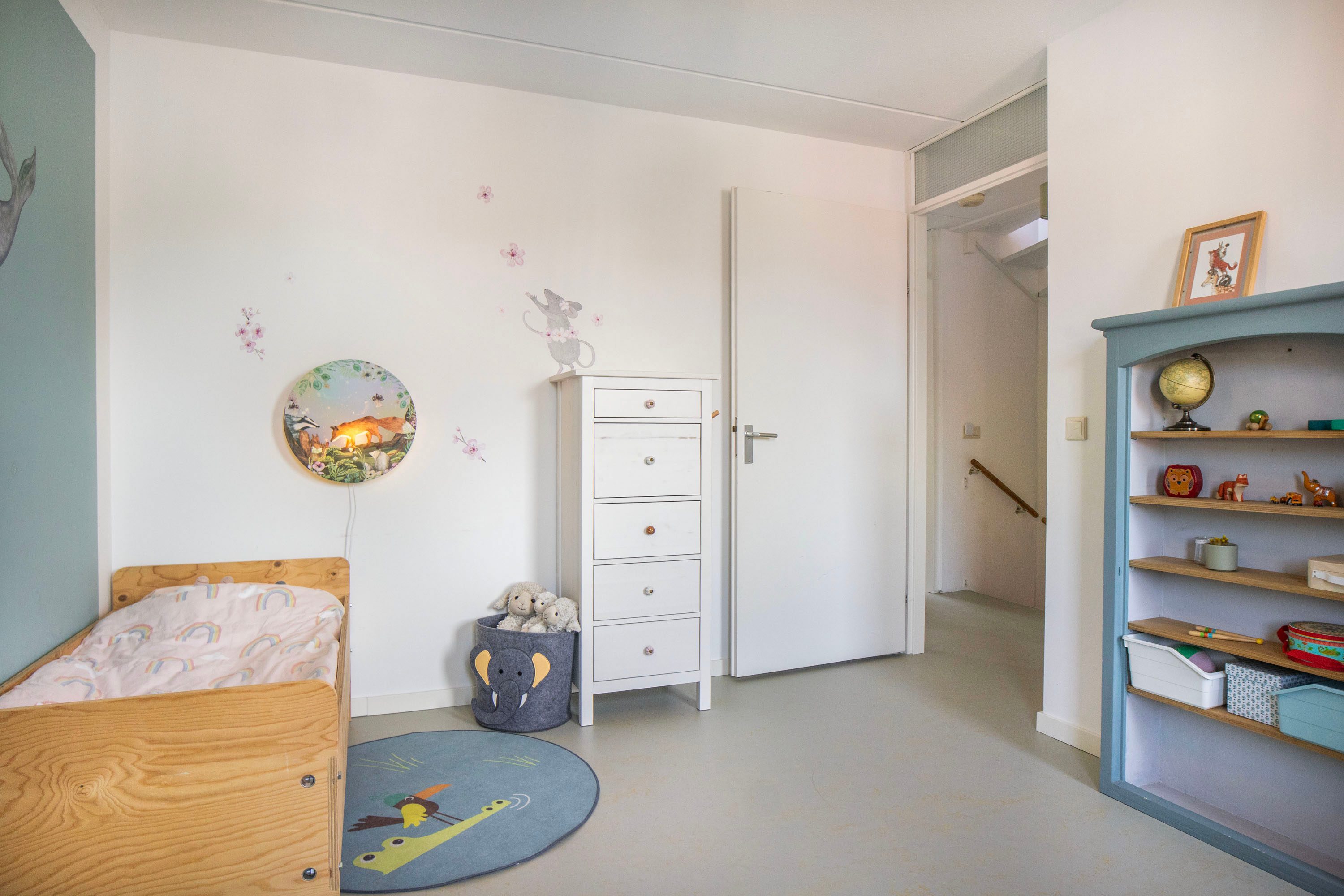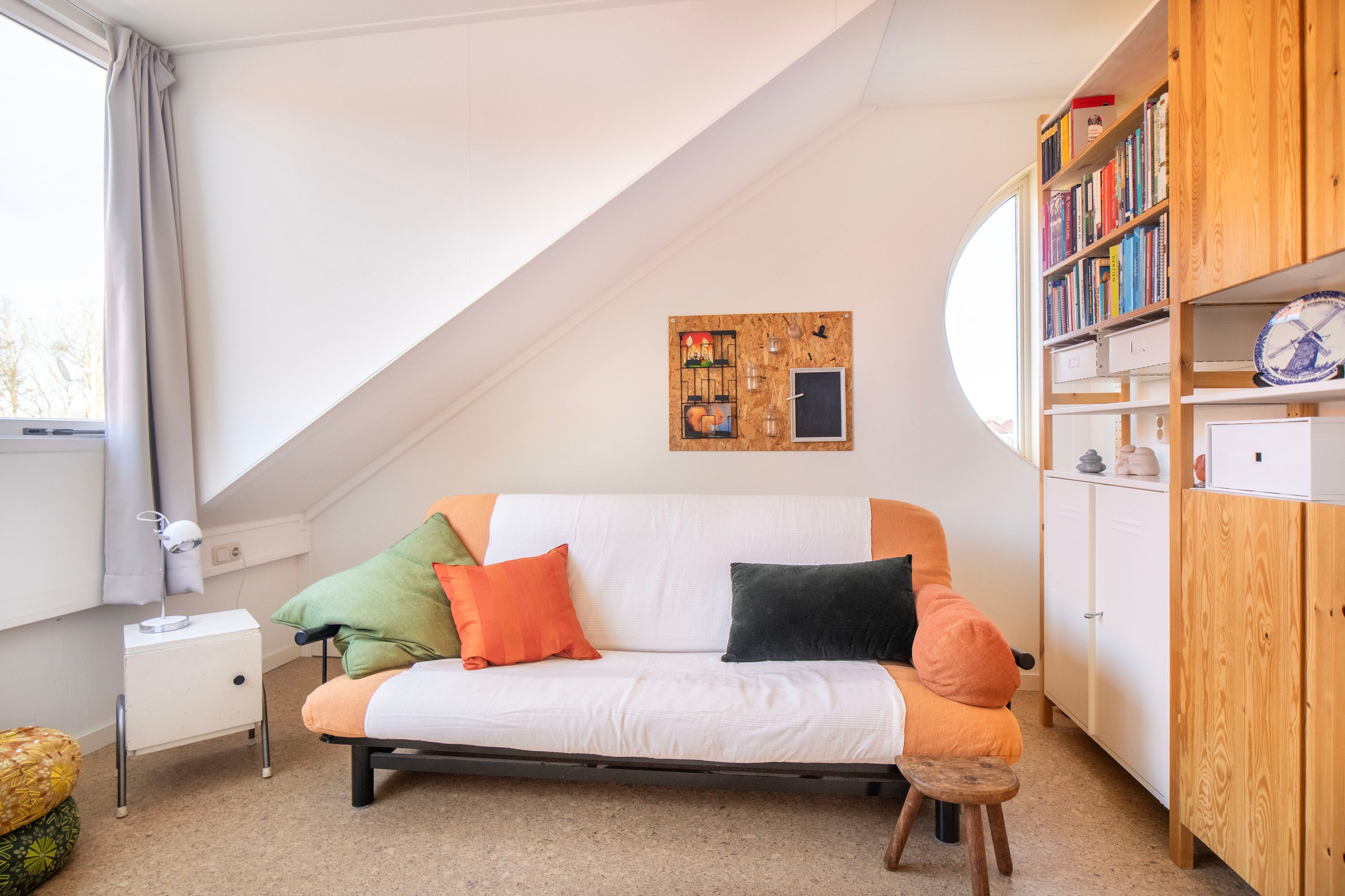 Op de overloop vind je de aansluiting voor de wasmachine en een vaste kast, ideaal voor het opbergen van bijvoorbeeld seizoensspullen of huishoudelijke benodigdheden. Hierdoor blijft de verdieping praktisch en overzichtelijk ingedeeld.