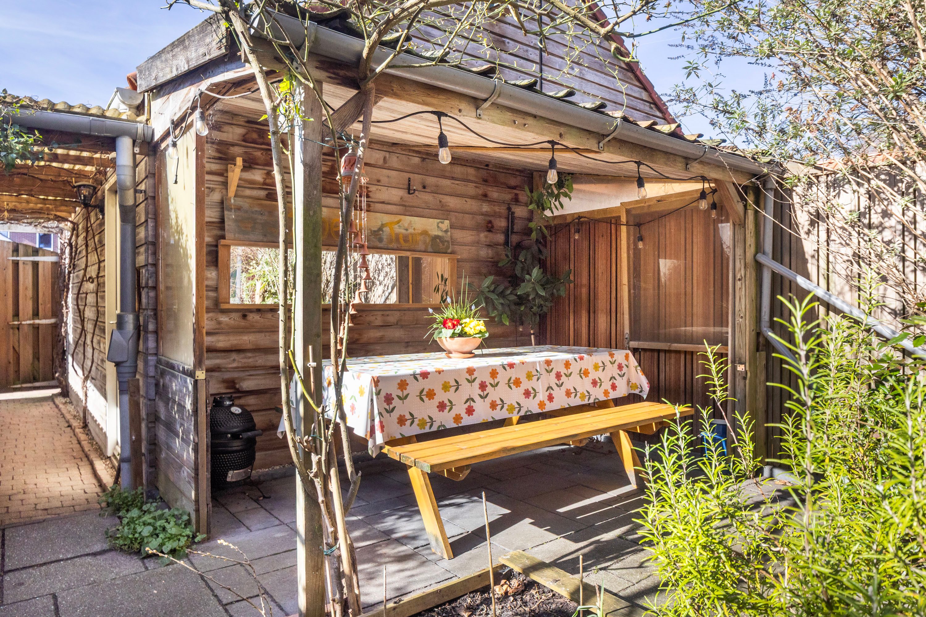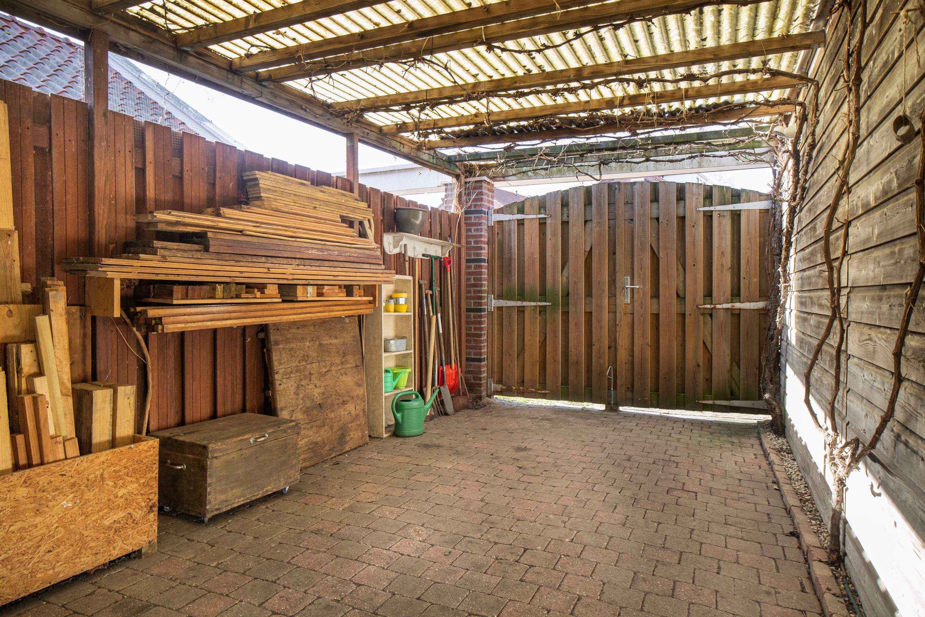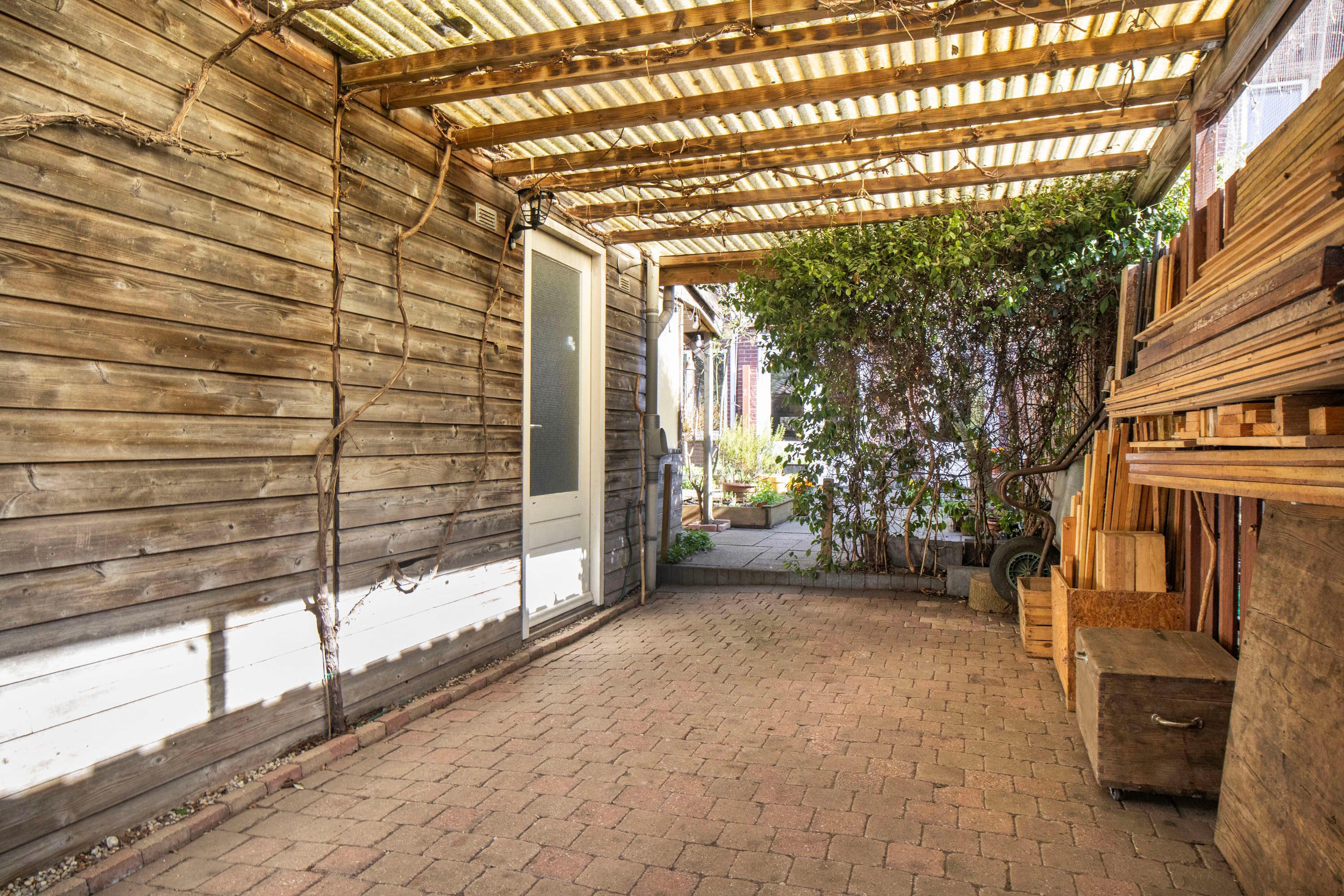 Aan de garage is een overkapping geplaatst waar je beschut buiten kunt zitten. Daarnaast is er nog een tweede overkapping die ideaal is voor bijvoorbeeld het stallen van fietsen of om te klussen.