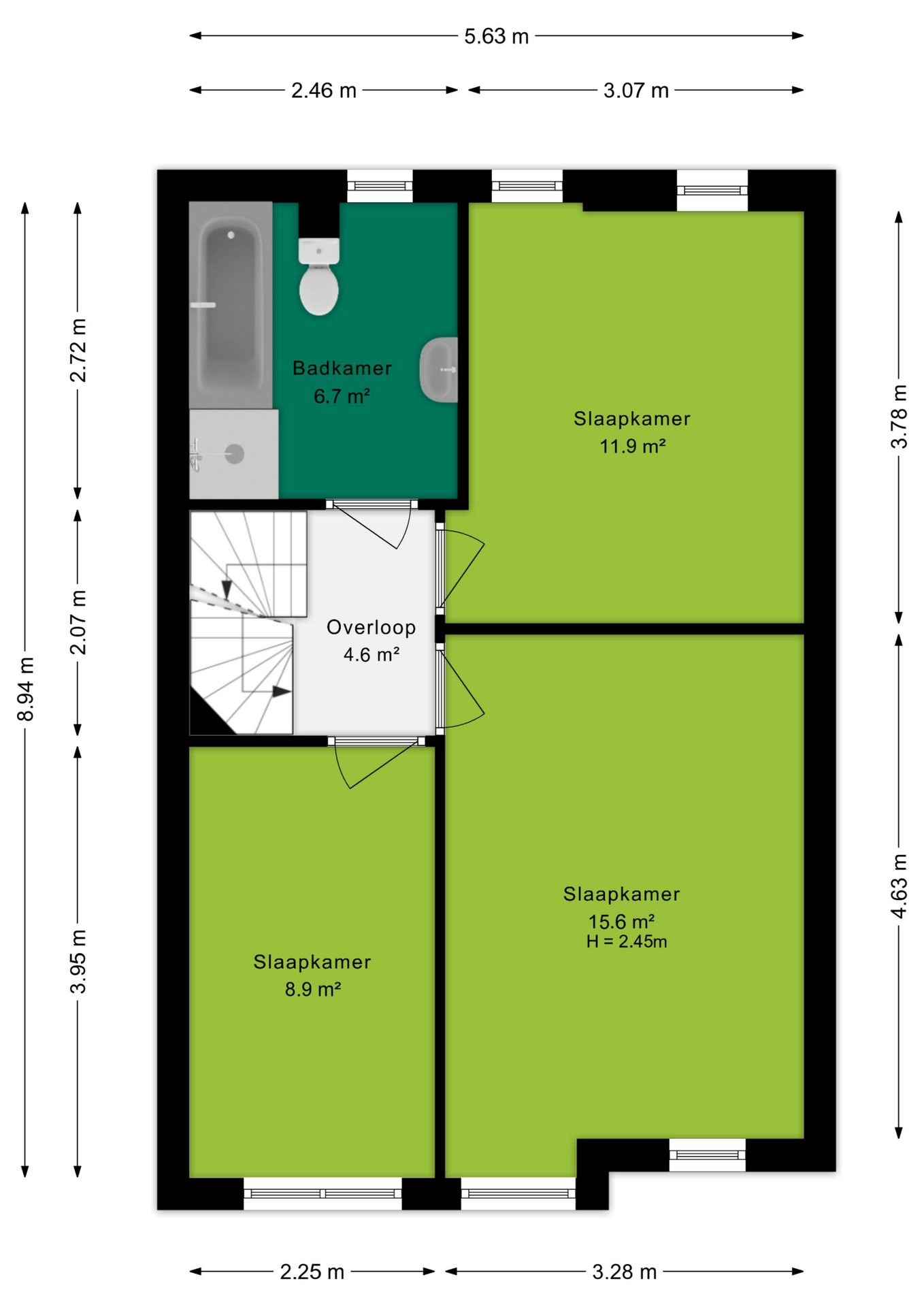 - Dakkapel over de gehele lengte van de woning