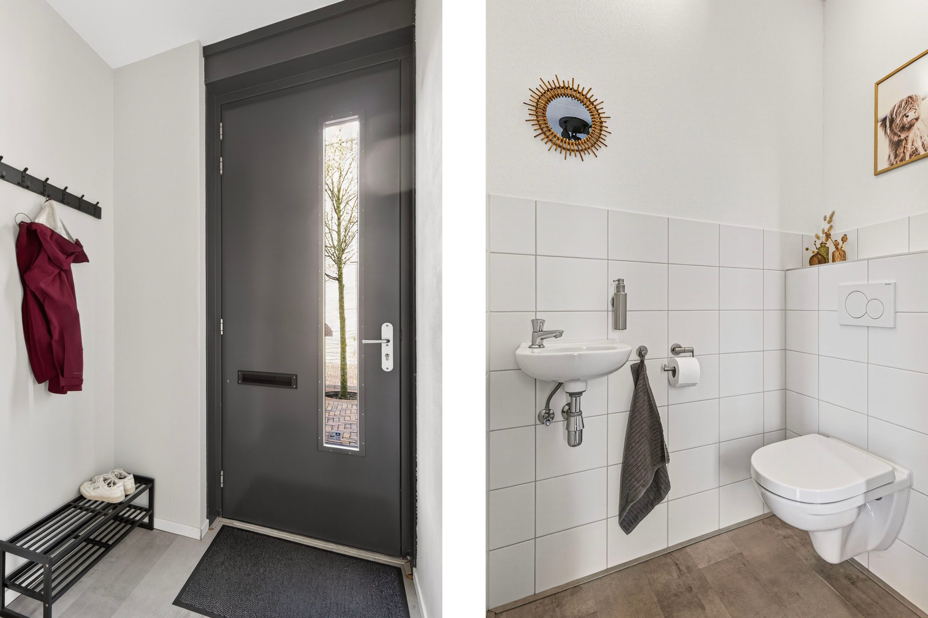 Bij binnenkomst in de hal vind je het toilet en de meterkast. Vanuit hier stap je de leefruimte binnen.