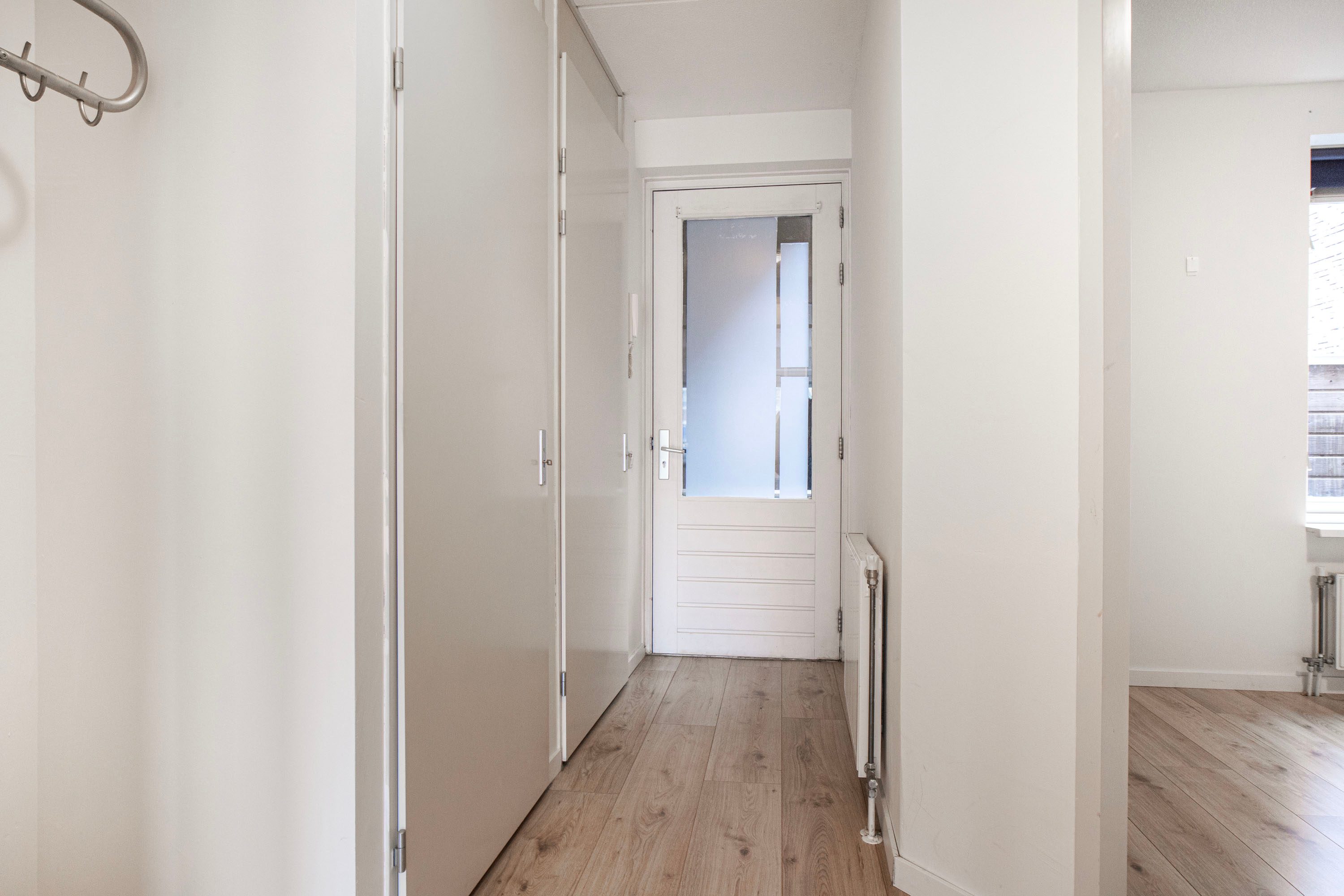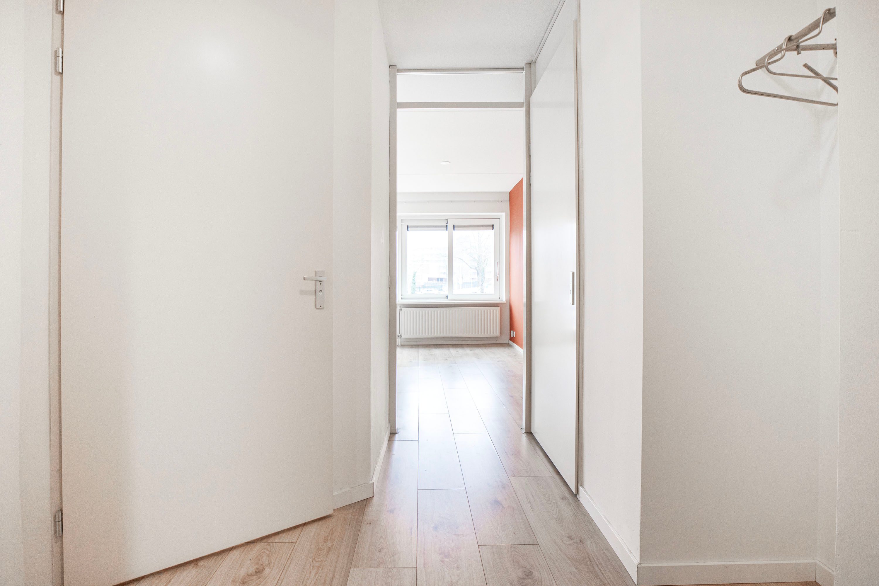 Bij binnenkomst kom je in de hal met meterkast en twee praktische inbouwkasten. Vanuit hier heb je toegang tot de woonkamer, slaapkamer en badkamer. Er is voldoende ruimte voor een kapstok, wat zorgt voor een nette en functionele entree.