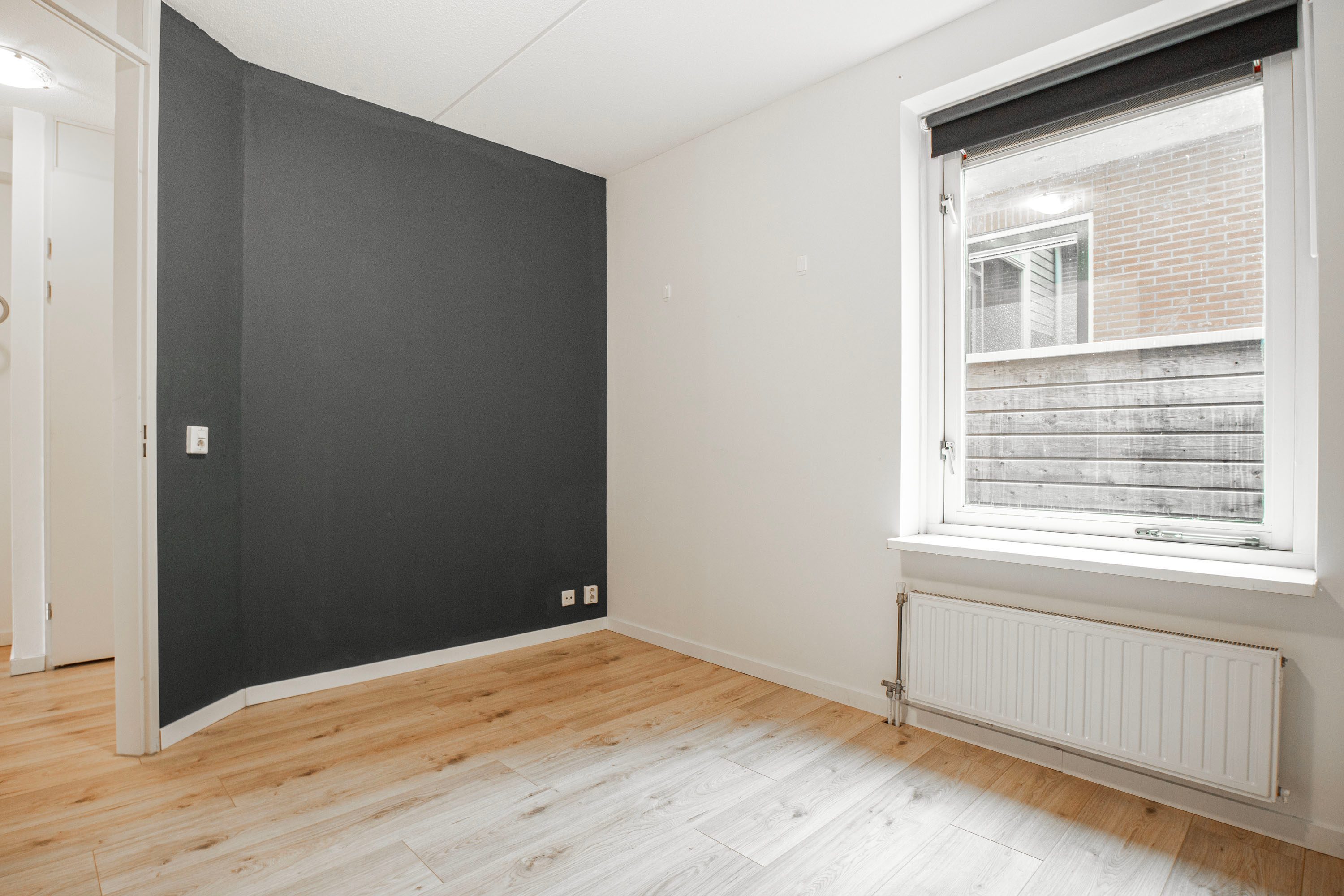 De slaapkamer ligt aan de rustige achterzijde van de woning. Het afgesloten stukje buitenruimte met schutting langs de kamer zorgt voor extra rust en privacy.