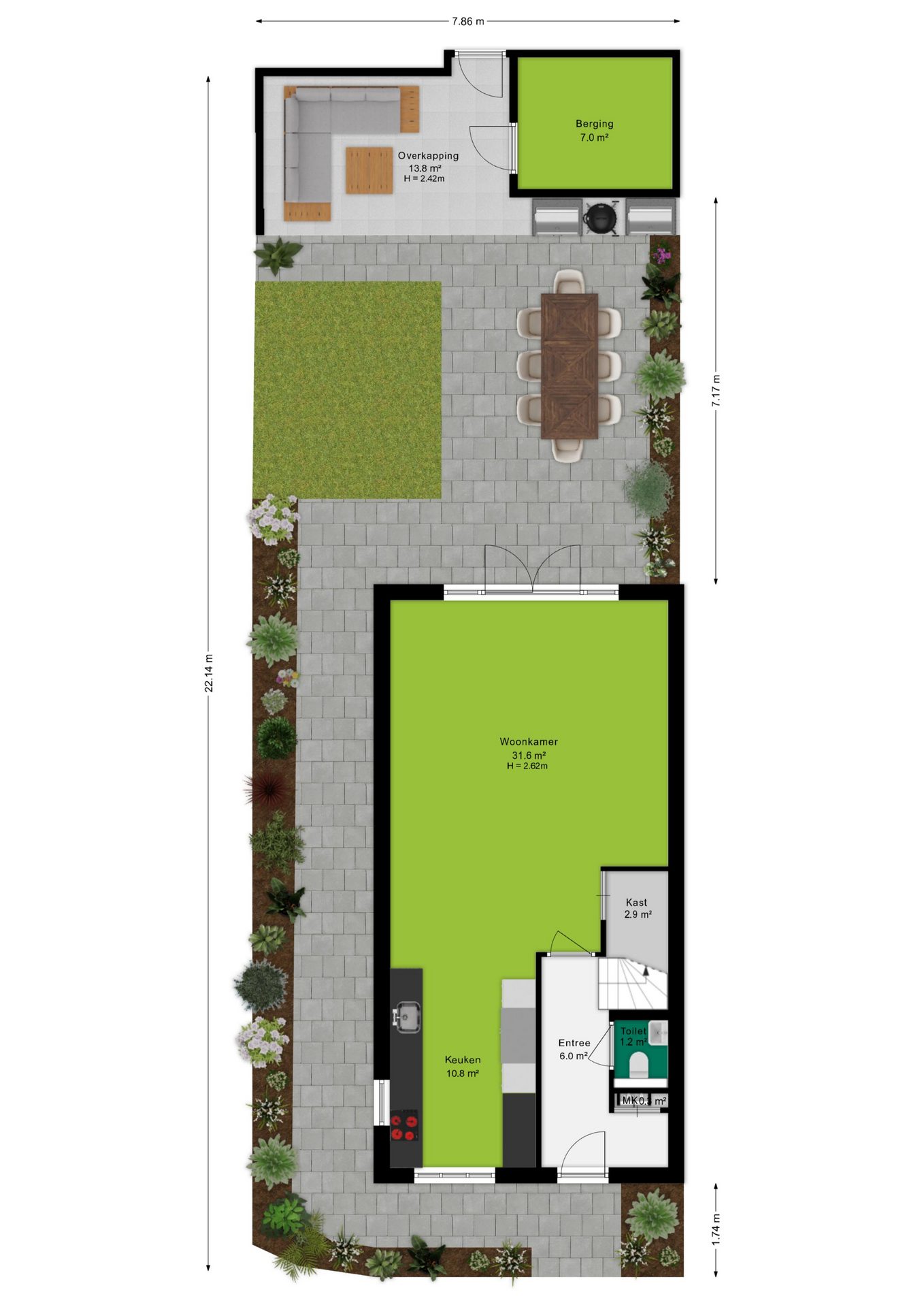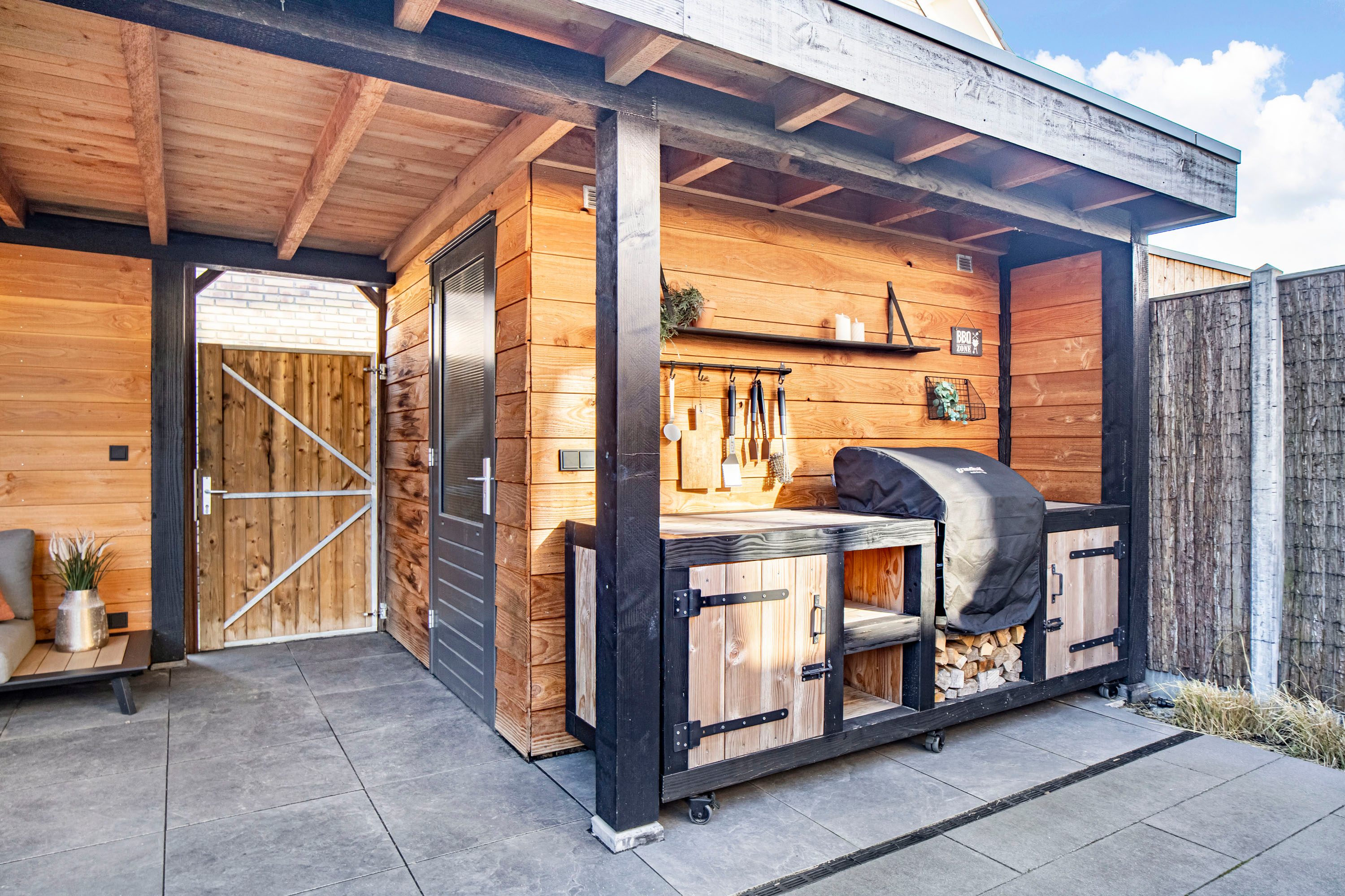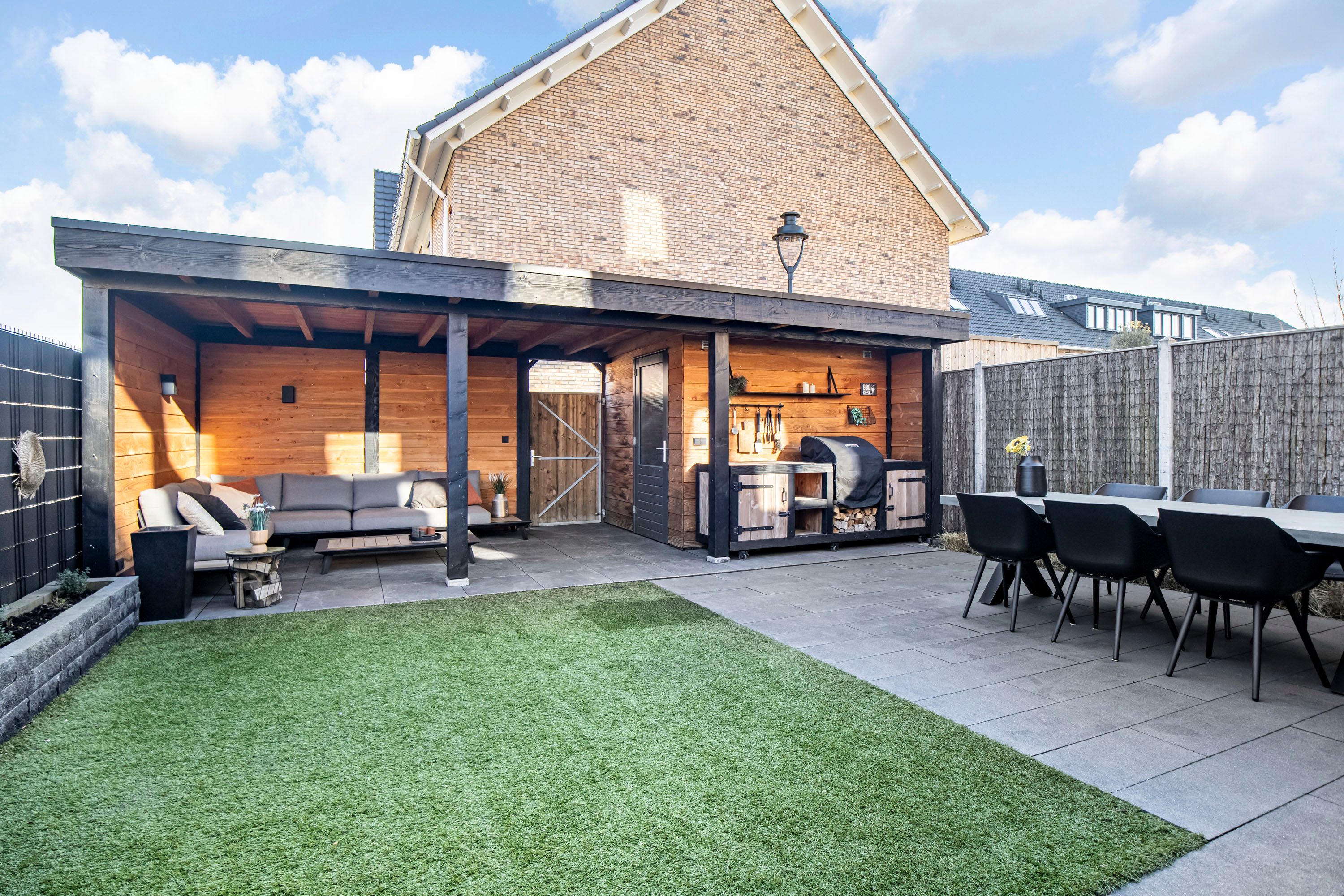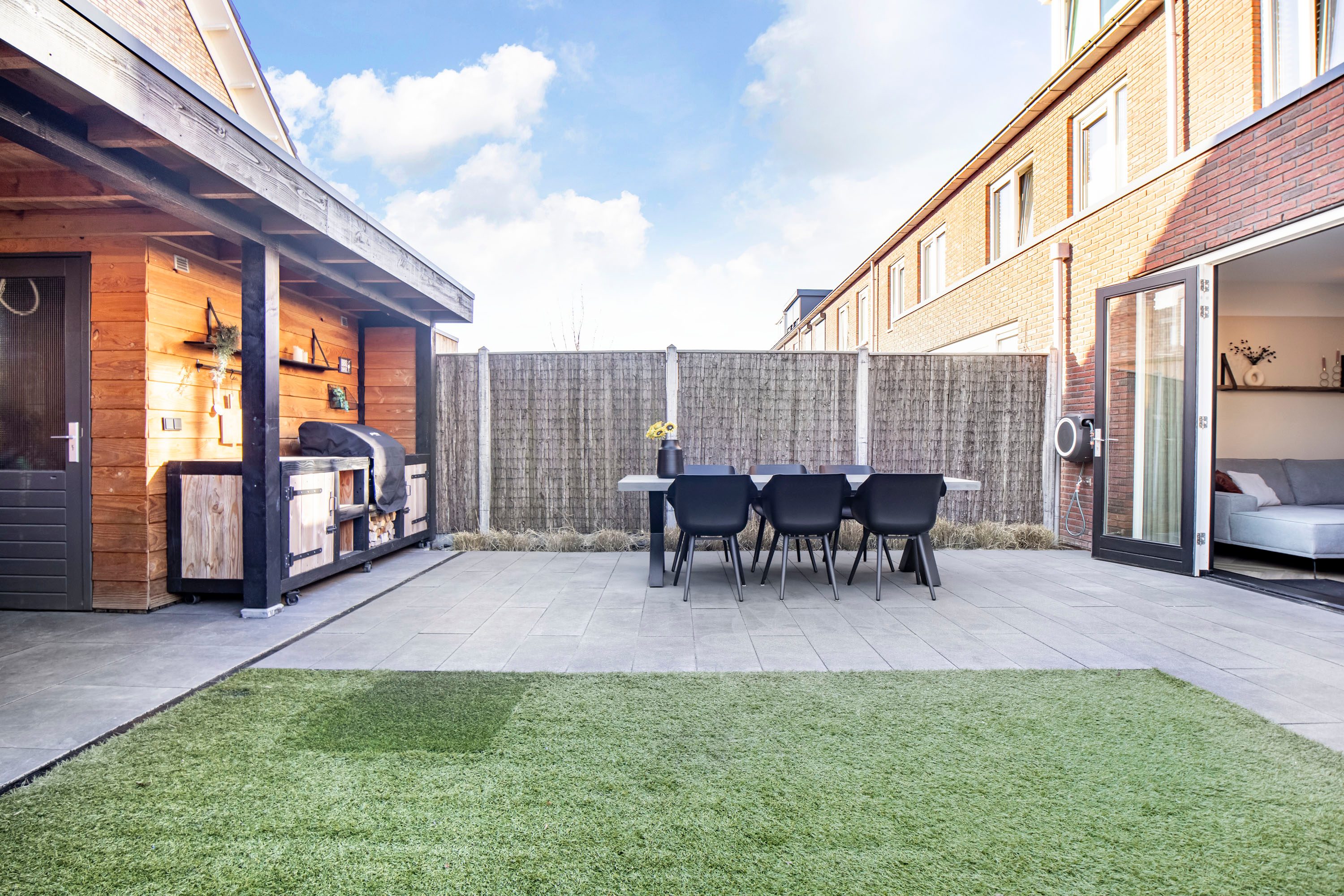 De achtertuin ligt op het zuiden, waardoor je hier vrijwel de hele dag van de zon kunt genieten. Via de openslaande deuren vanuit de woonkamer stap je zo de tuin in. De tuin is ook bereikbaar via de zijkant van de woning en via een achterom. Achterin de tuin bevindt zich een veranda, een fijne plek om beschut buiten te zitten, ook wanneer het weer wat minder is. Daarnaast is er een houten berging, ideaal voor het stallen van fietsen en het opbergen van tuingereedschap.