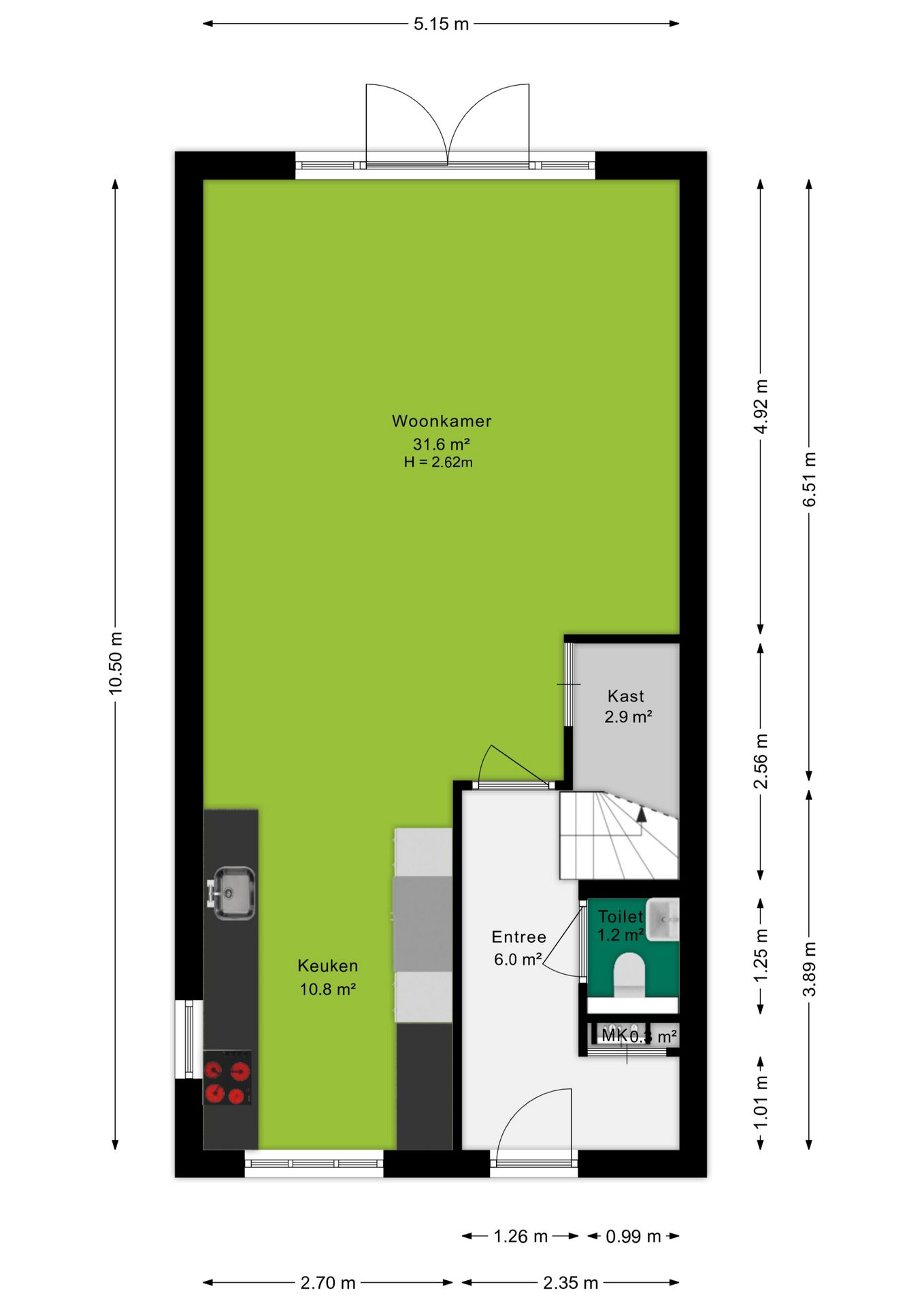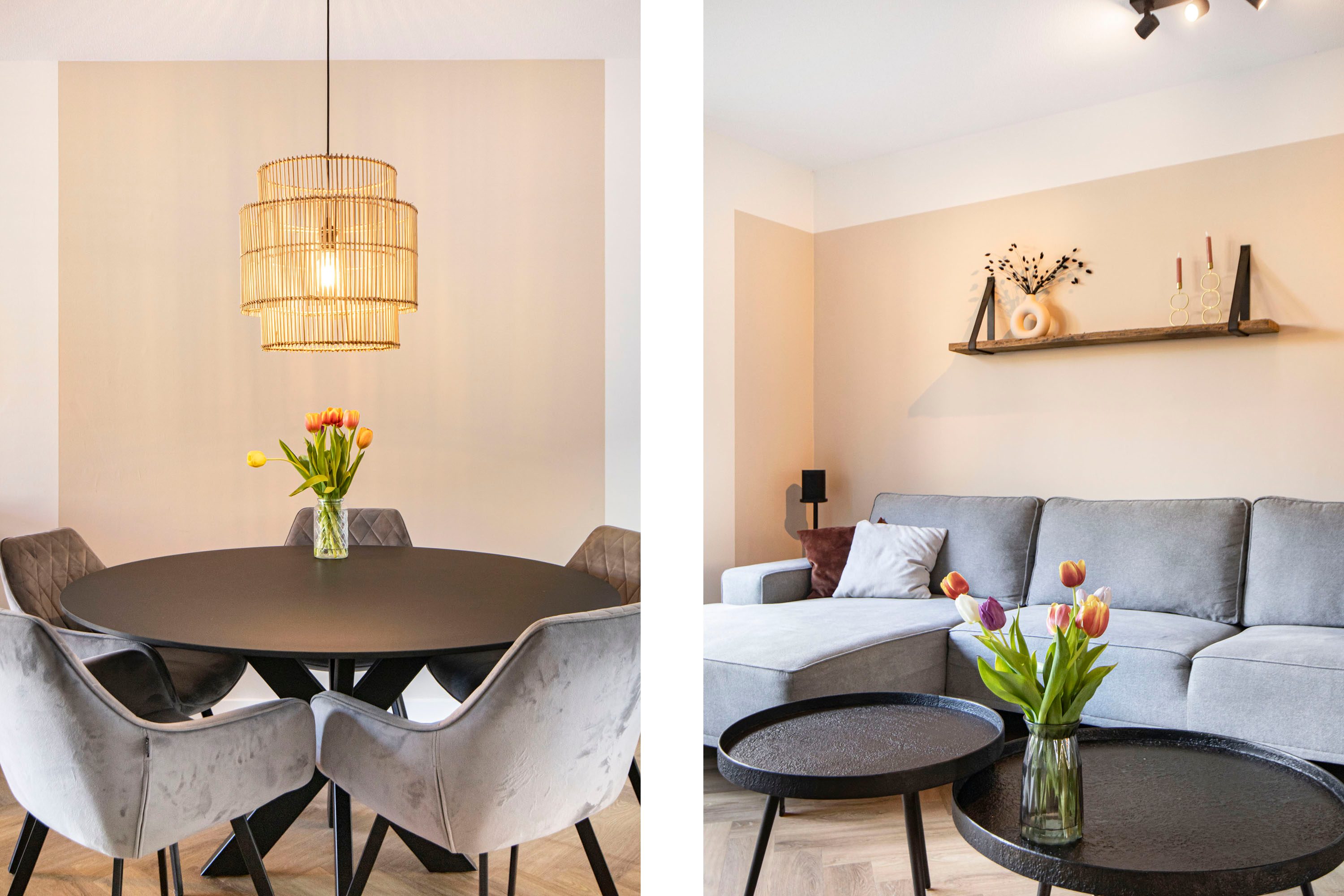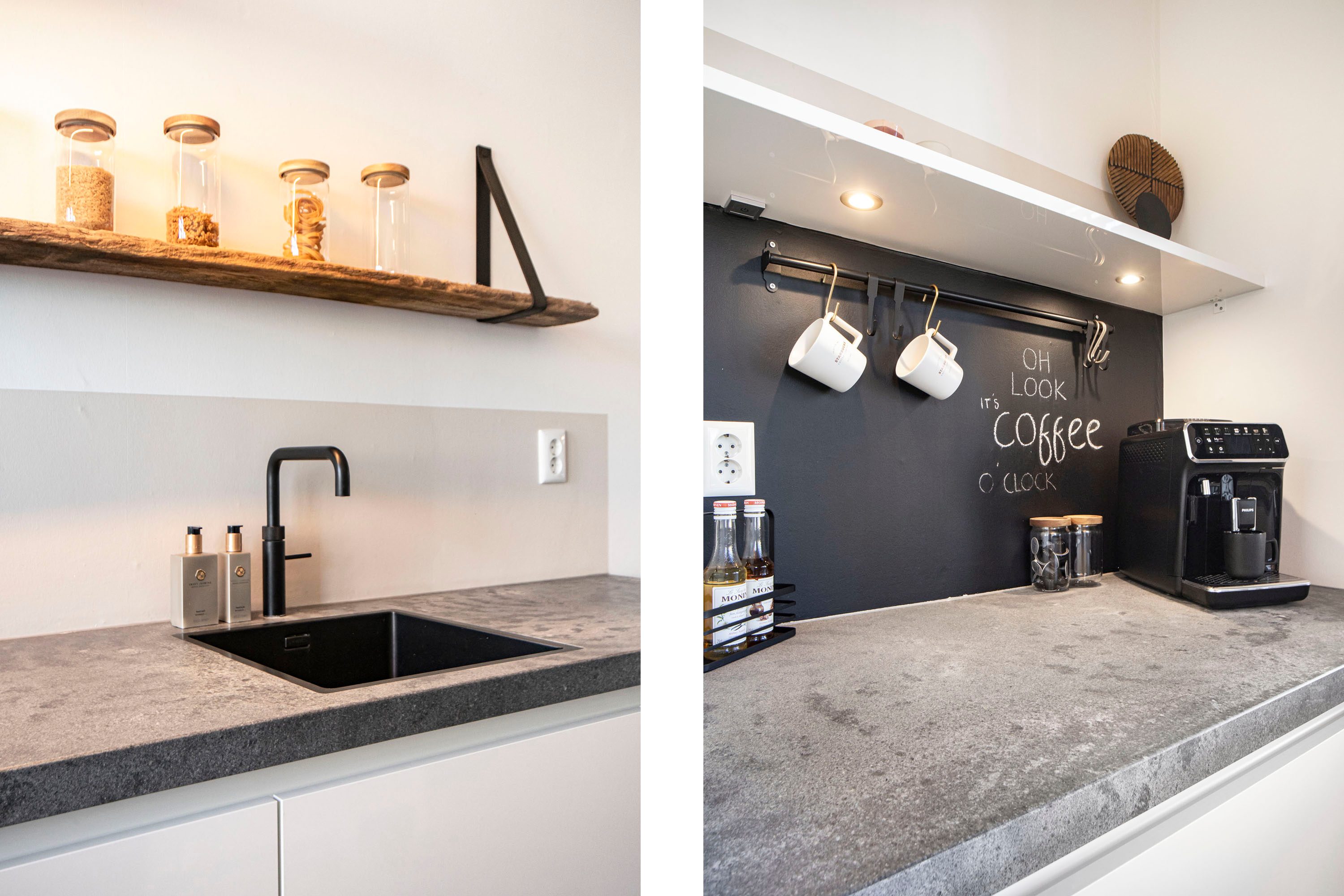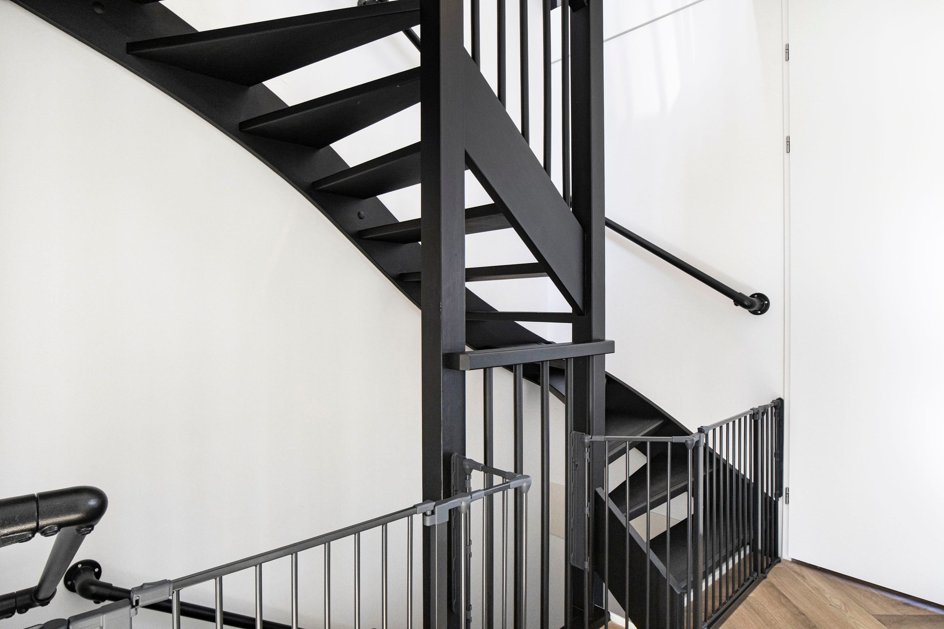 Via de entree kom je binnen in de hal met meterkast, moderne toiletruimte en de trapopgang naar de eerste verdieping. Via een stijlvolle taatsdeur bereik je de leefruimte. De woonkamer bevindt zich aan de achterzijde van de woning en kijkt uit op de tuin. Dankzij de grote ramen en de openslaande deuren voelt deze ruimte licht en ruim aan. Aan de voorzijde van de woning bevindt zich de moderne keuken. Deze is uitgerust met diverse inbouwapparatuur van Bosch, waaronder een inductiekookplaat, magnetron, combi-oven en vaatwasser. Daarnaast is de keuken voorzien van een Quooker. Onder de trap bevindt zich bovendien een praktische trapkast voor extra voorraad of huishoudelijke spullen. De gehele begane grond is voorzien van vloerverwarming, waardoor je hier altijd comfortabel woont.