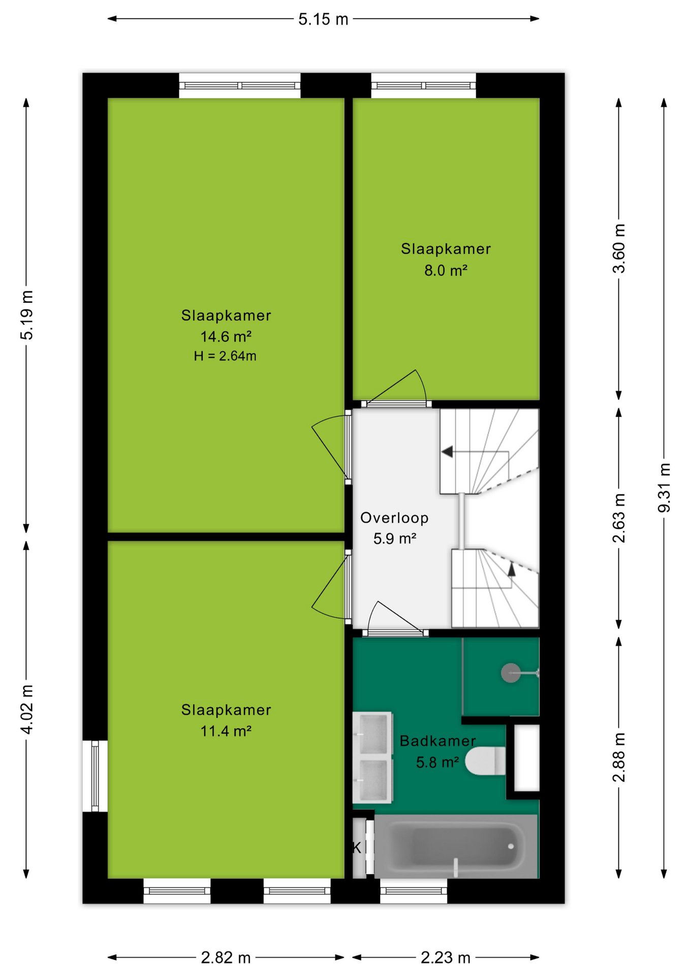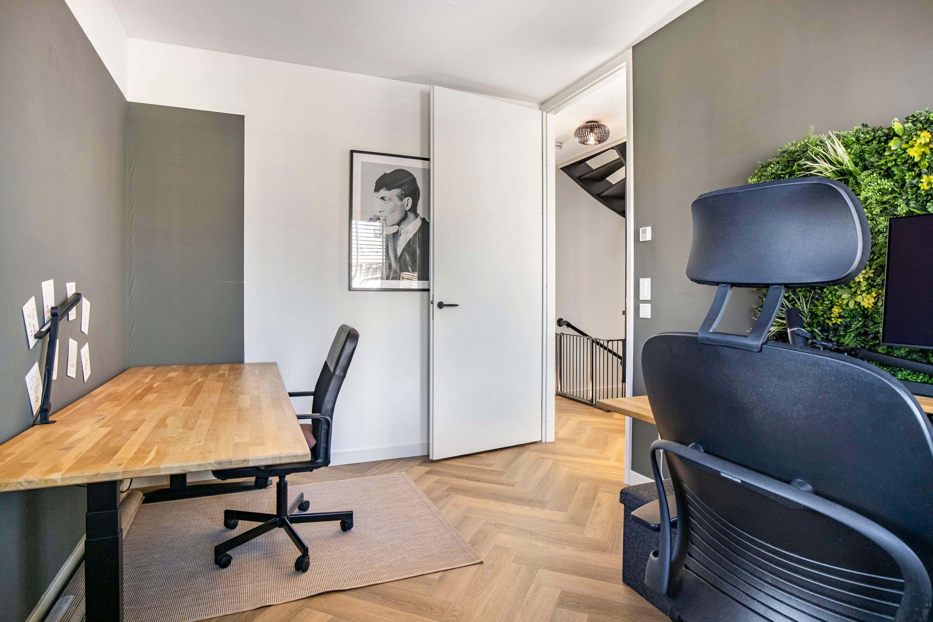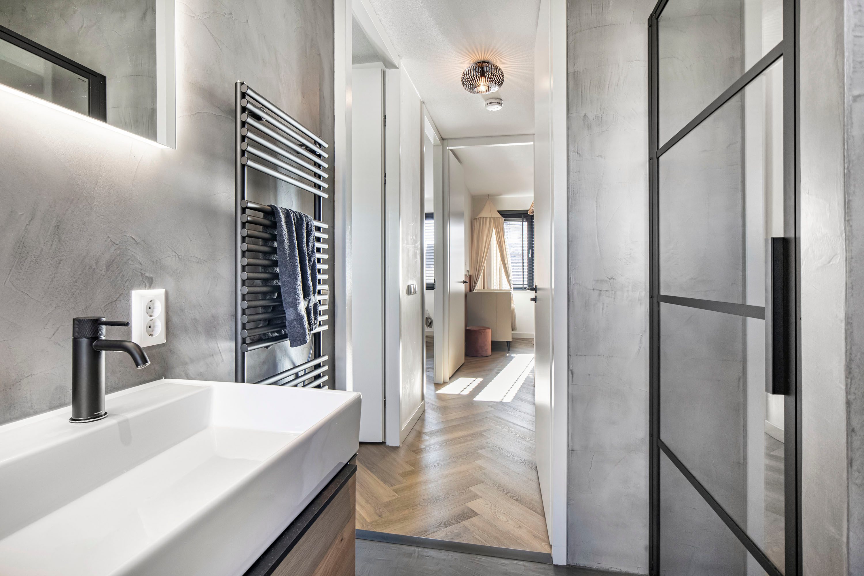 Op de eerste verdieping bevinden zich drie comfortabele slaapkamers van circa 15 m², 11 m² en 8 m². Dankzij de ramen zijn alle kamers prettig licht en voelen ze ruim en aangenaam aan. De kamers zijn praktisch in te delen en lenen zich uitstekend als slaapkamers, maar kunnen natuurlijk ook prima worden ingericht als werk-, hobby- of logeerkamer. Een groot pluspunt is dat de gehele verdieping is voorzien van vloerverwarming, wat zorgt voor extra comfort en een aangenaam binnenklimaat. De moderne badkamer is stijlvol afgewerkt en compleet uitgevoerd met een ligbad, inloopdouche, wastafelmeubel met dubbele kraan, toilet en designradiator. Een fijne plek om de dag ontspannen te beginnen of juist rustig af te sluiten.