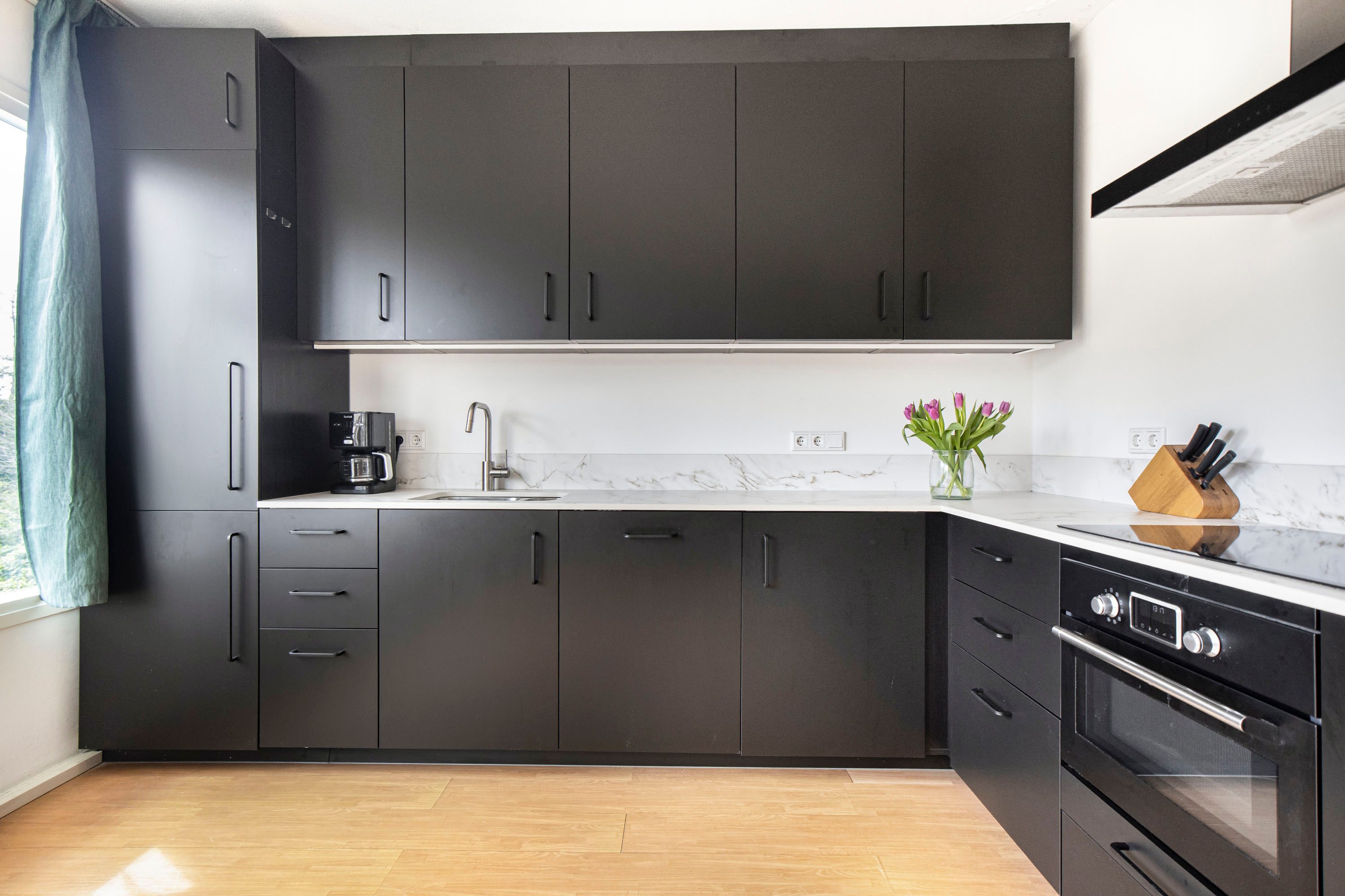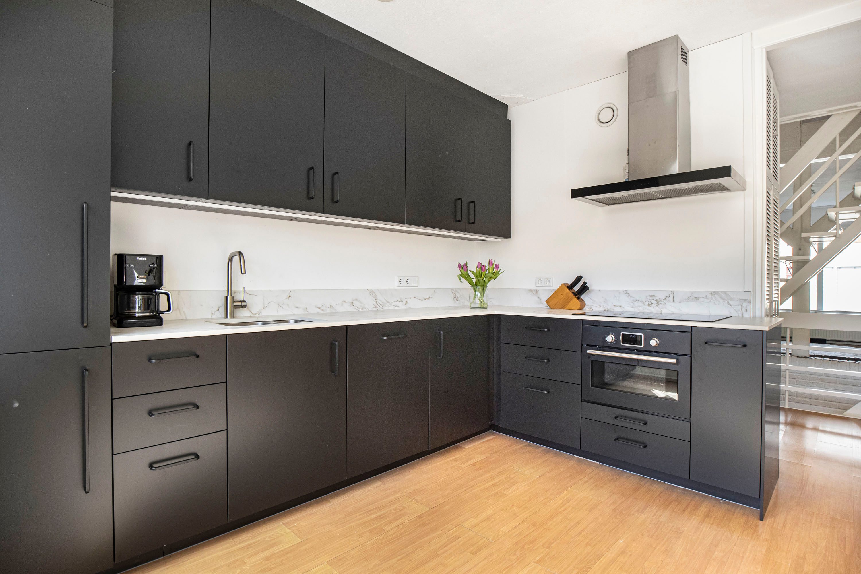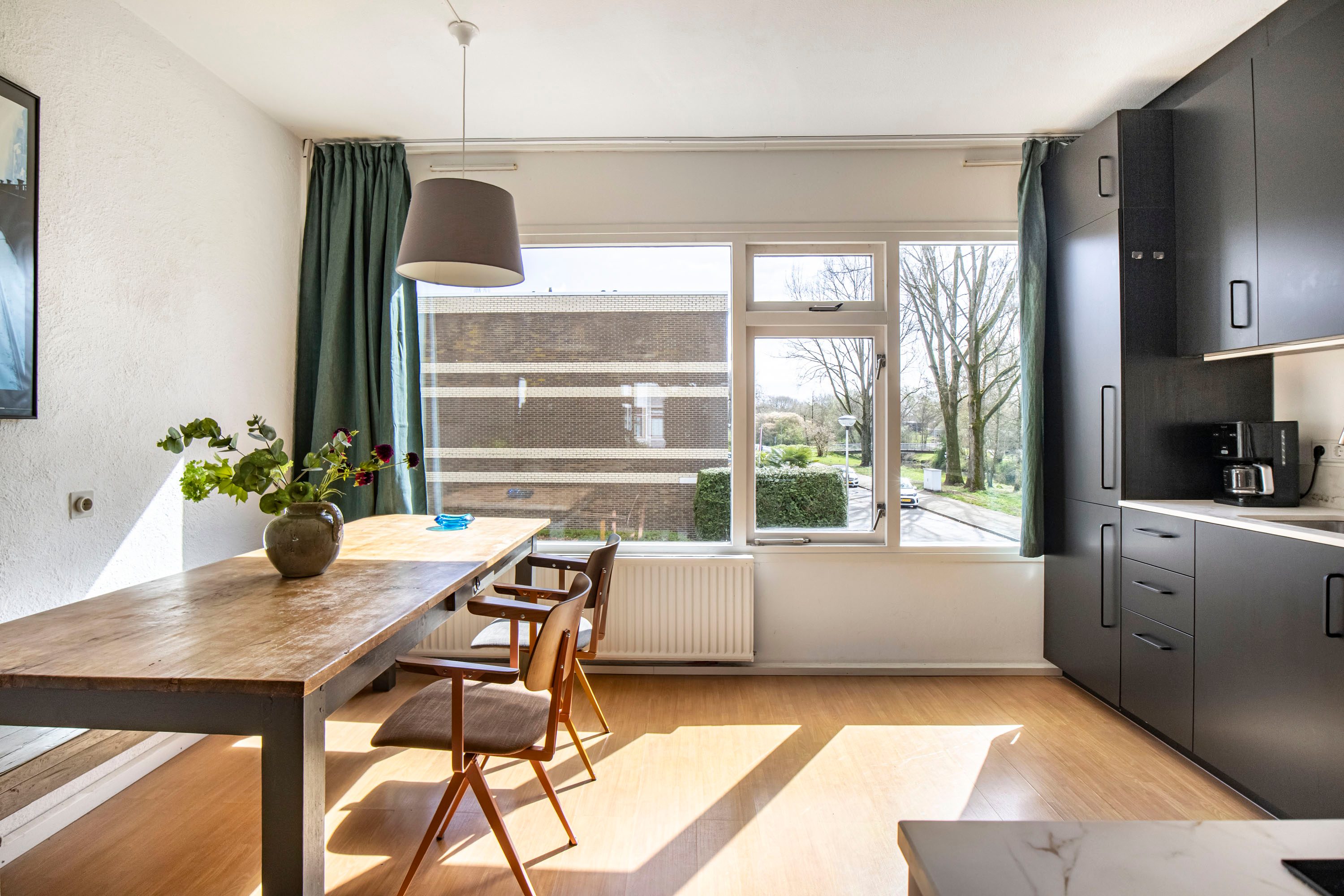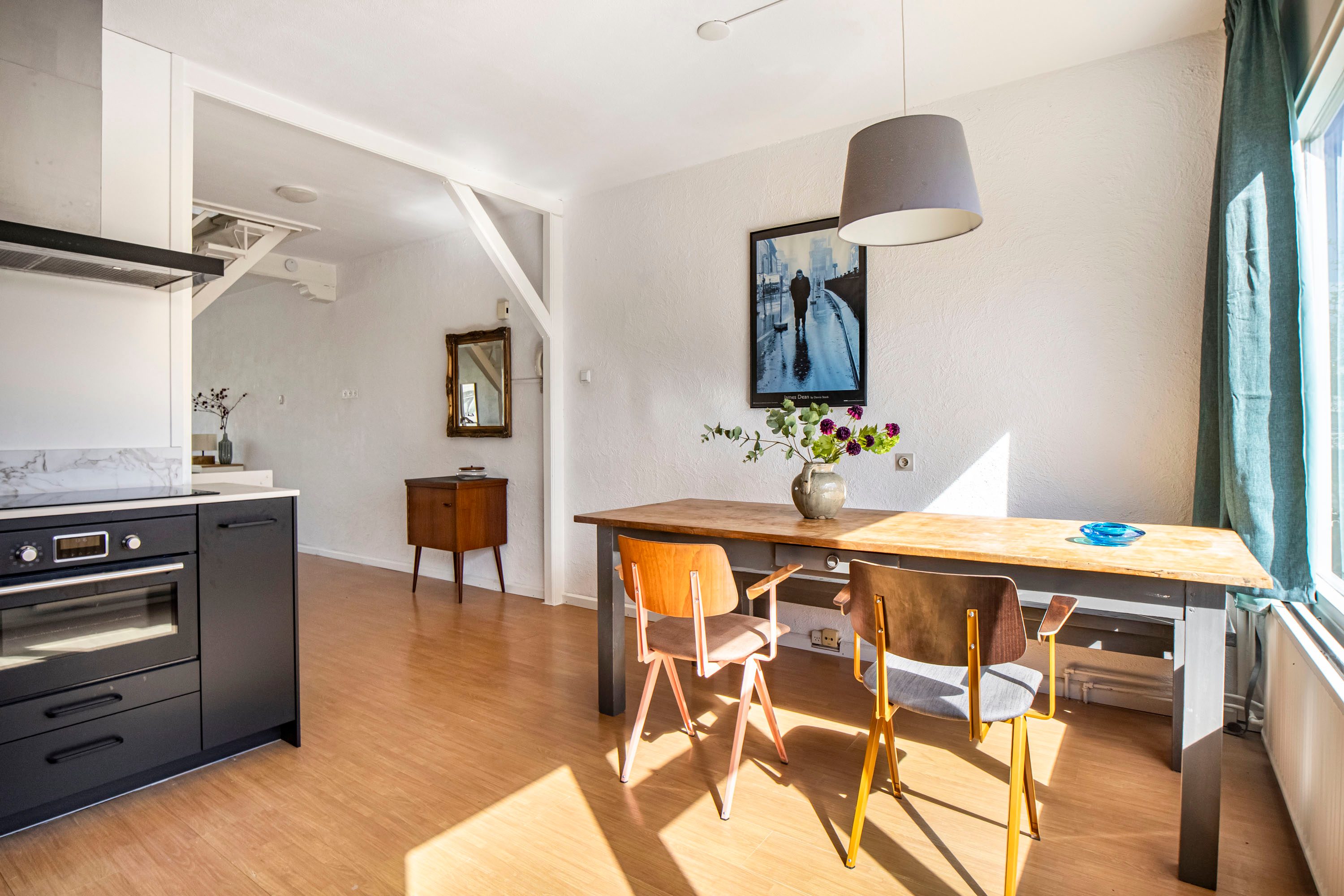 De indeling is prettig en logisch: wonen en koken zijn met elkaar verbonden, maar toch subtiel gescheiden. Aan de voorzijde ligt de vernieuwde keuken (2024), strak en compleet uitgevoerd met inbouwapparatuur. Hier kook je niet alleen, hier leef je. Of je nu snel ontbijt of uitgebreid dineert met vrienden.