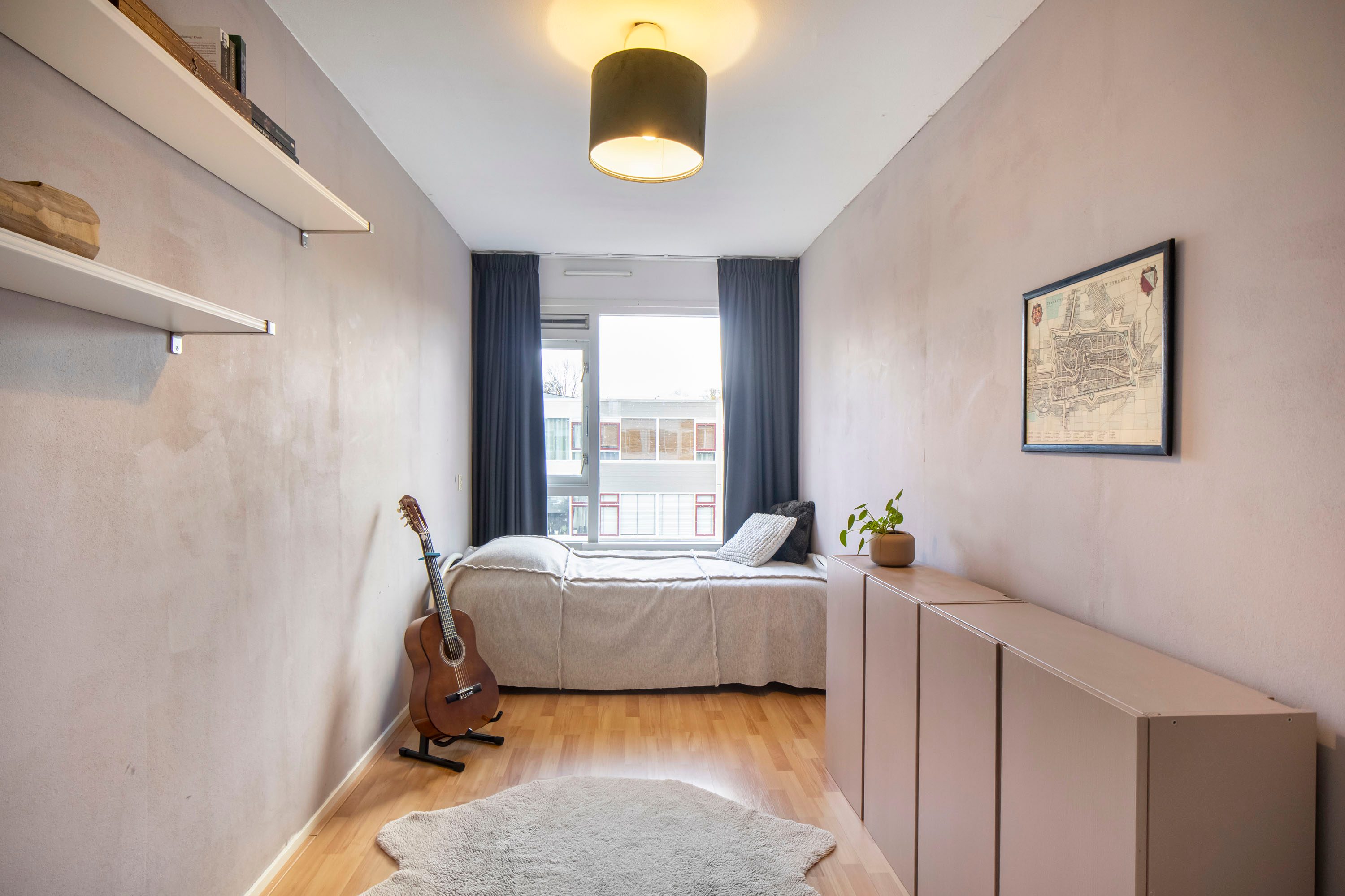 Op de tweede verdieping vind je drie slaapkamers, stuk voor stuk goed in te delen. De kamer aan de voorzijde strekt zich uit over de volle breedte van de woning en voelt daardoor extra ruim, ideaal als hoofdslaapkamer.