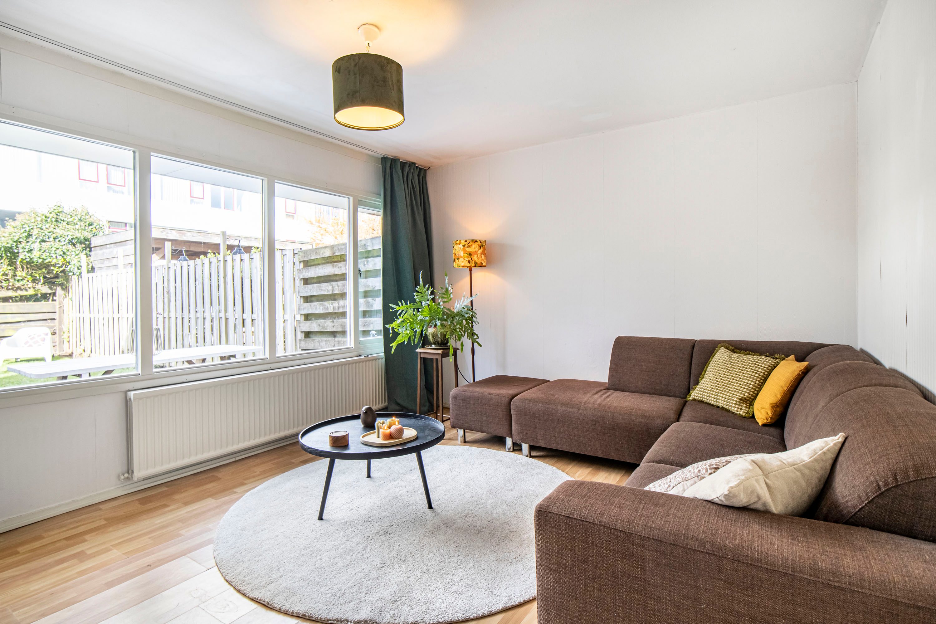 Hier speelt het dagelijkse leven zich af. De woonkamer vormt een fijne, lichte leefruimte met uitzicht op de achterzijde, een plek waar je tot rust komt of juist samen bent.