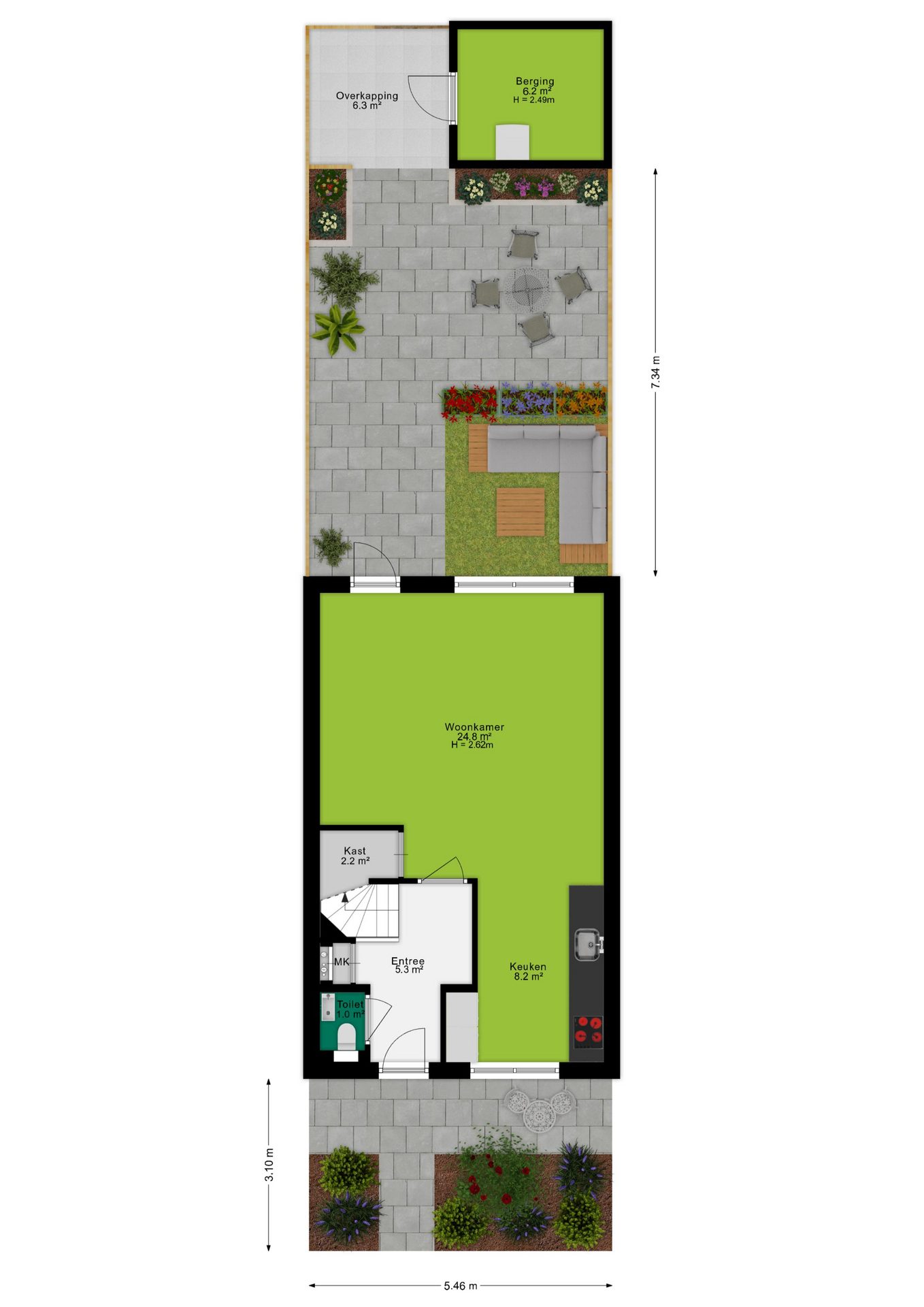 + vloerverwarming begane grond;
