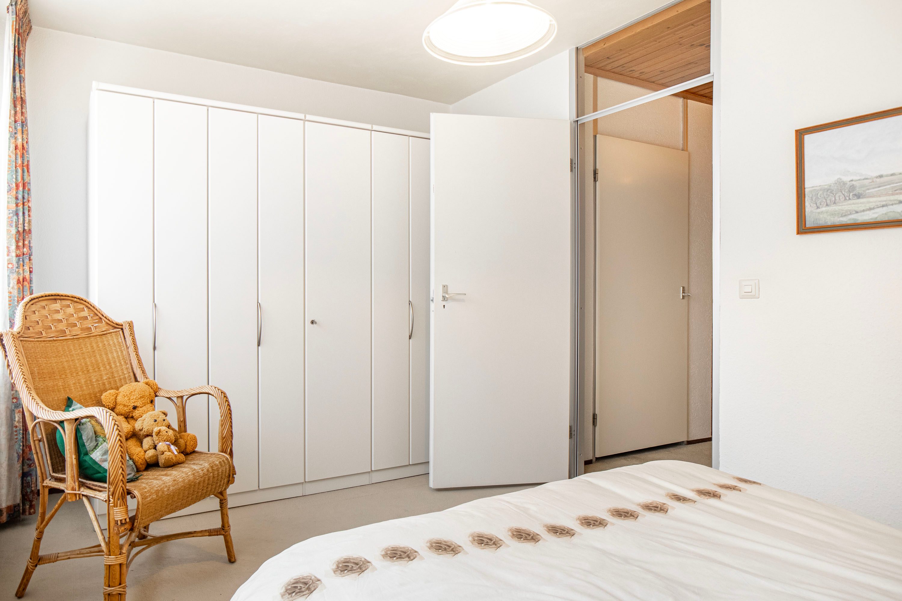 Daarnaast zijn er twee vaste kasten op de overloop. Met in een kast de opstelling van de C.V.-ketel, en een ruime tweede voor bergruimte. Boven het trapgat is nog extra bergruimte gecreëerd.